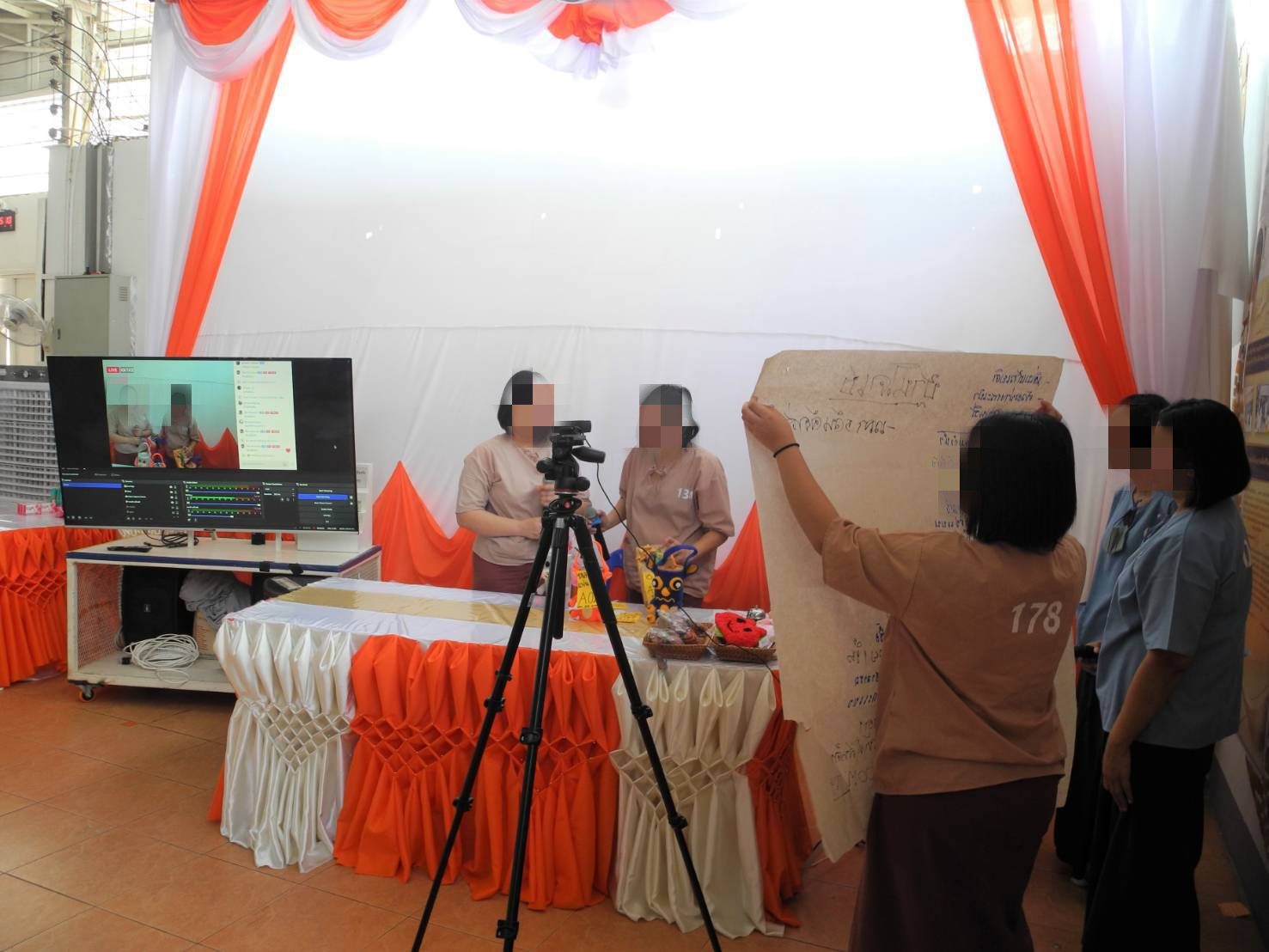 On March 14, 2568, a workshop for live-stream presentations was conducted, culminating in a Live Commerce competition divided into five groups, each presenting different products or services: Group 1 sold knitted bags for Yeti cups, Group 2 sold balm, Group 3 offered fortune-telling, Group 4 sold mystical goods, and Group 5 sold camphor. The presentations were engaging, and the techniques learned were effectively applied. The winning group was Group 5, which successfully performed all nine live-streaming techniques, impressing both viewers and judges. They received the first-place award and will represent Khon Kaen Central Prison in creating live-streaming clips to compete with other prisons involved in the digital skills development program.