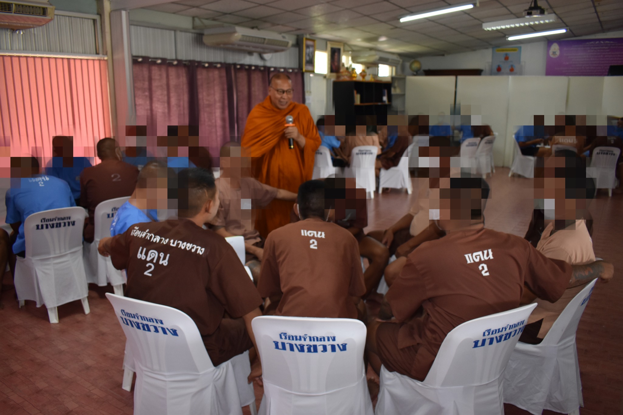 On April 29, 2025, the Kumlangjai Project organized the Paniya Therapy Project to enhance the quality of life of inmates at Bangkwang Central Prison. The event featured monk Phra Prommasak Yawonsisut (Anilaman Thammasakio) as the instructor. A total of 47 participants attended the training. The activity included a lecture on Paniya Therapy, covering topics such as "The Five Aggregates and Humanity," letting go, self-awareness, and overcoming oneself.