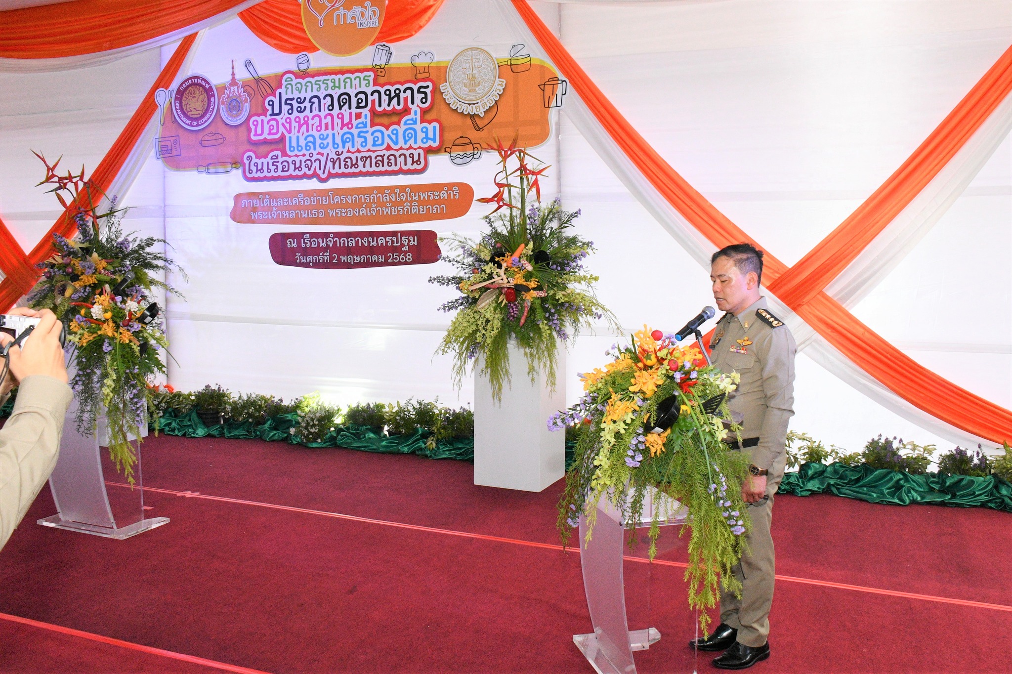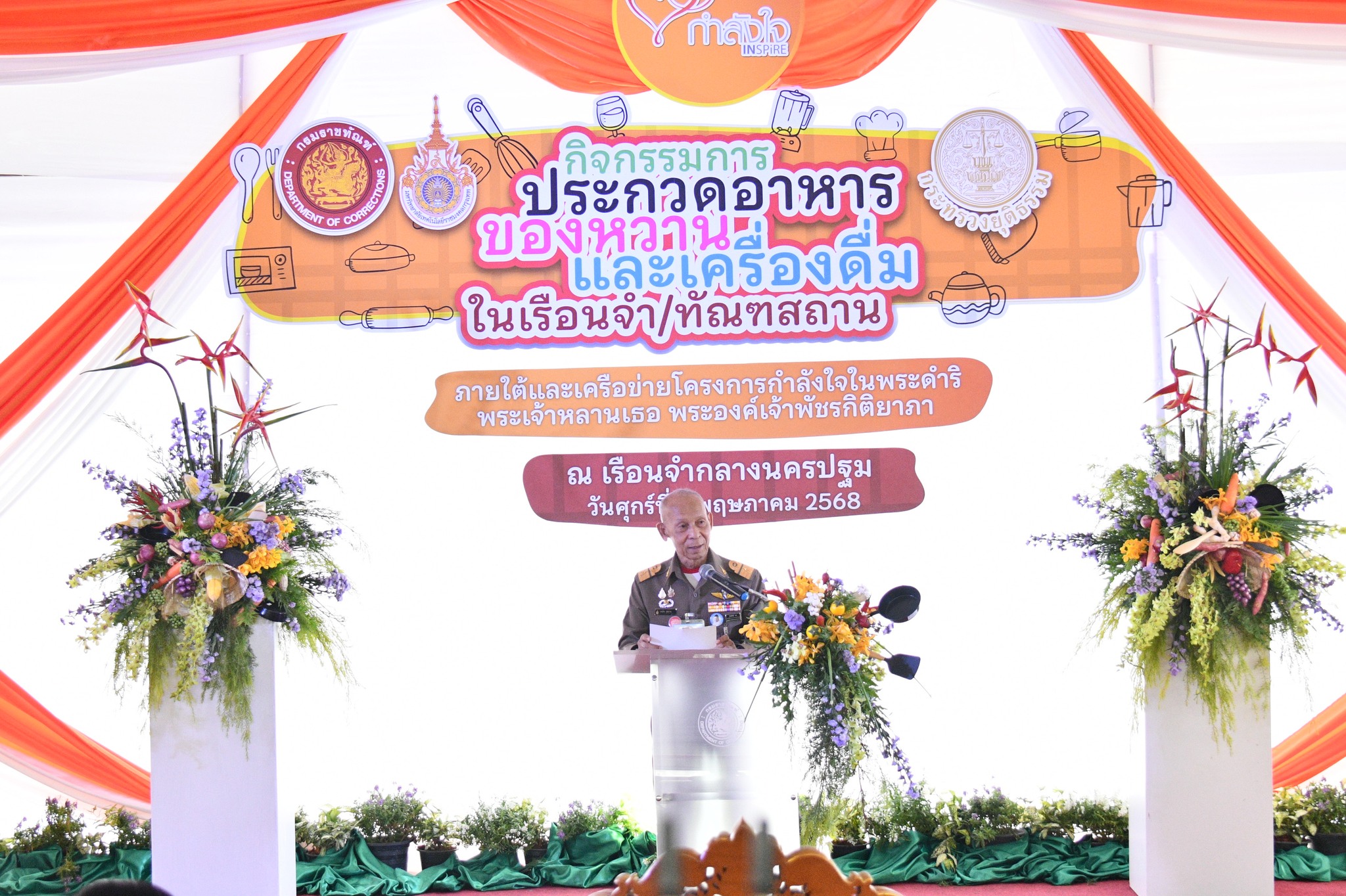 On Friday, May 2, 2025, Air Chief Marshal Somkid Sukbang, the royal household's official in charge of Her Royal Highness Princess Pachara Kitiyapa's royal duties, presided over the opening ceremony of the Food, Dessert, and Beverage Competition at the Central Nakhon Pathom Prison, under the auspices of the "Kang Jai" program initiated by Her Royal Highness Princess Pachara Kitiyapa. Notable attendees included Ms. Pongsawat Neelayothin, Permanent Secretary of the Ministry of Justice; Ms. Jirapa Sinthunawa, Deputy Permanent Secretary of the Ministry of Justice and Vice Chairperson of the Kang Jai Fund Committee; Mr. Sakarn Phettharnarin, Director-General of the Department of Corrections; Mr. Kwanchai Santipharaphob, Commander of Central Nakhon Pathom Prison; and Assoc. Prof. Dr. Thanawat Laiyim, Dean of the Faculty of Home Economics Technology at Rajamangala University of Technology Krungthep.