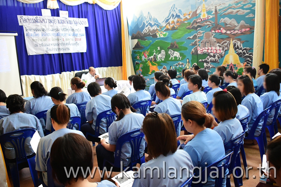 โครงการกำลังใจฯ ด้วยการสนับสนุนจากสำนักงานกองทุนสนับสนุนการสร้างเสริมสุขภาพ (สสส.) ภายใต้โครงการพัฒนาสุขภาวะและคุณภาพชีวิตผู้ต้องขังหญิงด้วยกิจกรรมทางกายและใจในชีวิตประจำวัน จัดกิจกรรมให้ความรู้ยาเสพติดแก่ผู้ต้องขังหญิงเรือนจำกลางขอนแก่น จังหวัดขอนแก่น จำนวน 50 ราย โดยมีนายอินทราวุธ สมมาตร หัวหน้าศูนย์บริการร่วมกระทรวงยุติธรรม เป็นวิทยากรการอบรม ซึ่งเนื้อหาการอบรม อาทิ ประเภทของยาเสพติด ความหมาย โทษ และกฎหมายยาเสพติด