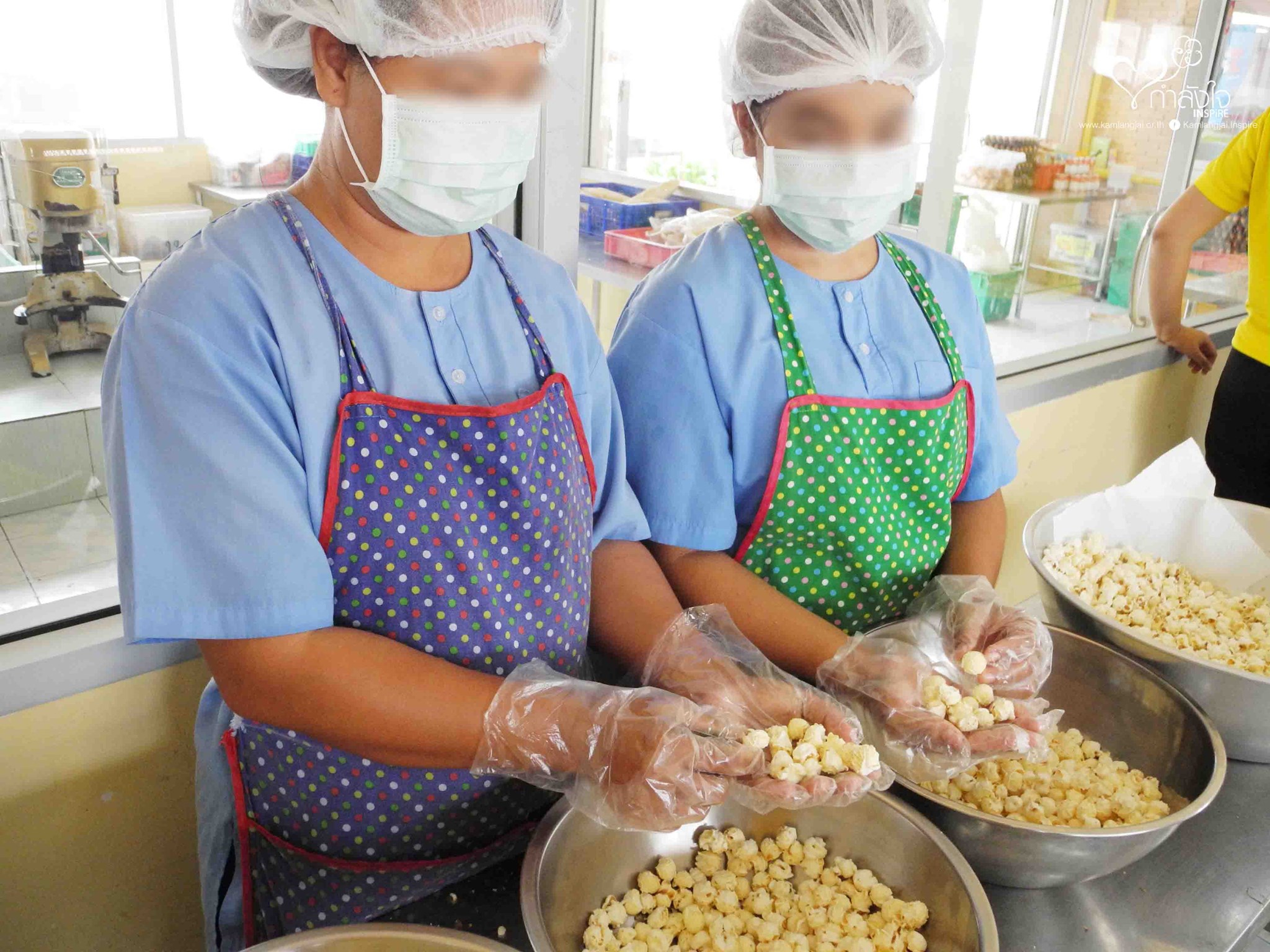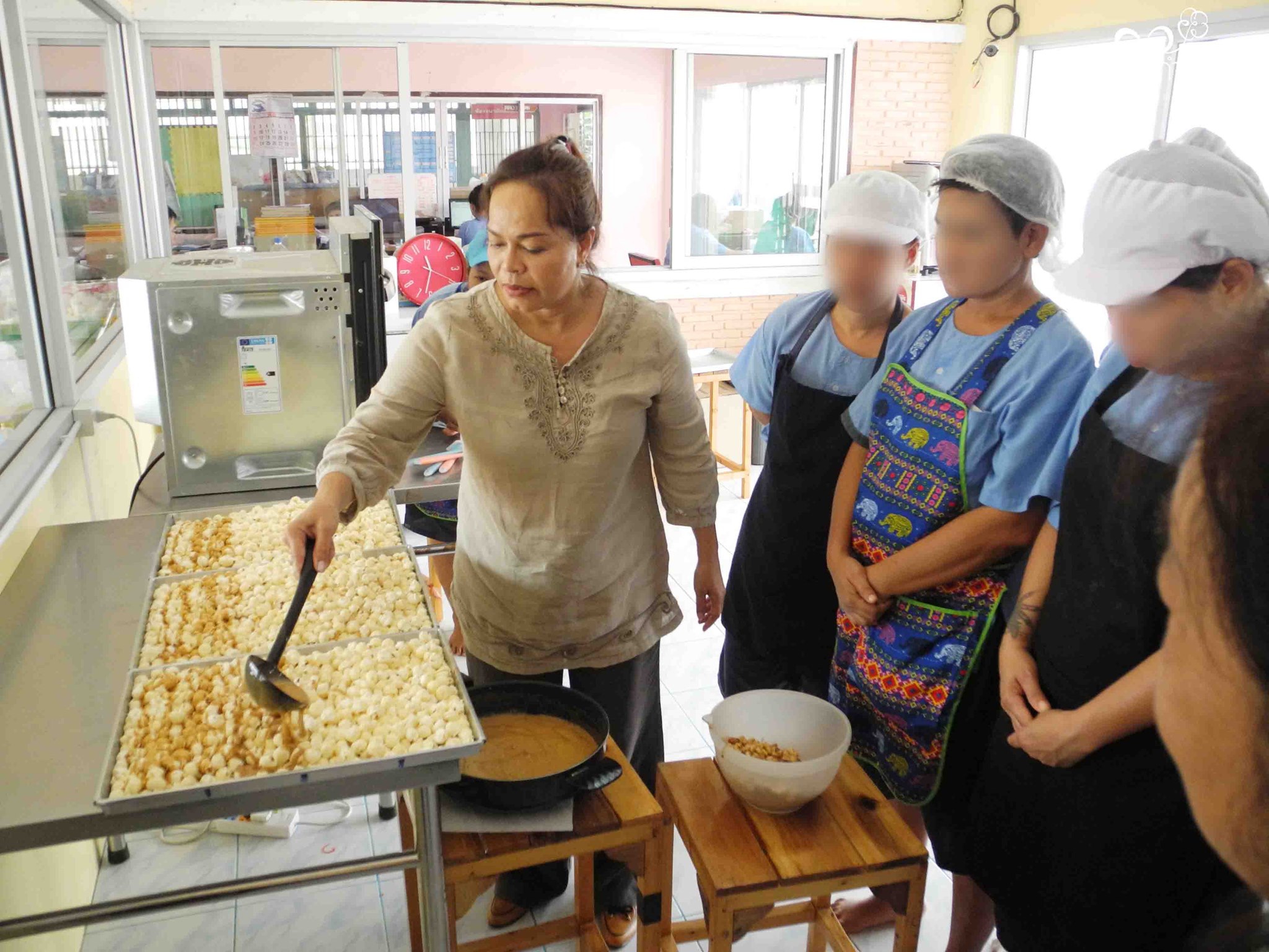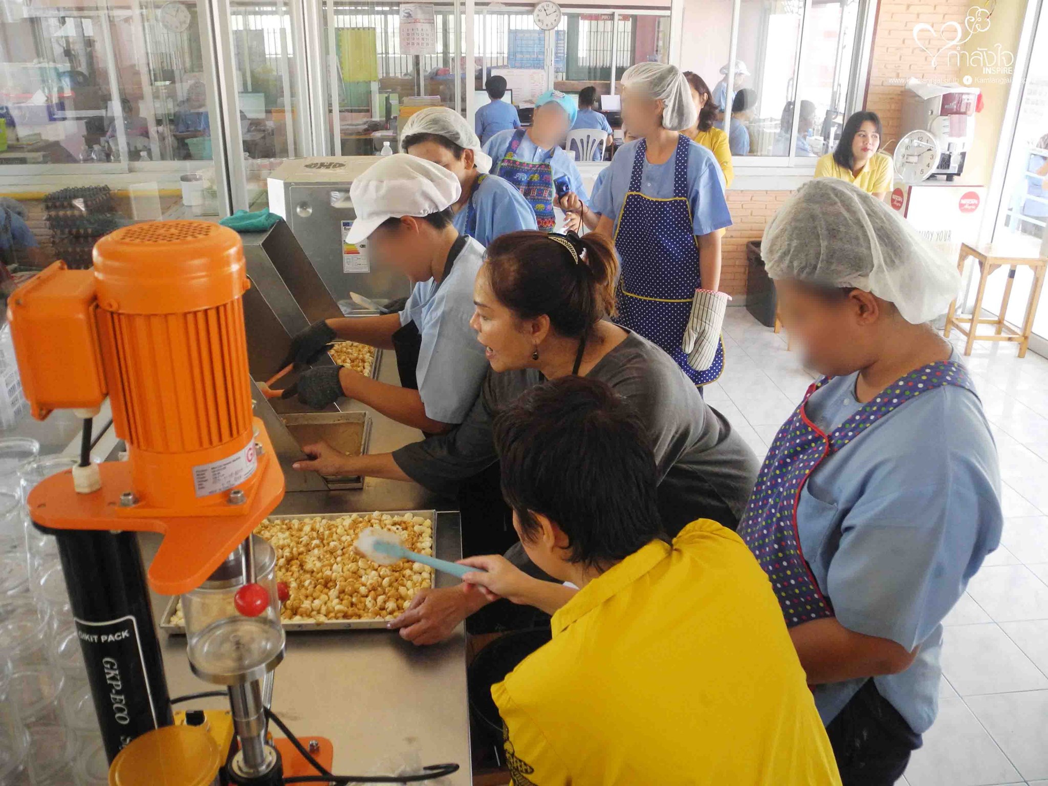 เมื่อวันที่ 19-20 มิถุนายน 2562 โครงการกำลังใจในพระดำริฯ โดยกองพัฒนานวัตกรรมการยุติธรรม สำนักงานปลัดกระทรวงยุติธรรม ได้ดำเนินการจัดโครงการฝึกอบรมวิชาชีพการทำข้าวโพดอบกรอบ ณ เรือนจำกลางสมุทรปราการ จังหวัดสมุทรปราการ โดยมี นางสาวศิริวรรณ โสภารัตน์ และนางสาวกัญจณ์วราห์ สุวรรณสาธิตเป็นวิทยากร ซึ่งมีผู้เข้าร่วมโครงการฝึกอบรมวิชาชีพฯ เป็นผู้ต้องขังหญิงจำนวน 20 คน 2562 วิทยากรได้สอนการทำข้าวโพดอบกรอบแบบโฮมเมด โดยเริ่มจากการแนะนำอุปกรณ์และส่วนผสมต่างๆจากนั้นสอนเทคนิคการคั่วเมล็ดข้าวโพดโดยใช้หม้อและเตาแก๊ส ซึ่งหาได้ง่ายในครัวเรือน สอนการชั่งส่วนผสม และการทำคาราเมล การอบเมล็ดอัลมอนด์ มะม่วงหิมพานต์ และแม็คคาเดเมีย การเคลือบคาราเมล เทคนิคในการอบการจับเวลา และการสลับถาดระหว่างอบ รวมถึงเทคนิคการบรรจุป๊อบคอร์นในบรรจุภัณฑ์ทั้งแบบกระปุกและแบบถุงฟอยล์ซิปล็อค ผู้ต้องขังได้แบ่งหน้าที่ของแต่ละคนตามความถนัด จนถึงขั้นตอนสุดท้ายคือการแพ็คสินค้าให้ได้มาตราฐาน