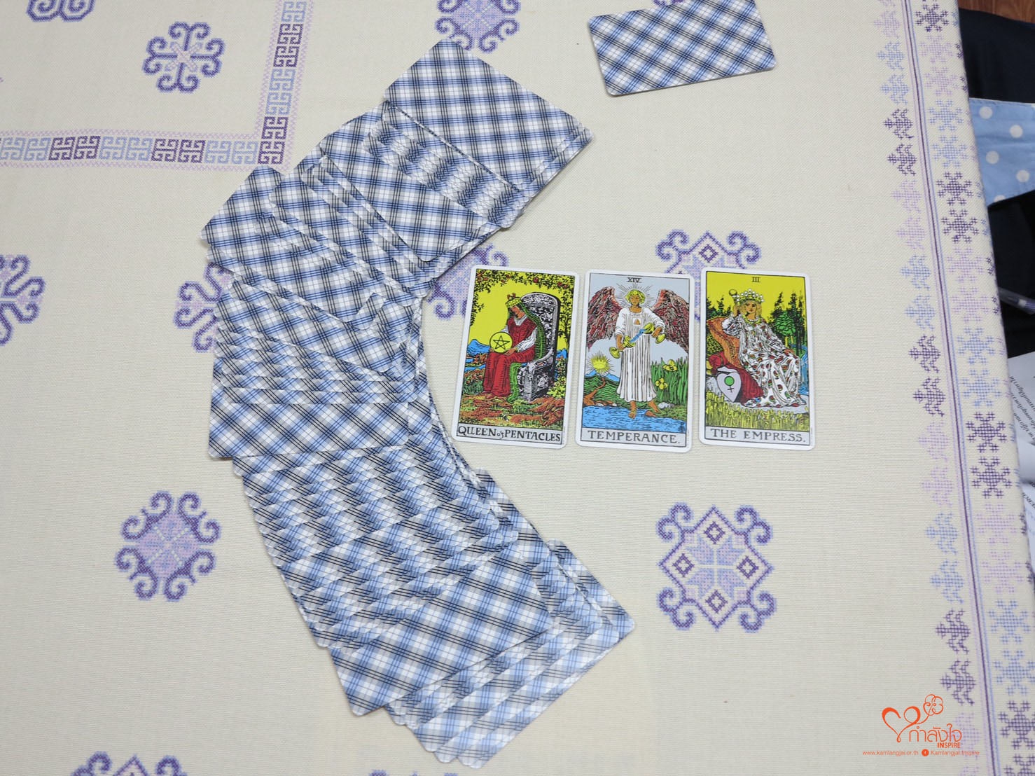 วันที่ 14 ธันวาคม 2563 วิทยากรทบทวนความรู้พื้นฐานเกี่ยวกับความหมายของไพ่ และอธิบายเพิ่มเติม เรื่องธาตุ ดิน น้ำ ไฟ ด้วยการจิตนาการ จากรูปภาพ ที่ปรากฏตามหน้าไพ่ ทั้งชุดใหญ่และชุดสำรองในช่วงบ่าย วิทยากร ให้ผู้เข้าฝึกอบรม ทบทวนการอ่านไพ่ แบบ 3 ใบ