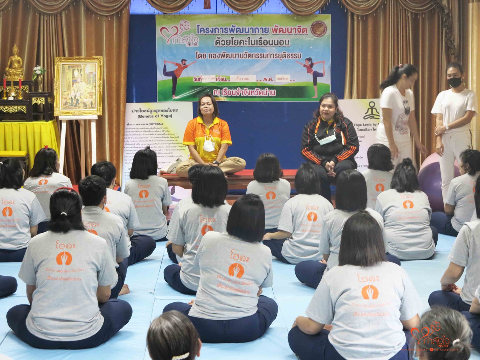 เมื่อวันที่ 16 -18 ธันวาคม 2563 โครงการกำลังใจฯ โดยกองพัฒนานวัตกรรมการยุติธรรม ได้จัดโครงการพัฒนากาย พัฒนาจิต ด้วยโยคะในเรือนนอน ครั้งที่ 2 ณ เรือนจำจังหวัดน่าน โดยมี น.ส ศิริวรรณ โสภารัตน์ เป็นวิทยากร มีผู้ต้องขังหญิงที่เข้ารับการอบรมทั้งสิ้น 40 คน