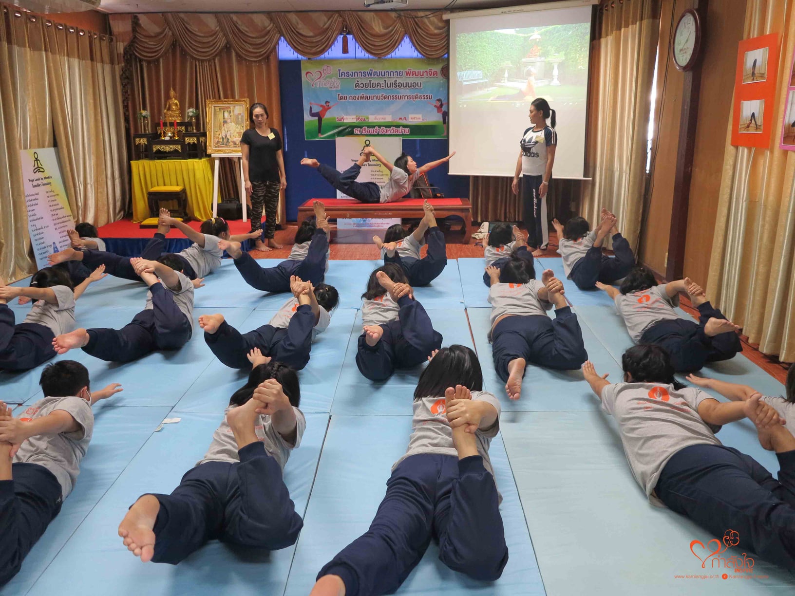 วันที่ 16 ธันวาคม 2563 ช่วงเช้า วิทยากรให้ผู้ต้องขังที่เข้ารับการฝึกอบรมทบทวนท่าโยคะ ที่ได้ฝึกไว้ เมื่อตอนอบรมครั้งที่ 1 และสอบถามผู้ต้องขังว่า ได้นำโยคะที่เรียนไปฝึกปฏิบัติในเรือนนอนหรือไม่ ซึ่งผู้ต้องขังส่วนใหญ่ได้นำไปฝึกปฏิบัติอยู่เป็นประจำ และรู้สึกว่าอาการเจ็บป่วยที่เป็นอยู่ดีขึ้น เช่น มีผู้ต้องขังคนหนึ่งเป็นโรคหอบหืด ต้องกินยาอยู่เป็นประจำ หลังจากที่ได้นำท่าโยคะไปฝึกปฏิบัติแล้วรู้สึกว่า ตัวเองมีสุขภาพที่ดีขึ้น ไม่ต้องกินยาเหมือนแต่ก่อน ส่วนผู้ต้องขังอีกคน มีภาวะเป็นจิตเวช เมื่อครั้งแรกที่มาเรียน ยังคงมีอาการเหม่อลอย เชื่องช้า แต่พอมาในครั้งที่ 2 พบว่า หน้าตาสดใส ยิ้มแย้มแจ่มใส และมีสมาธิมากขึ้น จึงได้สอบถามผู้ต้องขังดังกล่าว และพบว่าผู้ต้องขังใช้หลักการฝึกโยคะที่วิทยากรแนะนำไปฝึกปฏิบัติ จากนั้น วิทยากรกล่าวว่า การฝึกโยคะเพื่อพัฒนากายและใจนี้ เป็นการฝึกเพื่อการบำบัดรักษา ทั้งทางร่างกายและจิตใจ ผู้ต้องขังสามารถนำไปปรับใช้ในชีวิตประจำวันได้ แม้จะอยู่ในพื้นที่ ที่จำกัด ก็สามารถฝึกปฏิบัติได้ จากนั้น ให้ผู้ต้องขัง ฝึกทำท่าโยคะที่ช่วยเรื่องระบบการหมุนเวียนของเลือดในร่างกาย เช่น ท่ายกขาสูงขึ้นฟ้า (เป็น 1 ในท่าอาสนะ ที่ใช้ในการบำบัดร่างกาย) ช่วงบ่าย ให้ฝึกการเคลื่อนไหวของร่างกาย โดยใช้ท่าอาสนะ จำนวน 17 ท่า ประกอบด้วยทั้งท่าแบบนั่ง และแบบนอน จากนั้น ให้ผู้ต้องขังสูงอายุออกมาแสดงท่าโยคะอาสนะในท่าต่างๆ ให้ผู้ต้องขังคนอื่นเห็นว่า แม้กระทั่ง ผู้สูงอายุ ก็สามารถทำท่าโยคะได้ โดยก่อนจะจบการสอน วิทยากรให้ผู้ต้องขังเขียนความรู้สึก ที่ได้เรียนโยคะบำบัดว่าตัวเองได้มีพัฒนาการทางด้านร่างกายและจิตใจอย่างไรบ้าง ซึ่งผู้ต้องขังได้เขียนออกมาเป็นความรู้สึกต่าง ๆ เช่น รู้สึกว่าตนเองแข็งแรงขึ้น ร่างกายที่เคยเจ็บป่วยก็ลดน้อยลง จากที่เคยท้องผูกก็หาย ไม่ปวดเมื่อยร่างกายเหมือนแต่ก่อน และถ้าวันไหนไม่ได้ฝึกท่าโยคะ ก็จะรู้สึกหงุดหงิด ไม่สบายตัว ช่วงเช้า วิทยากรให้ผู้ต้องขัง ยืดเส้นด้วยท่าโยคะ ท่านั่งและท่านอน จำนวน 10 ท่า และให้ทำสมาธิในท่านอนเพื่อให้กระดูกสันหลังได้พัก ให้อวัยวะทุกส่วนในร่างกายระนาบกับพื้น กำหนดลมหายใจเข้า-ออก ช่วยระบบการย่อยอาหาร ให้อ๊อกซิเจนเข้าไปช่วยเผาผลาญในกระเพาะอาหาร วิทยากรให้ผู้ต้องขังนั่งขัดสมาธิ และฝึกจิตผ่านการกำหนดลมหายใจเข้า-ออก ลำดับต่อไป วิทยากรอธิบายการพัฒนาจิตผ่านอุปกรณ์ลูกบอลแบบนิ่มและแบบแข็ง เปรียบเทียบภาวะทางอารมณ์ของมนุษย์ว่า ถ้าเ