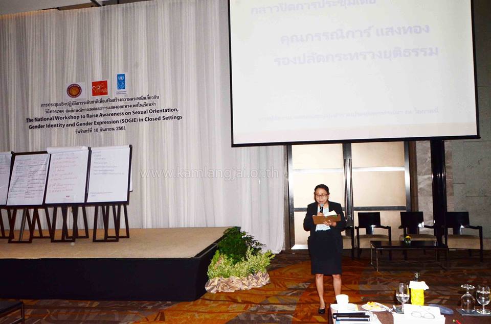 เมื่อวันจันทร์ที่ 10 กันยายน 2561 เวลา 9.00 น. พลอากาศเอก ประจิน จั่นตอง รองนายกรัฐมนตรีและรัฐมนตรีว่าการกระทรวงยุติธรรม ได้เป็นประธานในพิธีเปิด “การประชุมเชิงปฏิบัติการระดับชาติเพื่อเสริมสร้างความตระหนักเกี่ยวกับวิถีทางเพศ อัตลักษณ์ทางเพศ และการแสดงออกทางเพศในเรือนจำ” เพื่อกำหนดทิศทางและแนวทางการปฏิบัติต่อผู้ต้องขังที่มีความหลากหลายทางเพศในเรือนจำ ให้มีความชัดเจนมากยิ่งขึ้น ตลอดจนเป็นการแสวงหาแนวปฏิบัติที่ดี เพื่อดูแลผู้ต้องขังกลุ่มดังกล่าว ณ ห้องบอลรูม บี และ ซี โรงแรมอมารี วอเตอร์เกท โดยมี นางกรรณิการ์ แสงทอง รองปลัดกระทรวงยุติธรรม พลตำรวจเอก ณรัชต์ เศวตนันทน์ อธิบดีกรมราชทัณฑ์ คุณเดียร์ดรา บอยด์ ผู้ประสานงานองค์การสหประชาชาติประจำประเทศไทย ผู้แทนสำนักงานป้องกันยาเสพติดและปราบปรามอาชญากรรมแห่งสหประชาชาติ (UNODC) และองค์กรภาคประชาชน ผู้บัญชาการเรือนจำ ผู้อำนวยการทัณฑสถาน รวมทั้งผู้ที่เกี่ยวข้องเข้าร่วมการประชุม จัดโดยสำนักงานโครงการพัฒนาแห่งสหประชาติ ประจำประเทศไทย (UNDP Thailand) กองพัฒนานวัตกรรมการยุติธรรม สำนักงานปลัดกระทรวงยุติธรรม และกรมราชทัณฑ์