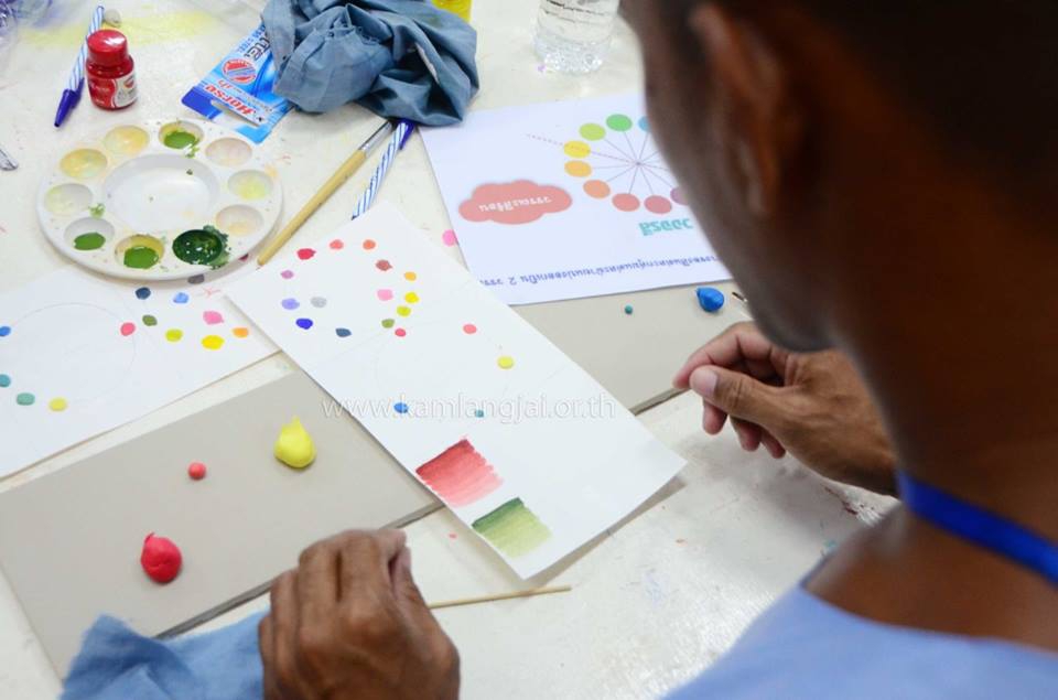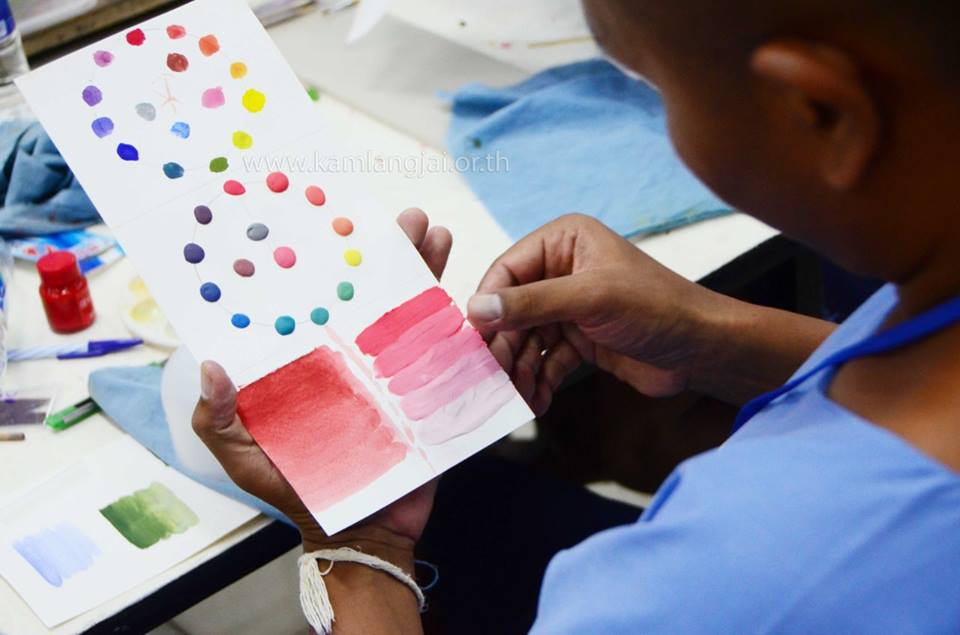 ผู้ฝึกอบรมตั้งใจและสนุกกับการแสดงความคิดเห็นในการผสมสีต่างๆ เป็นอย่างมากในช่วงบ่าย เป็นการฝึกปฏิบัติในการผสมสี โดยการฝึกทาสีจากสีน้ำจากสีเข้มไปสีอ่อน และการใช้ดินญี่ปุ่นในการผสมสี ผู้ฝึกอบรมได้ใช้ความคิดสร้างสรรค์ของตังเองในการผสมสี โดยอ้างอิงจากทฤษฎีที่เรียนในช่วงเช้า