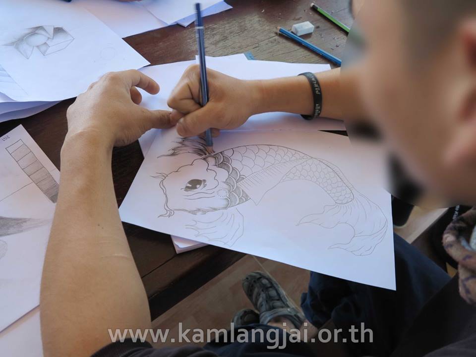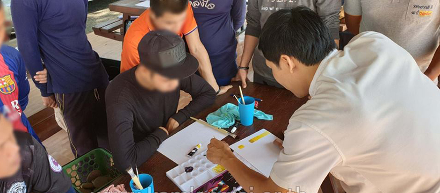 โครงการกำลังใจฯ อบรมเพ้นท์หิน ณ เรือนจำชั่วคราวดอยฮาง เชียงราย
