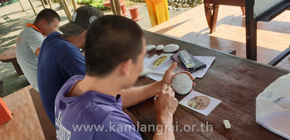 เมื่อวันที่ 4-9 พฤศจิกายน 2561 โครงการกำลังใจฯ โดยกองพัฒนานวัตกรรมการยุติธรรม ได้กำหนดจัดโครงการฝึกอบรมการเพ้นท์ก้อนหิน ให้แก่ผู้ต้องขังชาย เรือนจำชั่วคราวดอยฮาง จังหวัดเชียงราย เพื่อเป็นการฝึกสมาธิ ฝึกอาชีพ สามารถนำไปใช้ในการประกอบอาชีพเมื่อพ้นโทษได้ เป็นรายได้เลี้ยงตนเองและครอบครัว โดยได้เชิญ นายจิรพงศ์ ผัสวี ซึ่งเป็นผู้มีความรู้ความชำนาญในการวาดภาพบนก้อนหินมาเป็นวิทยกร ในครั้งนี้ และมีผู้ต้องขังที่มีความสนใจในการวาดภาพเข้ารับการอบรมฝึกอาชีพ จำนวน 7 คน ซึ่งผู้รับการอบรมจะได้รับการฝึกเรื่องศิลปะพื้นฐาน การวาดลายเส้น การใช้สี การวาดก้อนหิน การสร้างสรรค์ผลงานของตนเองให้โดดเด่น ซึ่งผู้เข้าการอบรมมีความสนใจและตั้งใจในการอบรมในครั้งนี้เป็นอย่างมาก และจะนำผลงานที่ได้ฝึกทำ มาแสดงในงานครบรอบ 12 ปีกำลังใจ ที่จะจัดในเดือนธันวาคม 2561 นี้ด้วย เพื่อเป็นการประชาสัมพันธ์ผลงาน ซึ่งหากมีประชาชนสนใจก็จะเป็นรายได้อีกทางหนึ่งแก่ผู้ต้องขังต่อไป