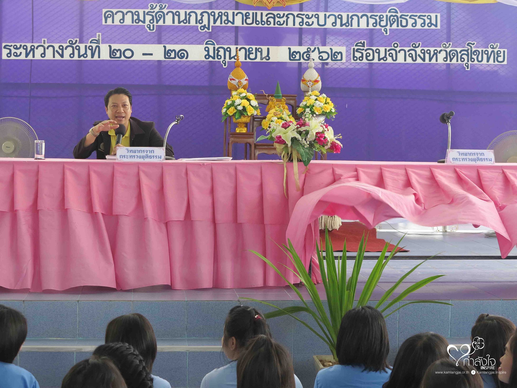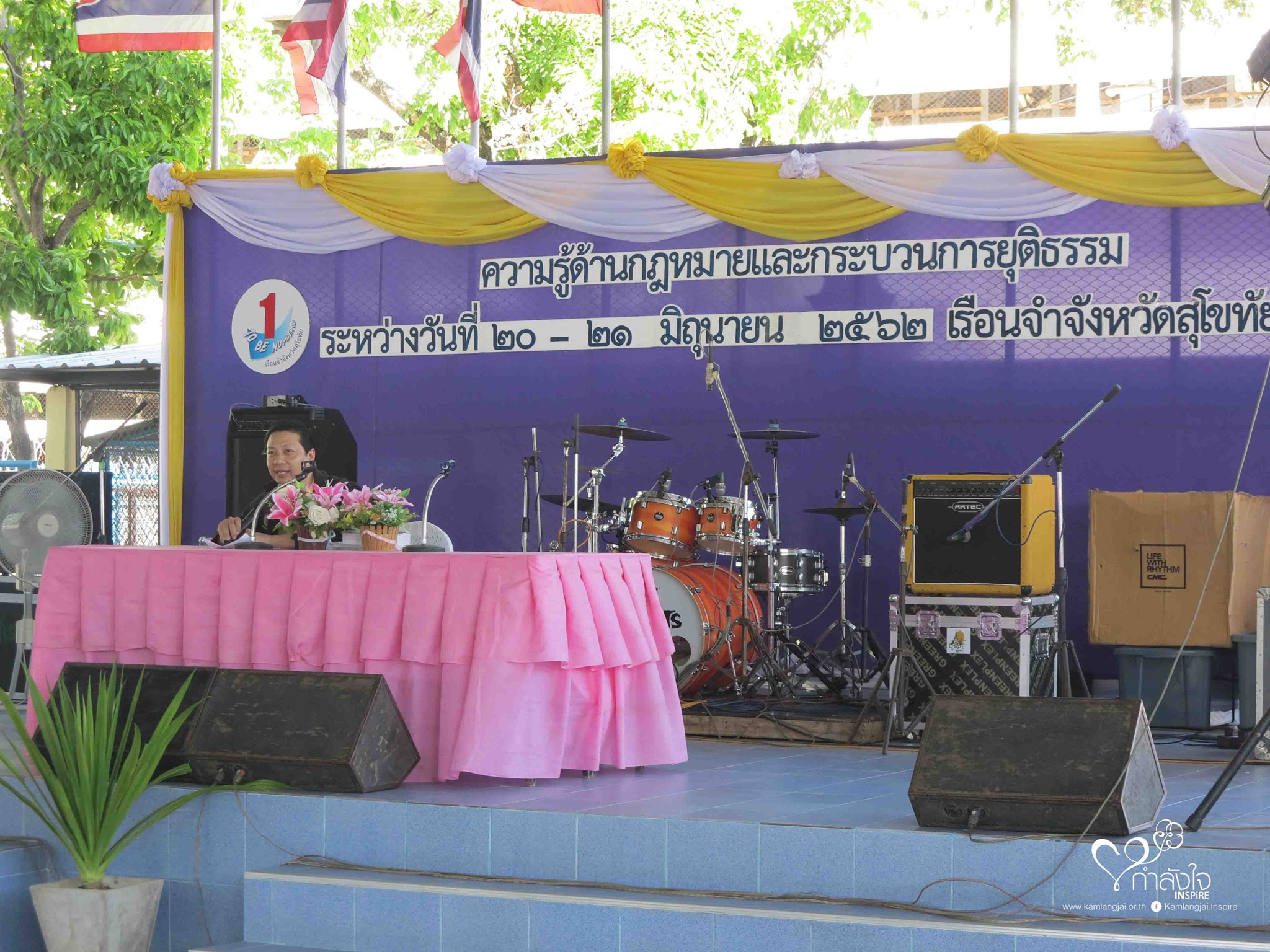 เมื่อวันที่ 20-21 มิ.ย.62 โครงการกำลังใจในพระดำริฯ โดยกองพัฒนานวัตกรรมการยุติธรรม ได้เดินทางไป ณ เรือนจำจังหวัดสุโขทัย เพื่อสำรวจข้อมูลการเตรียมความพร้อมการให้ความรู้ด้านกฎหมายและกระบวนการยุติธรรม โดยนายธนวัฒ พิสิฐจินดา และทีมงาน ได้บรรยายและพูดคุย ให้ความรู้ในเรื่องกฎหมาย มีผู้ต้องขังชายและหญิงเข้าร่วมรับฟังในวันแรก จำนวนประมาณ 1,450 คน มีความสนใจในเรื่องคดียาเสพติดต่างๆ และตอบข้อสงสัยประเด็นคดีของตนเอง ซึ่งทำให้มีความรู้และความเข้าใจมากขึ้น พร้อมทั้งให้เขียนคำถามคดีที่มีความสงสัยของตนเอง เพื่อจะได้ปรึกษาวิทยากรให้อธิบายเพื่อความเข้าใจ