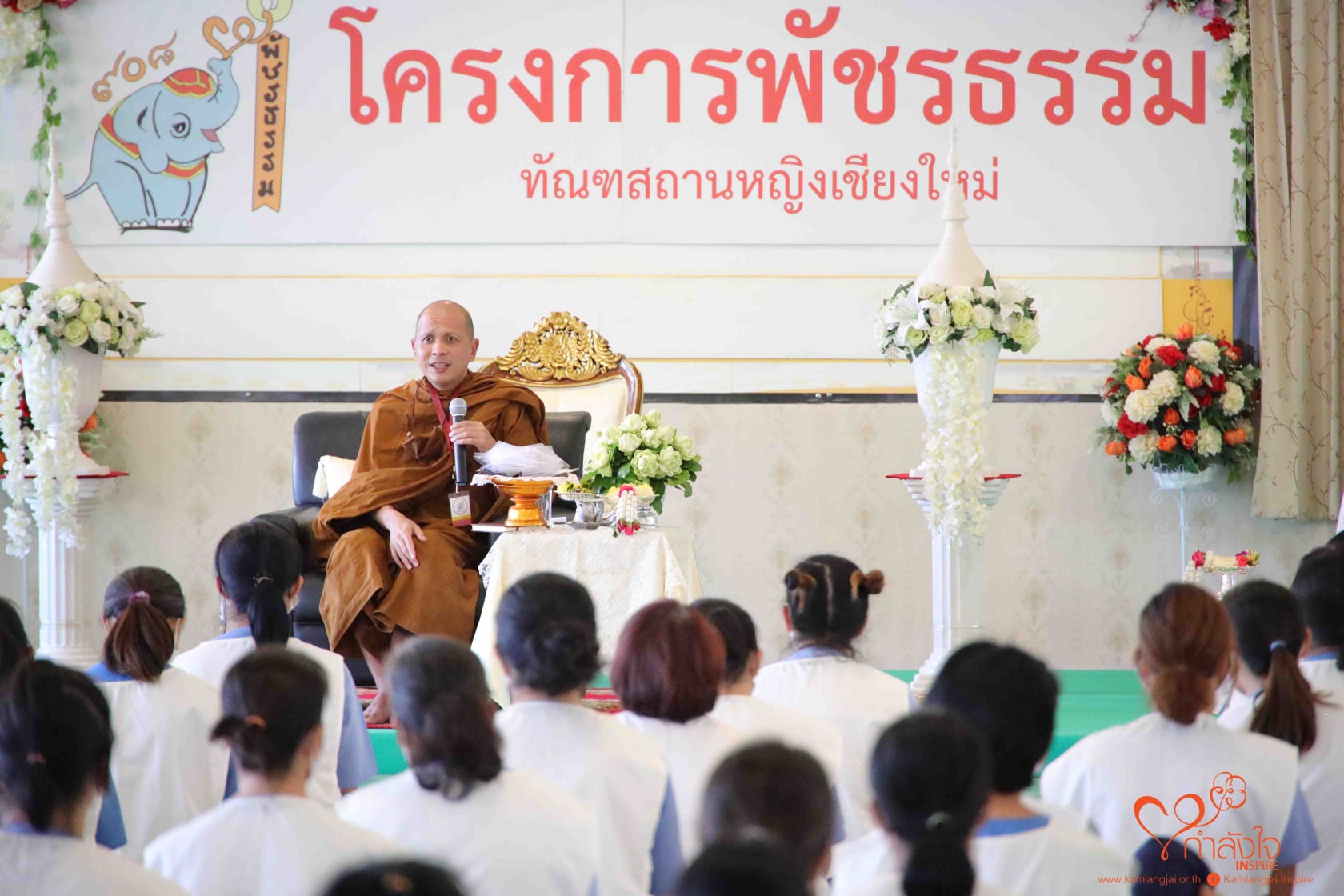 ในวันที่​ 8 ธันวาคม​ 2563 โครงการกำลังใจฯ โดยกองพัฒนานวัตกรรม​การ​ยุติธรรม​ ร่วมกับวัดป่าพุทธพจน์หริภุญไชยในพระอุปถัมภ์​ จังหวัด​ลำพูน โดยหลวงพ่อพระอาจารย์อารยวังโส​ มอบผู้แทน พระอธิการศุภเชฏฐ์ ปัญญาวโร​ เจ้าอาวาสวัดป่าอา​ร​ย​วัง​สา​ราม​ จังหวัด​พระนคร​ศรี​อยุธยา​ บรรยาย​ธรรมในการดำเนินโครงการพัชรธรรม มีนางอาจารี ศรีสุนาครัว ผู้อำนวยการทัณฑสถานห​ญิงเขียงใหม่ เป็นประธานในพิธีเปิดการดำเนินโครงการฯ พร้อมด้วย คณะเจ้าหน้าที่ ร่วมรับฟังการดำเนินโครงการ​ พระวิทยากรได้มอบหลักการปฏิบัติพื้นฐาน ในเรื่อง สติ สัมปชัญญะ” เพื่อจะได้มีความเข้าใจและเป็นประโยชน์ต่อการปฏิบัติกิจกรรมพัชรธรรมประจำวัน และอธิบายเบื้องตนเรื่องจิต เจตสิก ภวังคจิต ตามที่ได้มอบให้กับทุกเรือนจำในการดำเนินการในครั้งนี้ เพื่อให้ทุกคนพัฒนาจิตใจ จุดมุ่งหมายเพื่อ ให้ฝึกอ่านจิตออก บอกจิตได้ ใช้จิตเป็น และก้าวข้ามความทุกข์ในจิตของตนเองให้ได้ช่วงท้ายพระจำรัส สนทนาธรรม เรื่อง คุณค่าแห่งการปฏิบัติ การฝึกตนพัฒนาตน