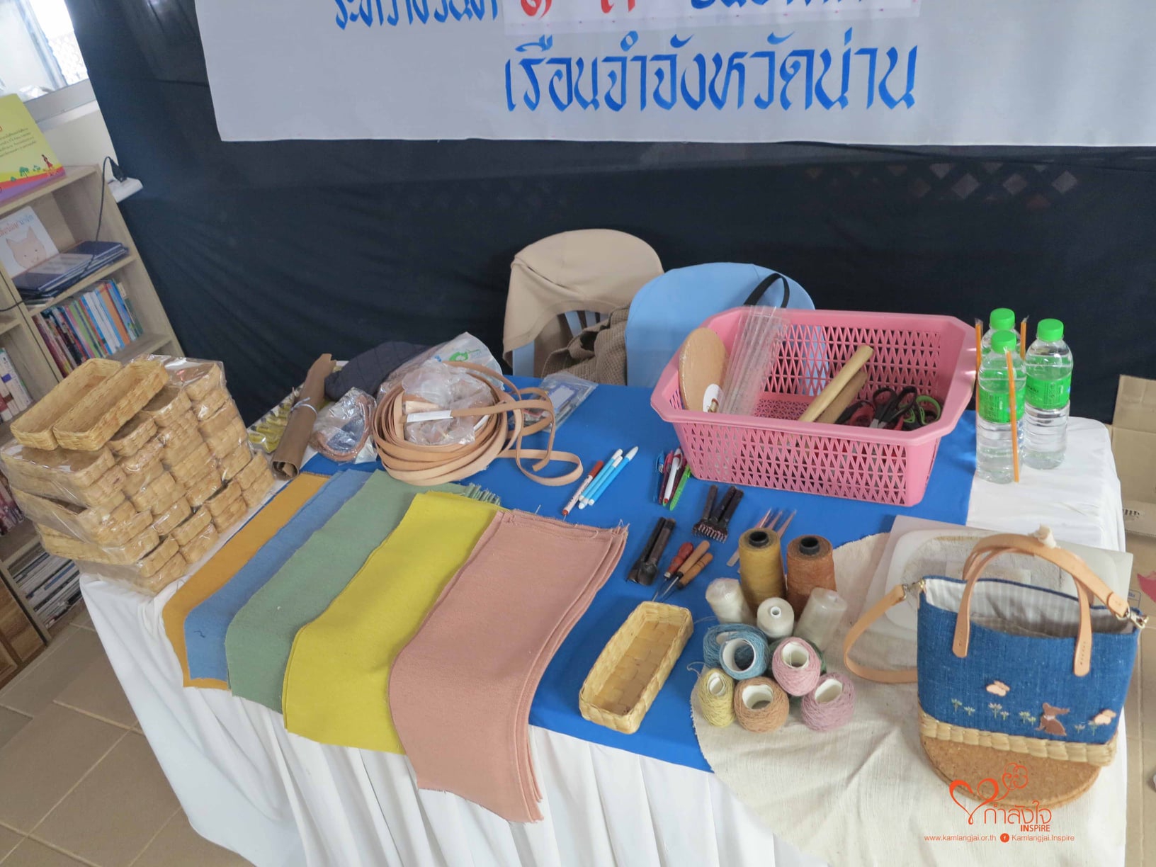 โครงการกำลังใจฯ โดยกองพัฒนานวัตกรรมการยุติธรรม จัดฝึกอบรมวิชาชีพการแปรรูปผ้าและหนังเป็นผลิตภัณฑ์ต่างๆ ครั้งที่ 1 และครั้งที่ 2 เมื่อวันที่ 12 - 14 พฤศจิกายน 2563 และเมื่อวันที่ 1 – 3 ธันวาคม 2563 นำวิทยากรผู้มีประสบการณ์ด้านการพัฒนาผลิตภัณฑ์ ได้แก่ นางสุชฎา คล่องนักรบ และนายอุทัย จันทร์หอม มาบรรยายและฝึกปฏิบัติให้แก่ผู้ต้องขังหญิง จำนวน 15 คน ในโครงการอบรมฝึกวิชาชีพการแปรรูปผ้าและหนังเป็นผลิตภัณฑ์ต่างๆ ซึ่งดำเนินงานภายใต้โครงการกำลังใจฯ ณ ห้องอบรมแดนหญิง เรือนจำจังหวัดน่าน การอบรมนี้ มีวัตถุประสงค์เพื่อให้ผู้ต้องขังหญิงได้ฝึกทักษะวิชาชีพ นำไปประกอบอาชีพภายหลังพ้นโทษ เพื่อให้มีกำลังใจ เกิดความมั่นใจในการทำงาน มองเห็นหนทางในการประกอบอาชีพ และเพื่อพัฒนาความคิดสร้างสรรค์ การออกแบบ การนำไปใช้ประโยชน์ รวมถึงการซ่อมแซมได้ วิทยากรได้บรรยายให้ผู้ต้องขังหญิงว่า การอบรมนี้จะเน้นการเรียนรู้ในเรื่องผลิตภัณฑ์ ซึ่งการแปรรูปหนังและผ้าขึ้นเป็นผลิตภัณฑ์ จะเน้นให้เรียนและทำได้ง่ายเน้นการทำมือ ซึ่งวิทยากรกล่าวว่า ให้ผู้เรียนมีความรู้ 4 เรื่อง คือ