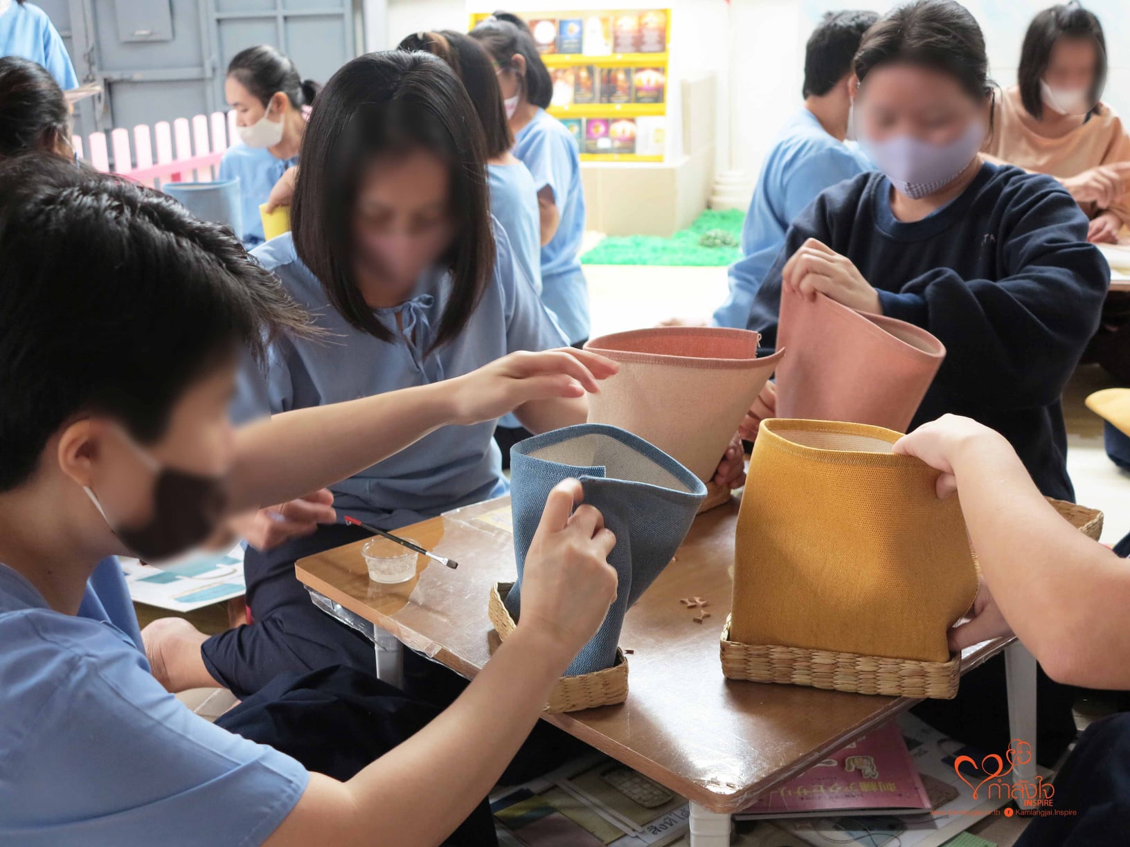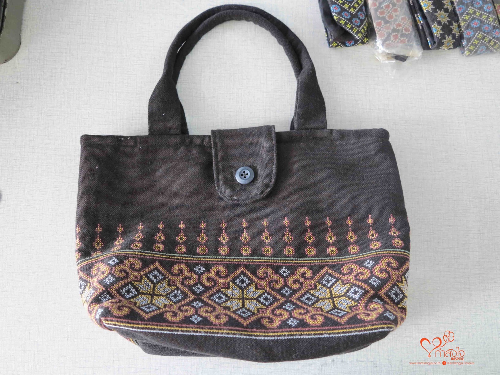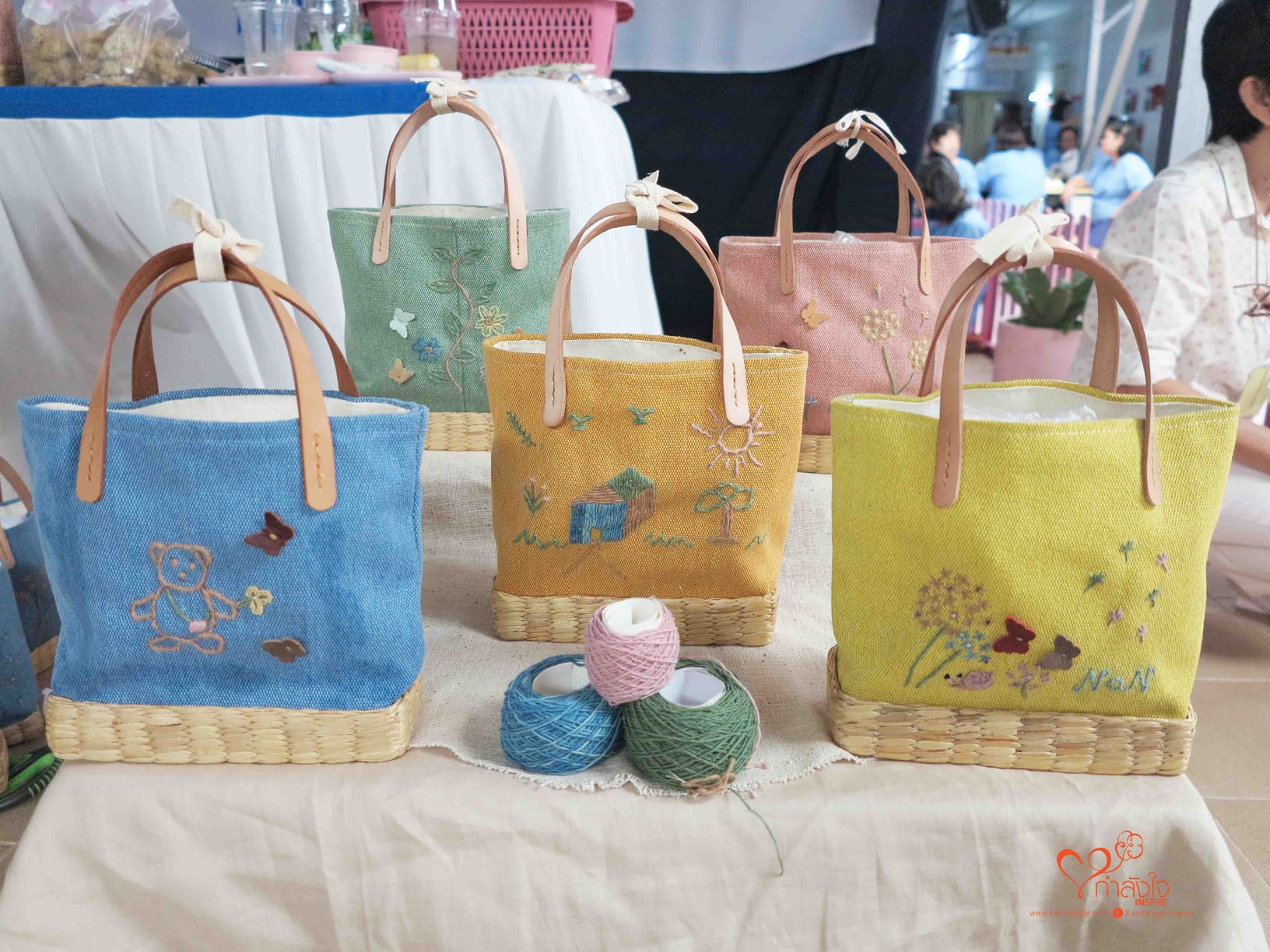 โดยวิทยากรสอนวิธีการตอกมุมของสายหนังเพื่อความสวยงามก่อนเย็บ สอนวิธีการผสมสาร CMC (กาว) เพื่อนำมาติดฐานกระเป๋าเมื่อผสมกับน้ำจำละลายและนำมาติดฐานกระเป๋า สอนเทคนิคการตอกรูสายหนังสำหรับเย็บหูกระเป๋าที่ขึ้นรูปไว้แล้ว ให้ผู้เข้าอบรมเลือกแบบหรือลายก่อนทำการปักลายลงบนผ้า โดยให้เลือกแบบที่เตรียมไว้ เช่นรูปสัตว์ ดอกไม้ ต้นไม้ หรือวาดตามจินตนาการของผู้อบรมเองด้วยปากกาสี หรือตกแต่งด้วยหนังแผ่นมาตัดเป็นรูปต่างๆ และนำมาเย็บติดกับกระเป๋า สอนวิธีการ เนาผ้า การใช้สีของด้ายเทียนสีต่างๆ ให้เข้ากับสีผ้าที่เตรียมไว้