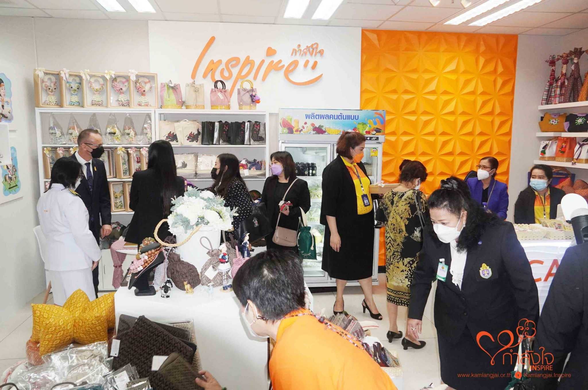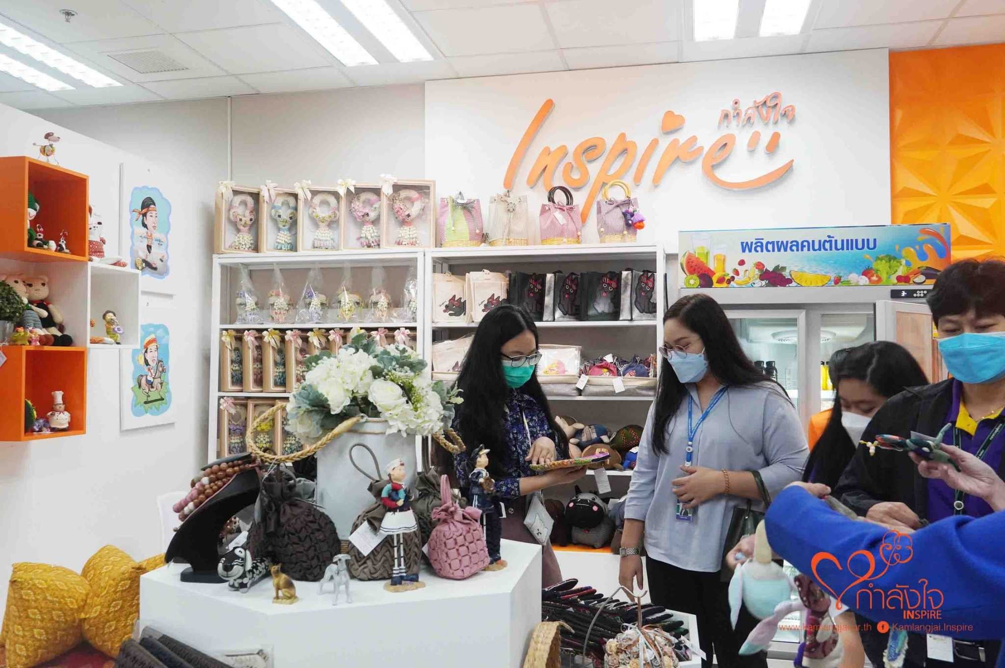 เมื่อวันที่ 28 ตุลาคม 2564 เวลา 12.00 น. พลอากาศโทสมคิด สุขบาง รองประธานคณะกรรมการกองทุนกำลังใจฯ และคณะกรรมการกองทุนกำลังใจฯ รวมถึงเคานต์เจอรัล แวน เดอ สตราเทน พอนโธส ประธานมูลนิธิเจ้าพระยา อภัยราชาสยามานุกูลกิจ หม่อมราชวงศ์ปรียนันทนา รังสิต รองประธานมูลนิธิเจ้าพระยาอภัยราชาสยามานุกูลกิจ นางเตือนใจ สินธุวณิก และดร.จินตนันท์ ชญาต์ร ศุภมิตร คณะกรรมการมูลนิธิฯ ได้เข้าเยี่ยมชมร้าน Inspire พร้อมอุดหนุนสินค้าโครงการกำลังใจฯ ซึ่งร้าน Inspire เปิดให้บริการแล้ว ณ อาคารกระทรวงยุติธรรม โดยภายในร้านจัดจำหน่ายสินค้าที่เป็นผลิตภัณฑ์ฝีมือผู้ต้องขังจากเรือนจำและทัณฑสถานในโครงการกำลังใจทั่วประเทศ อาทิเช่น สายคล้องแมส พวงมาลัยกระดาษทิชชู จากทัณฑสถานหญิงธนบุรี, กระเป๋าควิลท์ จากทัณฑสถานหญิงพิษณุโลก, ผ้าพันคอ ผ้าคลุมไหล่ หน้ากากอนามัย จากทัณฑสถานหญิงเชียงใหม่, กระเป๋าสม็อค จากทัณฑสถานหญิงกลาง, ผ้าถุงเกาะยอ จากทัณฑสถานหญิงสงขลา, เครื่องประดับโครเชต์ จากเรือนจำกลางขอนแก่น เป็นต้น นอกจากนี้ยังมีน้ำสมุนไพร และผักออร์แกนิก ซึ่งเป็นสินค้าจากคนต้นแบบโครงการกำลังใจฯ สำหรับผลิตภัณฑ์เหล่านี้นับเป็นการสร้างพลัง สร้างโอกาส และสร้างอาชีพให้แก่ผู้พ้นโทษ ไม่ให้หวนกลับมากระทำผิดซ้ำ โดยร้าน Inspire เปิดให้บริการในวันจันทร์ - วันศุกร์ เวลา 08.00 - 15.00 น. ทั้งนี้ ยังมีผลิตภัณฑ์จากมูลนิธิอาสาเพื่อนพึ่ง (ภาฯ) ยามยาก สภากาชาดไทย มาจำหน่ายในร้าน Inspire ด้วย