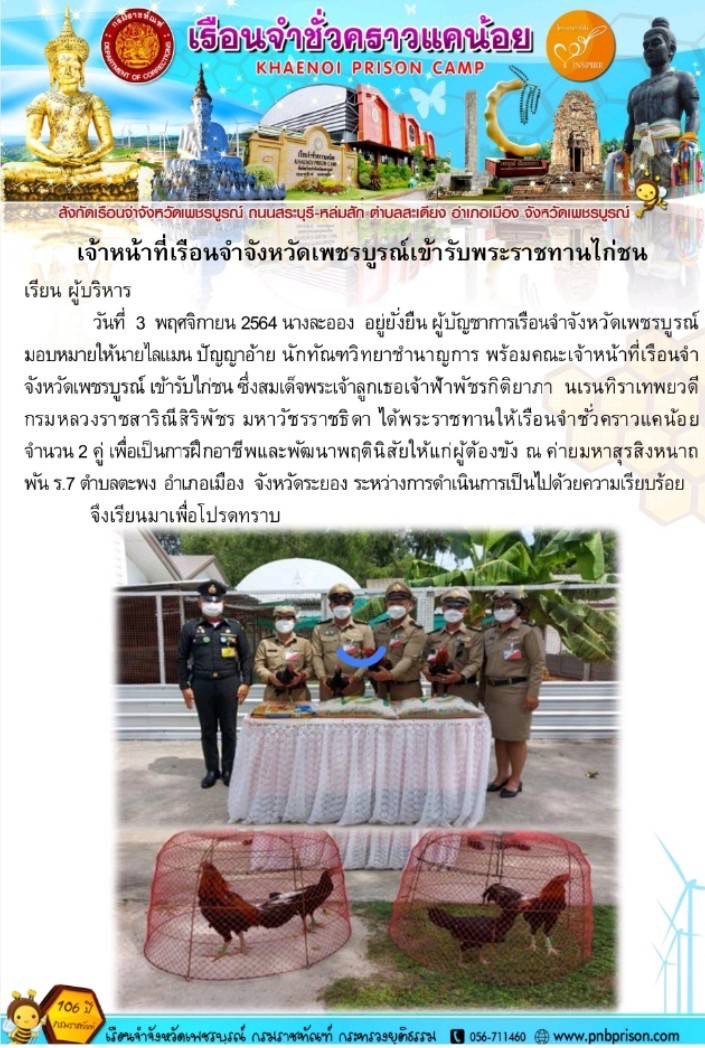 เจ้าหน้าที่เรือนจำจังหวัดเพชรบูรณ์เข้ารับพระราชทานไก่ชน