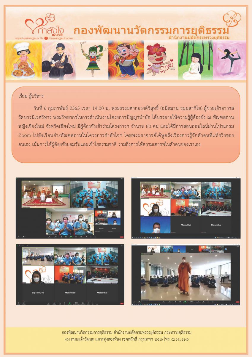 ข่าวน่าสนใจ กองพัฒนานวัตกรรมการยุติธรรม โครงการปัญญาบำบัด