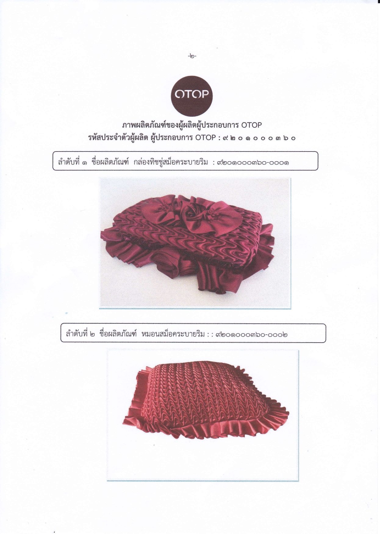 สินค้า OTOP ของเรือนจำจังหวัดตรัง ก็คือ กล่องทิชชู่สม็อคระบายริม และหมอนสม็อคระบายริม ส่วนสินค้า OTOP ของทัณฑสถานหญิงเชียงใหม่ ก็คือ ผ้าคลุมไหล่ / ผ้าฝ้ายทอยกดอก / ผ้าไหมยกเล็กลายดอกแก้วพระทัย ตรานกยูงสีน้ำเงิน / เสื้อคลุมปักมือ / กระเป๋าถือผ้าปัก / กระเป๋าผ้าปัก 4 ด้าน