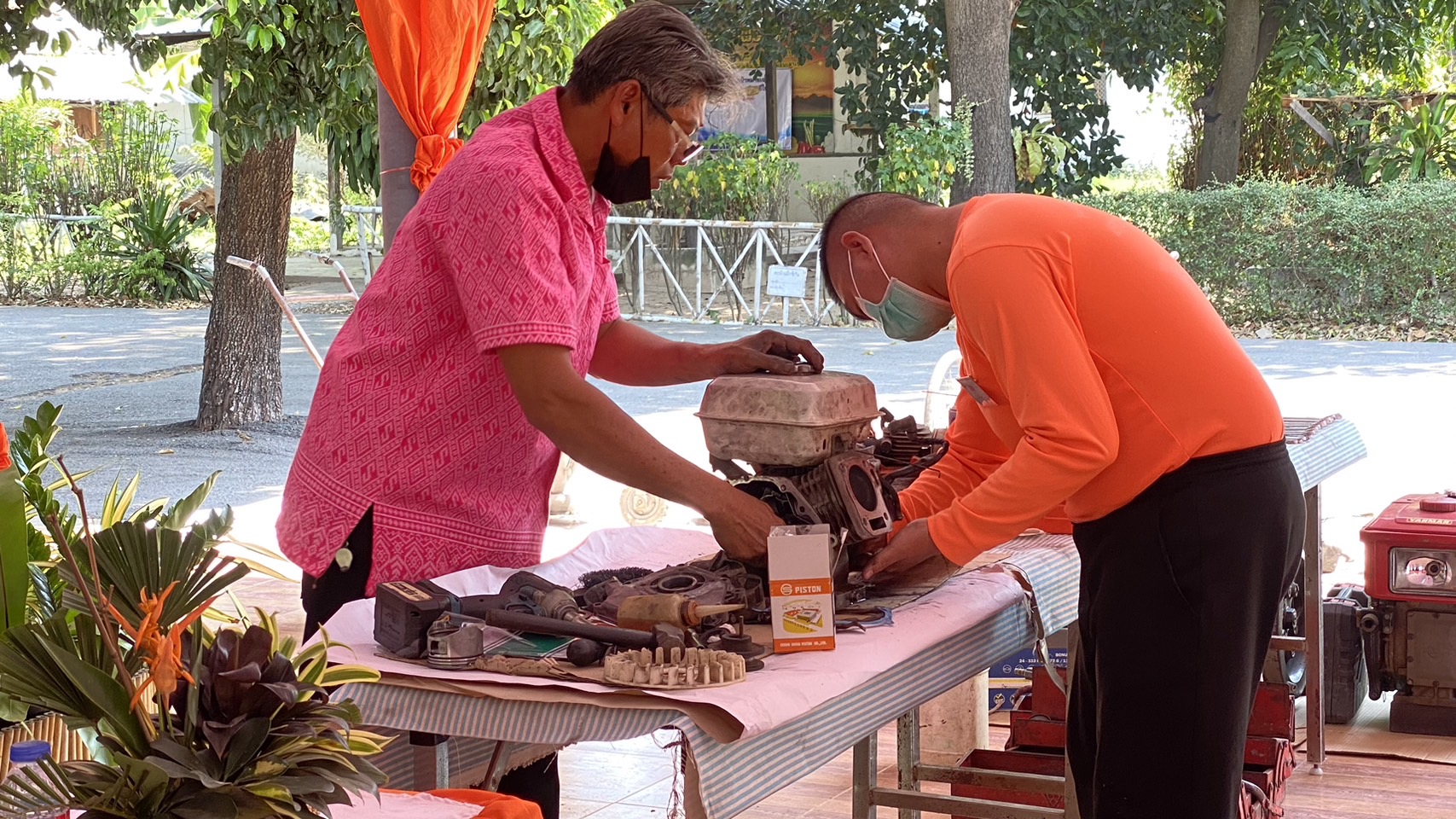 การสอนภาคปฏิบัติ แบ่งกลุ่ม 4 กลุ่มๆ ละ 5 คน เพื่อวิเคราะห์และแก้ไขเครื่องยนต์ที่ขัดข้องให้พร้อมใช้งาน พร้อมทั้งวิทยากรให้คำแนะนำในแต่ละกลุ่ม ผู้เข้ารับการอบรมให้ความสนใจเป็นอย่างมาก เนื่องจากเป็นวิชาชีพช่างซ่อมเครื่องยนต์ที่ให้บริการซ่อมในชุมชนมีไม่มากนัก จึงเป็นช่องทางการประกอบอาชีพอีกหนึ่งอาชีพที่สามารถสร้างรายได้หลัก รายได้เสริมและใช้เวลาว่างให้เกิดประโยชน์และสามารถที่จะนำมาต่อยอดเพื่อประกอบอาชีพหลังพ้นโทษได้