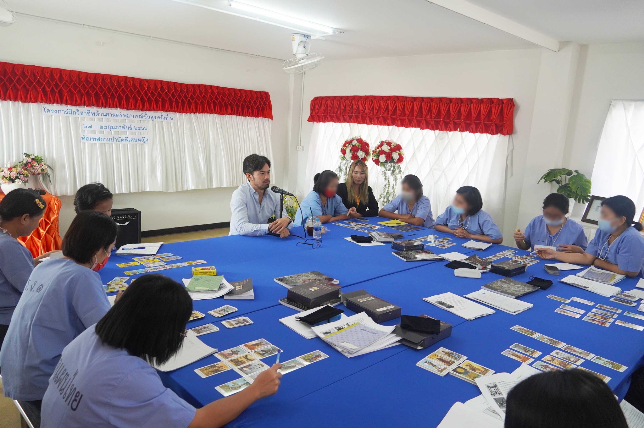 โครงการฝึกวิชาชีพศาสตร์พยากรณ์ขั้นสูง เพื่อการพัฒนาศักยภาพด้านการประกอบอาชีพ วันที่ 27 - 28 กุมภาพันธ์ 2566 กองพัฒนานวัตกรรมการยุติธรรม ได้จัดโครงการฝึกวิชาชีพศาสตร์พยากรณ์ขั้นสูง เพื่อการพัฒนาศักยภาพด้านการประกอบอาชีพ ณ ทัณฑสถานบำบัดพิเศษหญิง จังหวัดปทุมธานี โดยมีนายเอกลักษณ์ ประเสริฐสุข และนางสาวประณีต เขาแก้ว เป็นวิทยาการบรรณยาย มีผู้ต้องขังจำนวน 17 คน ซึ่งการฝึกวิชาชีพครั้งนี้เป็นการฝึกวิชาชีพต่อเนื่องจากการฝึกวิชาชีพขั้นพื้นฐาน ผู้เข้ารับการฝึกวิชาชีพได้จัดแบ่งเป็น 2 กลุ่มย่อย ฝึกทบทวนการทำนายไพ่ในรูปแบบ 3 ใบ และ 10 ใบ ซึ่งผู้เข้าฝึกอบรมไปจัดกลุ่มและผลัดกันทำนาย การอ่านไพ่แบบเชื่องโยงระหว่างไพ่ และฝึกการบอกความหมายของไพ่ในแต่ละใบ