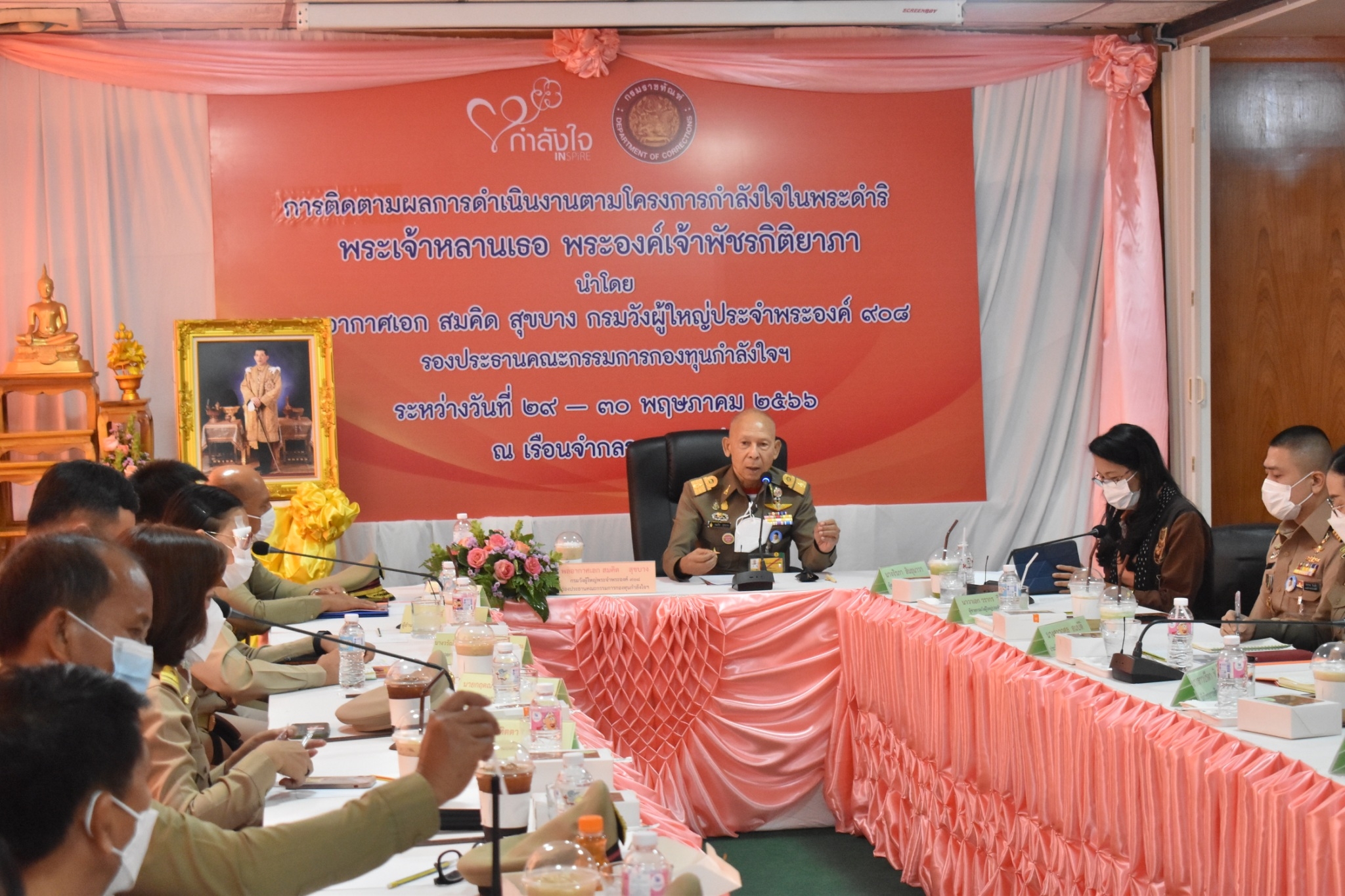 วันที่ 29 - 30 พฤษภาคม 2566 พลอากาศเอก สมคิด สุขบาง กรมวังผู้ใหญ่ประจำพระองค์ 908 รองประธานคณะกรรมการกองทุนกำลังใจฯ พร้อมด้วยคณะกรรมการกองทุนกำลังใจฯ ลงพื้นที่เพื่อตรวจเยี่ยมและติดตามผลการดำเนินงานตามโครงการกำลังใจฯ ณ เรือนจำกลางอุดรธานี โดยประชุมร่วมกับนายเจนเจตน์ เจนนาวิน รองผู้ว่าราชการจังหวัดอุดรธานี นายภัทรพงศ์ หมวกสกุล ผู้บัญชาการเรือนจำกลางอุดรธานี โดยมีหน่วยงานในสังกัดกระทรวงยุติธรรม นายนพดล จงสมชัย ผู้แทนแรงงานจังหวัดอุดรธานี ว่าที่ร้อยโทอนุเทพ ศรีดาวเรือง จัดหางานจังหวัดอุดรธานี นายบุญรุ่ง โนใจ ผู้แทนสถาบันพัฒนาฝีมือแรงงาน 18 อุดรธานีนางวาสนา ฤทธาภัย สวัสดิการและคุ้มครองแรงงานจังหวัดอุดรธานี นางกำไร บุ้งจันทร์ ประกันสังคมจังหวัดอุดรธานี และสถานประกอบการ 6 แห่ง ได้แก่ บริษัท สบายเทคโนโลยีจำกัด (มหาชน) นางสาวบุญญานุช มากมูล ให้บริการเกี่ยวกับตู้เติมเงินออนไลน์ ตู้น้ำ ตู้เติมน้ำมัน และตู้จำหน่ายน้ำแข็ง บริษัทอุดรเก้า เจริญทรัพย์ จำกัด นายบัณฑิตสุริยะ เลิศกุล เป็นโรงงานผลิตและแปรรูปผลิตภัณฑ์จากไม้ ห้างหุ้นส่วนจำกัดอุดรสยามการช่าง 1999 นางลัดดาวัลย์ อนันตริยะทรัพย์ เป็นธุรกิจรับเหมาก่อสร้าง การก่อสร้างอาคารที่ไม่ใช่ที่พักอาศัย บริษัทแม็ซซ์คอร์ป (ประเทศไทย) จำกัด นางสาวธิดารัตน์ แซ่ครู (กรรมการบริษัท) เป็นธุรกิจผลิตและจำหน่ายเสื้อผ้าสำเร็จรูป สิ่งทอและเครื่องนุ่งห่ม การผลิตเสื้อผ้า บริษัท BSFLY จำกัด นายสไกร อินทร์นาง ประกอบกิจการ ฟาร์มเลี้ยงหนอนแมลงวันลาย และแปรรูปผลิตภัณฑ์สินค้าจากหนอนแมลงวันลาย เพื่อทำอาหารสัตว์ และร้านพีทีพี คาร์แคร์ นายปฐมพงษ์ พลดง ล้างอัดฉีด ล้างสี ฝุ่น ล้างเคลือบสี รถยนต์ จากนั้นพูดคุยกับคนต้นแบบ 4 คน ที่ได้รับทุนจากกองทุนกำลังใจฯ คนละ 20,000 บาท ได้ต่อยอดวิธีคิด มุมมองใหม่ในเรื่องความอดทน อดกลั้น การมีสมาธิ และการดูแลสุขภาพระหว่างที่อยู่ในเรือนจำ เชิญคนต้นแบบเข้ากลุ่มไลน์ และกลุ่มของกองพัฒนานวัตกรรมการยุติธรรม และเชิญมาเป็นวิทยากร ในโอกาสนี้ พลอากาศเอก สมคิด สุขบาง ได้กล่าวถึงแนวทางการพัฒนาผู้ต้องขัง ควรออกใบประกาศนียบัตรในการอบรมแต่ละหลักสูตร หรือสมุดพกให้กับผู้ต้องขังที่พ้นโทษเพื่อเป็นการสร้างความมั่นใจให้กับผู้ประกอบการในการรับผู้พ้นโทษเข้าทำงาน และขอบคุณท่านรองผู้ว่าราชการจังหวัดฯ หน่วยงานแรงงานจังหวัด ในการดูแลผู้ต้องขังในเรือนจำ ผู้พ้นโทษ และผู้ที่ยังไม่เข้าเรือนจำ จัดให้มีการสอนนวดแผนไทย ดูดวงไพ่ยิบซี การอบรม การดูแล ผู้สูงอายุ จัดการ