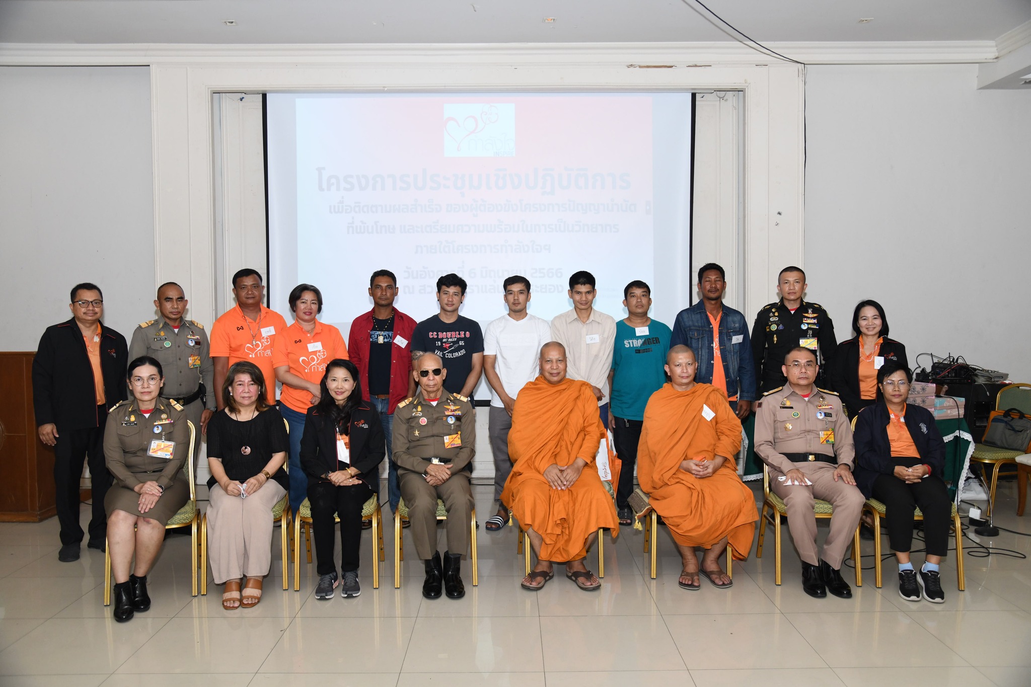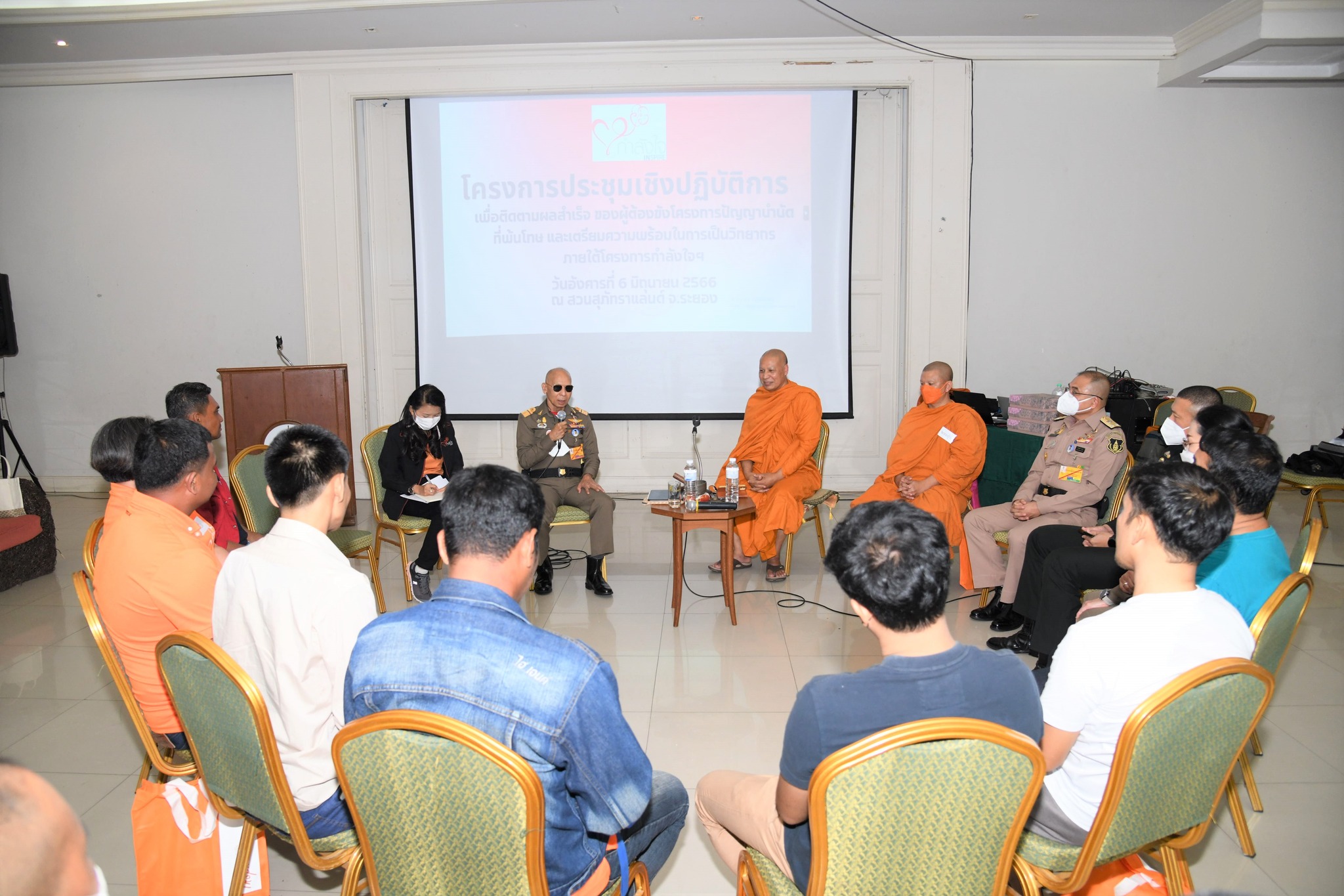 วันที่ 6 มิถุนายน 2566 กองพัฒนานวัตกรรมการยุติธรรม จัดโครงการประชุมเชิงปฏิบัติการเพื่อติดตามผลสำเร็จของโครงการปัญญาบำบัด และเตรียมความพร้อมเป็นวิทยากรภายใต้โครงการกำลังใจฯ ณ สวนสุภัทราแลนด์ จังหวัดระยอง โดยมี พระธรรมศากยวงศ์วิสุทธิ์ พระวิทยากรโครงการ มีสมาชิกโครงการปัญญาบำบัด รุ่นที่ 1 เข้าร่วมประชุม จำนวน 9 คน ซึ่งเป็นรวมตัวกัน เพื่อพบปะพูดคุยแลกเปลี่ยน ข้อมูลการใช้ชีวิตชึ่งกันและกัน โอกาสนี้ พลอากาศเอก สมคิด สุขบาง กรมวังผู้ใหญ่ประจำพระองค์ 908 และรองประธานคณะกรรมการกองทุนกำลังใจฯ ได้พูดคุยและให้กำลังใจผู้เข้าร่วมประชุม และเน้นย้ำความสำคัญของการเปลี่ยนความคิดผ่านปัญญาบำบัด ซึ่งเป็นส่วนหนึ่งของกระบวนการแก้ไขฟื้นฟู การอบรมปัญญาบำบัด มีวัตถุประสงค์เพื่อเปลี่ยนความคิดเป็นรายบุคคลโดยน้อมนำพระนิพนธ์ของสมเด็จพระสังฆราชองค์ที่ 19 เรื่อง จิตตนคร มาเป็นสื่อในการอบรม ซึ่งแก้ไขฟื้นฟูฐานความคิดโดยเริ่มจาก “สติ” ไปสู่ “ ปัญญา” เพื่อให้ผู้เข้าอบรมเริ่มรู้จักตนเองและเห็นคุณค่าในตนเองและนำไปสู่การ “คิดใหม่ ทำใหม่”