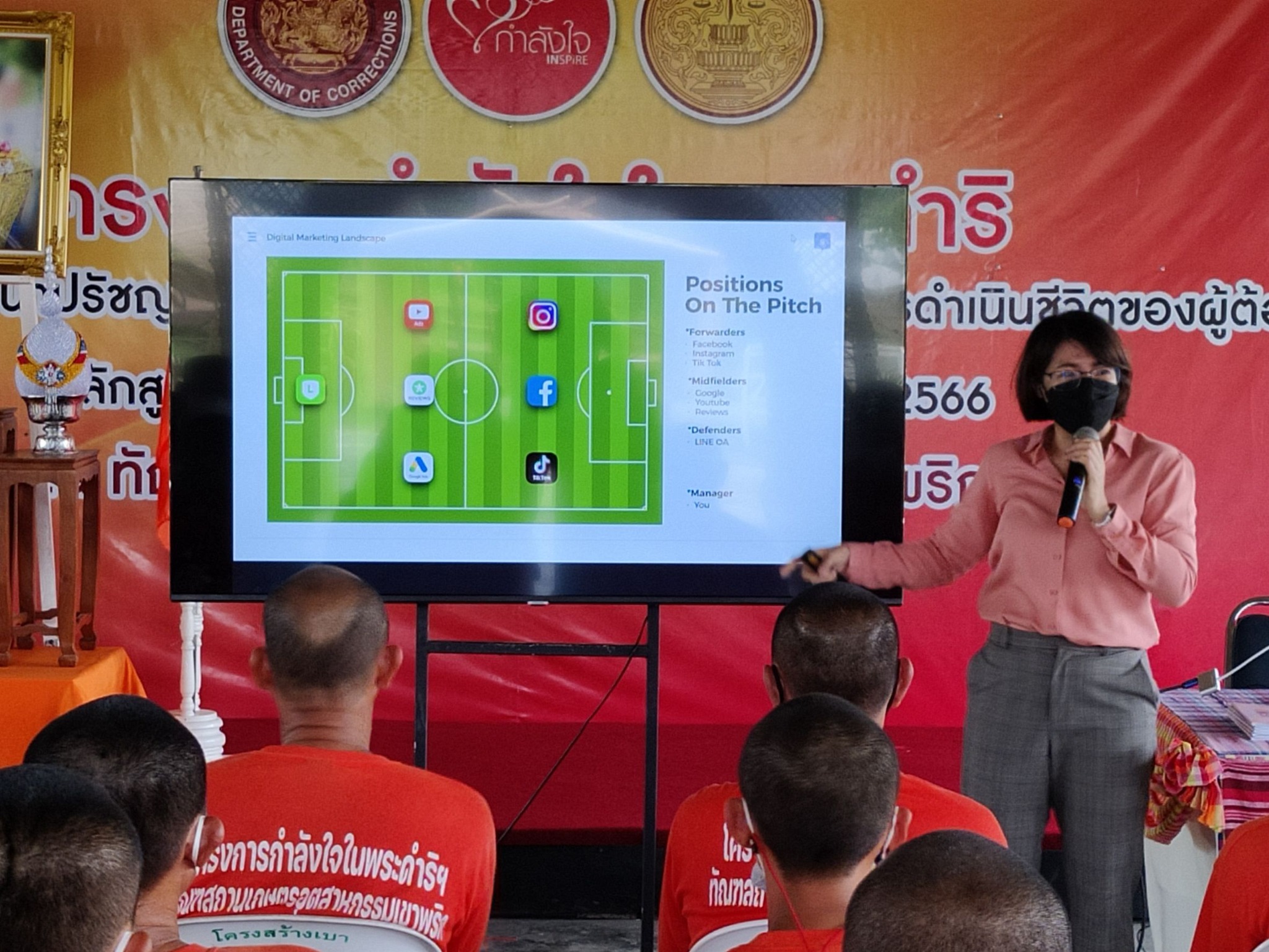 วันที่ 29 - 30 มิถุนายน 2566 โครงการกำลังใจฯ ร่วมกับ สำนักงานพัฒนาธุรกรรมทางอิเล็กทรอนิกส์ (ETDA) จัดอบรมหลักสูตรพิชิตธุรกิจออนไลน์ และหลักสูตรการเป็นพลเมืองดิจิทัล ให้แก่ผู้ต้องขัง ณ ทัณฑสถานเกษตรอุตสาหกรรมเขาพริก จังหวัดนครราชสีมา ให้ความรู้ในเรื่องการเริ่มต้นสร้างอาชีพออนไลน์, ข้อดีของการขายของออนไลน์, หัวใจของการทำธุรกิจ, การเลือกสินค้าที่จะขายโดยเลือกจากสิ่งที่รัก ทักษะที่มี สิ่งที่สร้างประโยชน์ สิ่งที่สร้างรายได้ การหาแหล่งค้าส่ง/วัตถุดิบ วิธีตั้งราคา, การสร้างตัวตนบนโลกออนไลน์ ช่วงบ่าย ให้ความรู้ในเรื่อง Facebook Marketplace, ประเภทของ Facebook, การขายสินค้าออนไลน์ โดยให้แนวคิดว่าสินค้าดี แบรนด์ดัง ทีมขายต้องเด่น ให้ความรู้ในหัวข้อ Digital Communication หัวข้อสื่อบนโลกออนไลน์และธรรมชาติของสื่อ , Digital Literacy การรู้เท่าทันสื่อ , Chat GPT หรือ แชตบอท, Technology Deep fake หรือ เทคโนโลยีที่ใช้สร้างสื่อสังเคราะห์เพื่อปลอมแปลงลักษณะบุคคลต่าง ๆ, Digital Security, SCAM หรือการหลอกลวงรูปแบบต่าง ๆ ผ่านอินเตอร์เน็ต, Phishing หรือ การสร้างเว็บไซต์ปลอมเพื่อหลอกให้คนเป็นเหยื่อ คำพูดที่ใช้ในการสื่อสารผ่านโปรแกรมแชท ซึ่งอาจทำให้การตีความหมายผิดพลาด การสื่อสารอย่างเหมาะสม เช่น การแชร์ข่าวต่าง ๆ การรู้เท่าทันเทคโนโลยี รู้จักและเข้าใจธรรมชาติของสื่อ การรู้เท่าทันภัยออนไลน์ โดย 3 เสาหลัก ได้แก่ ต้นตอ ที่มา เนื้อหา การตรวจสอบข้อเท็จจริง คือ เช็คต้นตอ ที่มาของผู้เผยแพร่ เนื้อหา/ข้อมูลที่กล่าวถึง ข้อมูลส่วนบุคคลนำไปสู่ความเสี่ยงอะไรบ้าง ทั้งนี้ ตัวแทนผู้เข้ารับการอบรมได้กล่าวขอบคุณกระทรวงยุติธรรมฯ และวิทยากรที่มาให้ความรู้ ซึ่งจะนำความรู้ที่ได้รับไปใช้ในชีวิตประจำวันต่อไป