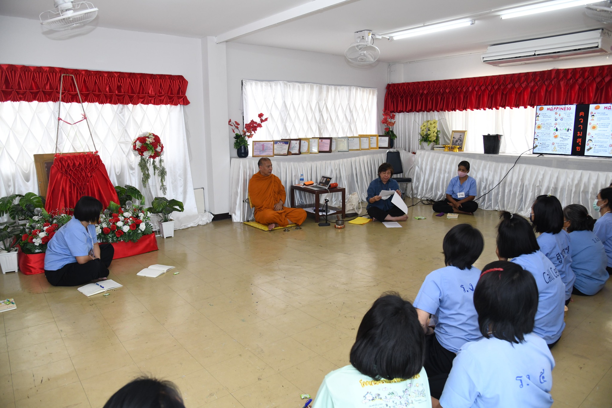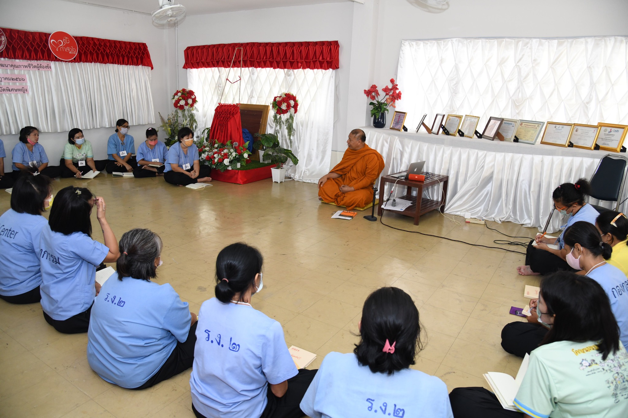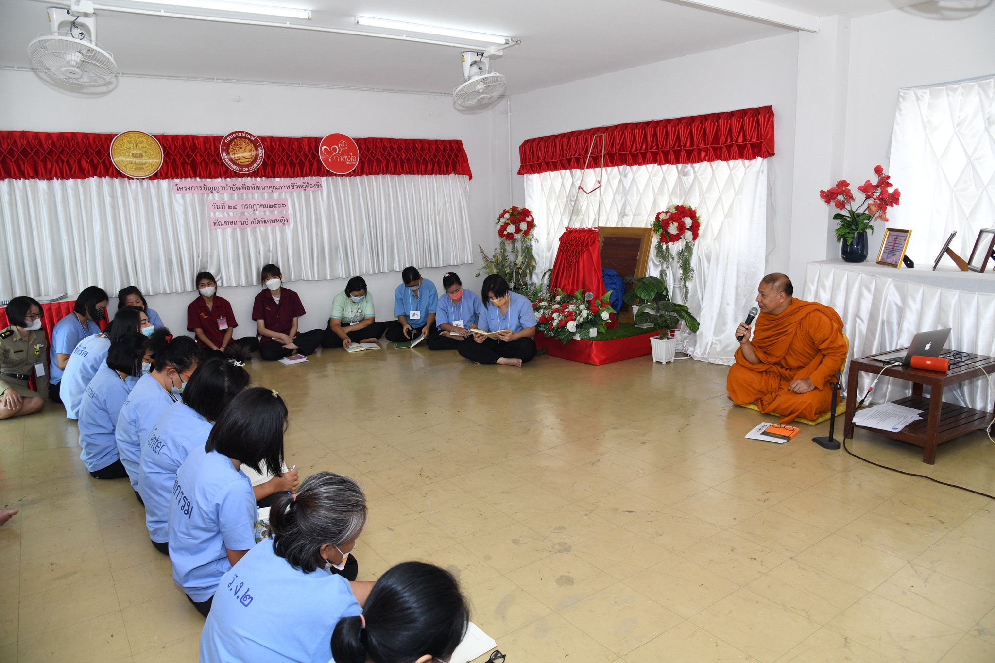 วันที่ 24 กรกฎาคม 2566 กองพัฒนานวัตกรรมการยุติธรรม ดำเนินการจัดโครงการปัญญาบำบัดเพื่อพัฒนาคุณภาพชีวิตผู้ต้องขัง ครั้งที่ 3 ณ ทัณฑสถานบำบัดพิเศษหญิง จังหวัดปทุมธานี มีผู้เข้ารับการอบรม จำนวน 20 คน โดยมี พระธรรมศากยวงศ์วิสุทธิ์ (อนิลมาน ธมฺมสากิโย) เป็นพระวิทยากร ได้มีการพูดคุยและให้ผู้เข้ารับการอบรมได้แสดงความคิดเห็นในหัวข้อ “ความดี คืออะไร”พระอาจารย์ได้อธิบายให้ผู้เข้าอบรมเข้าใจ ความดี คือ กิเลสชนิดหนึ่ง โดยธรรมชาติแล้วเราจะไม่ทำอะไรที่สร้างความเดือดร้อนให้ตัวเอง โดยได้ให้ผู้เข้าอบรมดูการ์ตูนแอนิเมชัน เรื่อง เมืองนิรมิตแห่งจิตตนคร ตอนที่ 1 คู่บารมี กับ สมุทัยผู้ฉ้อฉล ซึ่งเป็นการฝึกให้บริหารจิตและคิดตามเรื่องราวตัวละครที่สะท้อนความรู้สึกที่เกิดขึ้นภายในใจของตน เรื่อง โลภ โกรธ หลง จากนั้นได้ฝึกการทำสมาธิโดยการฝึกให้คิด และดึงสติ เช่น หากมีอารมณ์โกรธอย่าแสดงออกหรือตอบโต้ทันที ลองปล่อยเวลาให้ผ่านไปแล้วค่อยจัดการกับอารมณ์ ผลลัพธ์ที่เกิดอาจจะเปลี่ยนแปลงไป ผู้เข้าอบรมมีความตั้งใจในการเรียนรู้และเข้าร่วมกิจกรรม