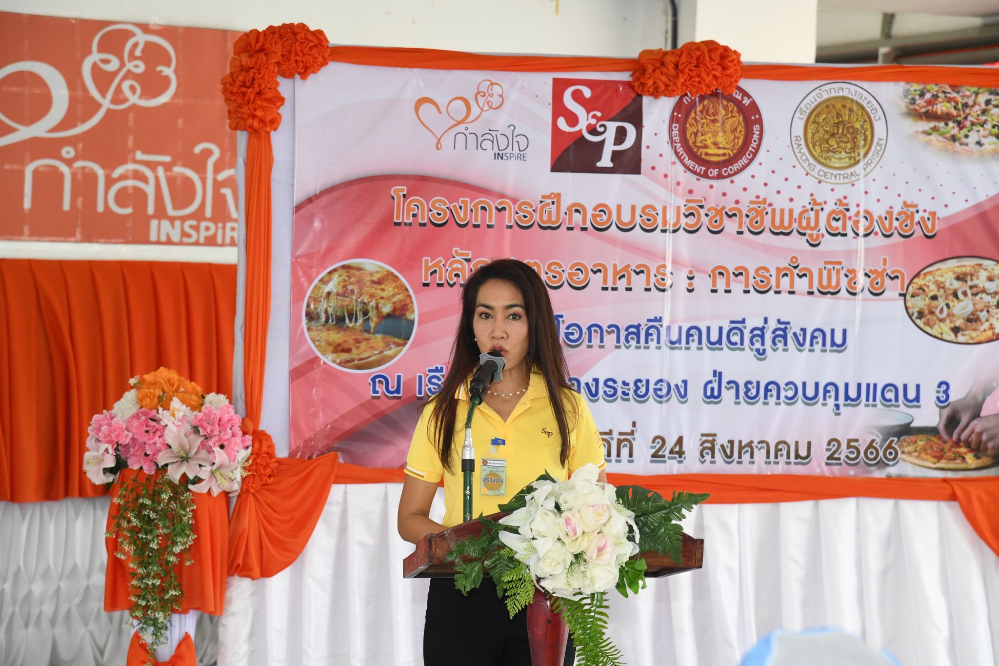 “โครงการอบรมฝึกวิชาชีพหลักสูตรอาหาร: การทำพิซซ่า” กองพัฒนานวัตกรรมการยุติธรรมร่วมกับบริษัท เอส แอนด์ พี ซินดิเกท จำกัด (มหาชน) จัดโครงการอบรมฝึกวิชาชีพหลักสูตรอาหาร : การทำพิซซ่า ณ เรือนจำกลางระยอง จังหวัดระยอง ในวันที่ 24 สิงหาคม 2566 โดยได้รับเกียรติจาก คุณมณีสุดา ศิลาอ่อน ประธานเจ้าหน้าที่สำนักพัฒนาความยั่งยืนและสื่อสารองค์กร บริษัท เอส แอนด์ พี ซินดิเคท จำกัด (มหาชน) มาร่วมในพิธีเปิดโครงการฯ และมีพลอากาศเอก สมคิด สุขบาง กรมวังผู้ใหญ่ประจำพระองค์ 908 และรองประธานคณะกรรมการกองทุนกำลังใจฯ เป็นผู้กล่าวเปิดการอบรมโครงการฯ ซึ่งโครงการนี้ได้รับความกรุณาจากบริษัท เอส แอนด์ พี ซินดิเคท จำกัด (มหาชน) ที่ดำเนินธุรกิจด้านอาหาร เบเกอรี่ และเครื่องดื่มที่มีชื่อเสียงมาอย่างยาวนาน กว่า 50 ปี มาช่วยฝึกอบรมการทำพิซซ่าให้แก่ผู้ต้องขังทั้งชายและหญิงที่อยู่ในเรือนจำกลางระยอง จำนวน 30 คน (หญิง 20 คน ชาย 10 คน) เพื่อนำความรู้ที่ได้ไปประกอบอาชีพหลังพ้นโทษ โดยสอนตั้งแต่การผสมแป้งพิซซ่า การนวดแป้ง การทำซอสพิซซ่า การตกแต่งหน้าพิซซ่า และวิธีการอบพิซซ่าให้ออกมาสวย น่ารับประทาน ซึ่งผู้เข้าอบรมได้เรียนรู้ในทุกขั้นตอน และได้ทำพิซซ่าโดยฝีมือตนเองคนละ 1 ชิ้น
