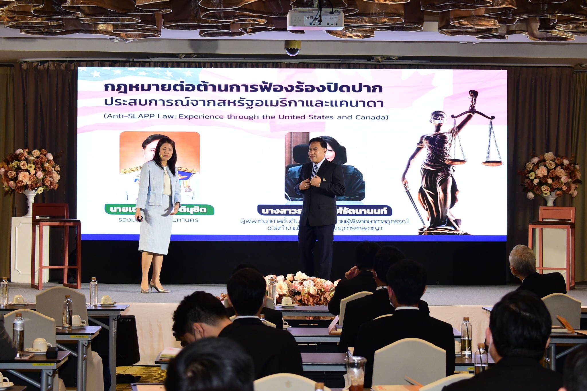 วันนี้ 8 กันยายน 2566 พลอากาศเอก สมคิด สุขบาง กรมวังผู้ใหญ่ประจำพระองค์ 908 และรองประธานคณะกรรมการกองทุนกำลังใจฯ เป็นประธานกล่าวเปิดงาน การประชุมสัมมนาประจำปี 2566 “มองการฟ้องร้องปิดปาก ผ่านม่านตาตุลาการ” ณ โรงแรมแกรนด์ ฟอร์จูน กรุงเทพฯ โดยได้รับเกียรติจากนายศักดิ์ชัย รังษีวงศ์ อธิบดีผู้พิพากษาศาลอาญา เป็นผู้กล่าววัตถุประสงค์ของการจัดประชุมสัมมนาในครั้งนี้ โดยการประชุมสัมมนาดังกล่าวมีการเสวนาเรื่อง “กฎหมายต่อต้านการฟ้องร้องปิดปาก ประสบการณ์จากสหรัฐอเมริกาและแคนาดา” ซึ่งนำเสนอโดย นางสาวรสดา วงศ์รัตนานนท์ ผู้พิพากษาศาลชั้นต้นประจํากองผู้ช่วยผู้พิพากษา ศาลอุทธรณ์ ช่วยทำงานในตำแหน่งเลขานุการศาลอาญา และนายเฉลิมพล โชตินุชิต รองปลัดกรุงเทพมหานคร อีกทั้งยังมีการเสวนาวิชาการเรื่อง “มองการฟ้องร้องปิดปาก ผ่านม่านตาตุลาการ” โดยมีวิทยากร ได้แก่ ศาสตราจารย์ (พิเศษ) จรัญ ภักดีธนากุล อดีตตุลาการศาลรัฐธรรมนูญ นายพงษ์เดช วานิชกิตติกูล ผู้พิพากษาหัวหน้าคณะในศาลอุธรณ์ภาค ๑ นายมุขเมธิน กลั่นนุรักษ์ ผู้ช่วยผู้พิพากษาศาลฎีกา ดำเนินการเสวนาโดย นายนวรัตน์ กลิ่นรัตน์ ผู้ช่วยผู้พิพากษาศาลฎีกา โดยมีผู้เข้าร่วมประชุมสัมมนาในครั้งนี้ที่ประกอบด้วย เจ้าหน้าที่จากศาลอุทธรณ์ ศาลอาญา ศาลแพ่ง ศาลยุติธรรม และเจ้าหน้าที่จากกระทรวงยุติธรรม จำนวน 136 คน