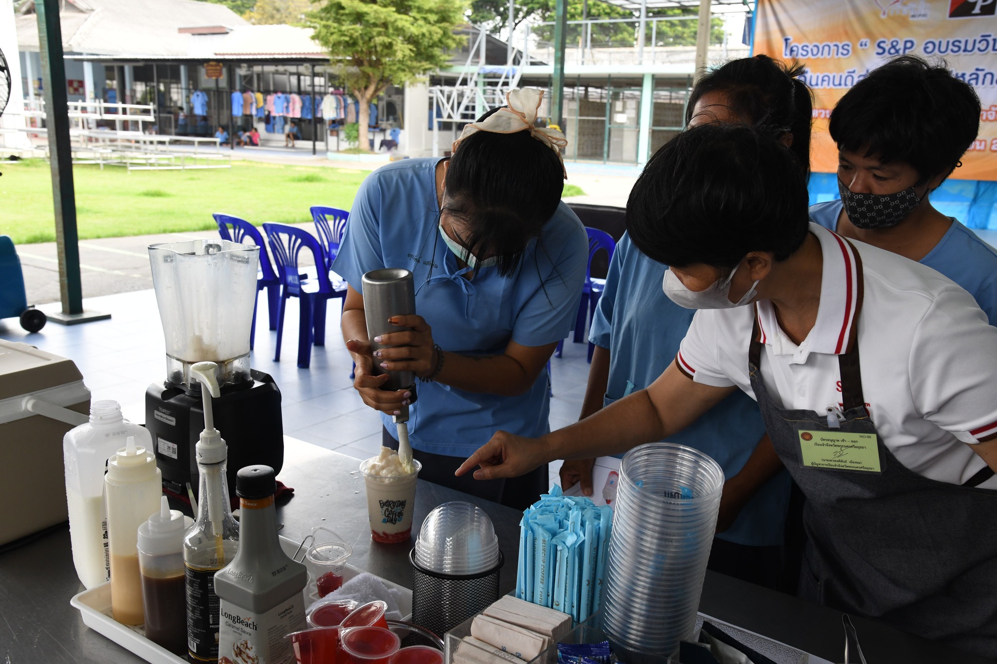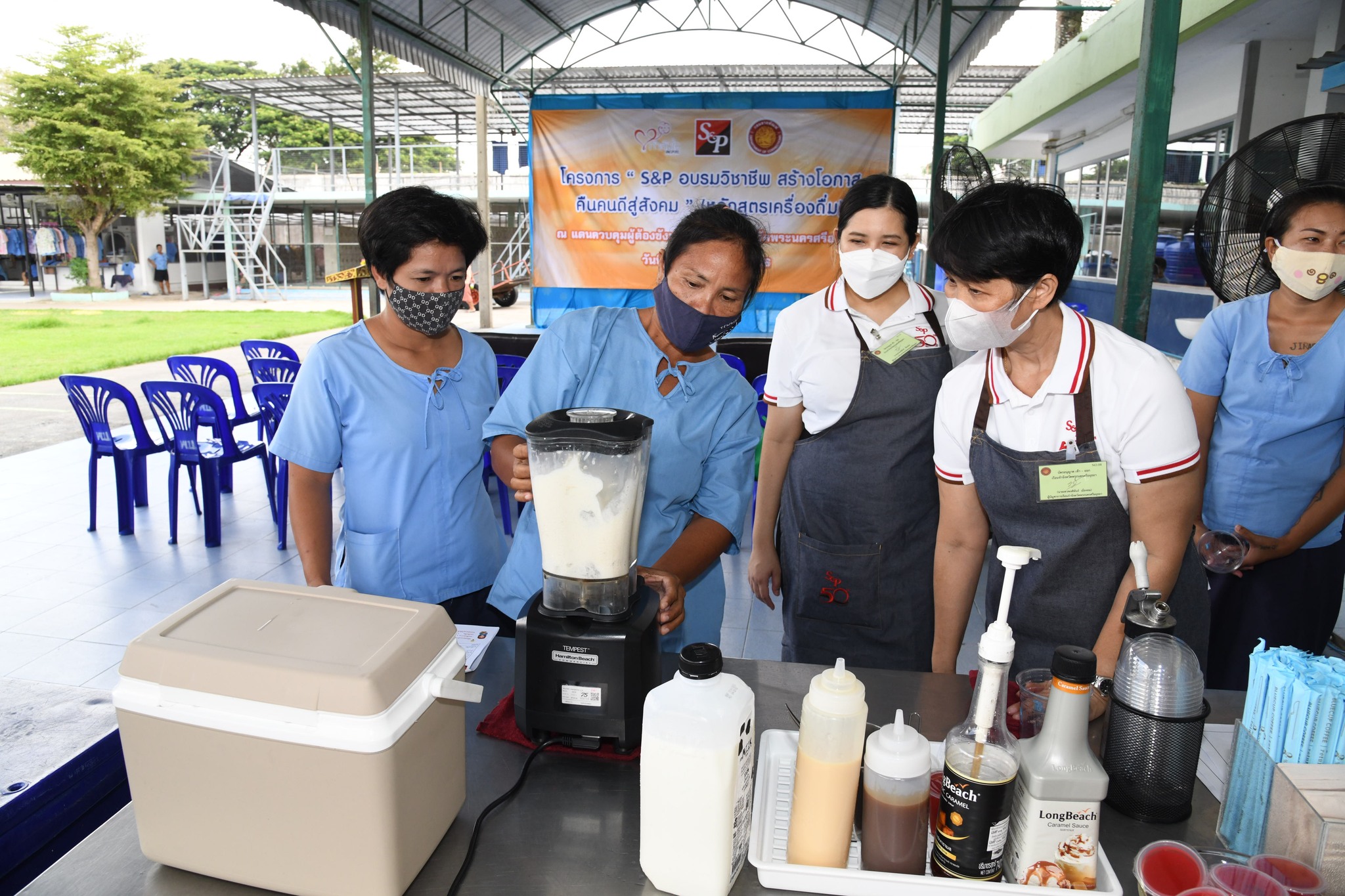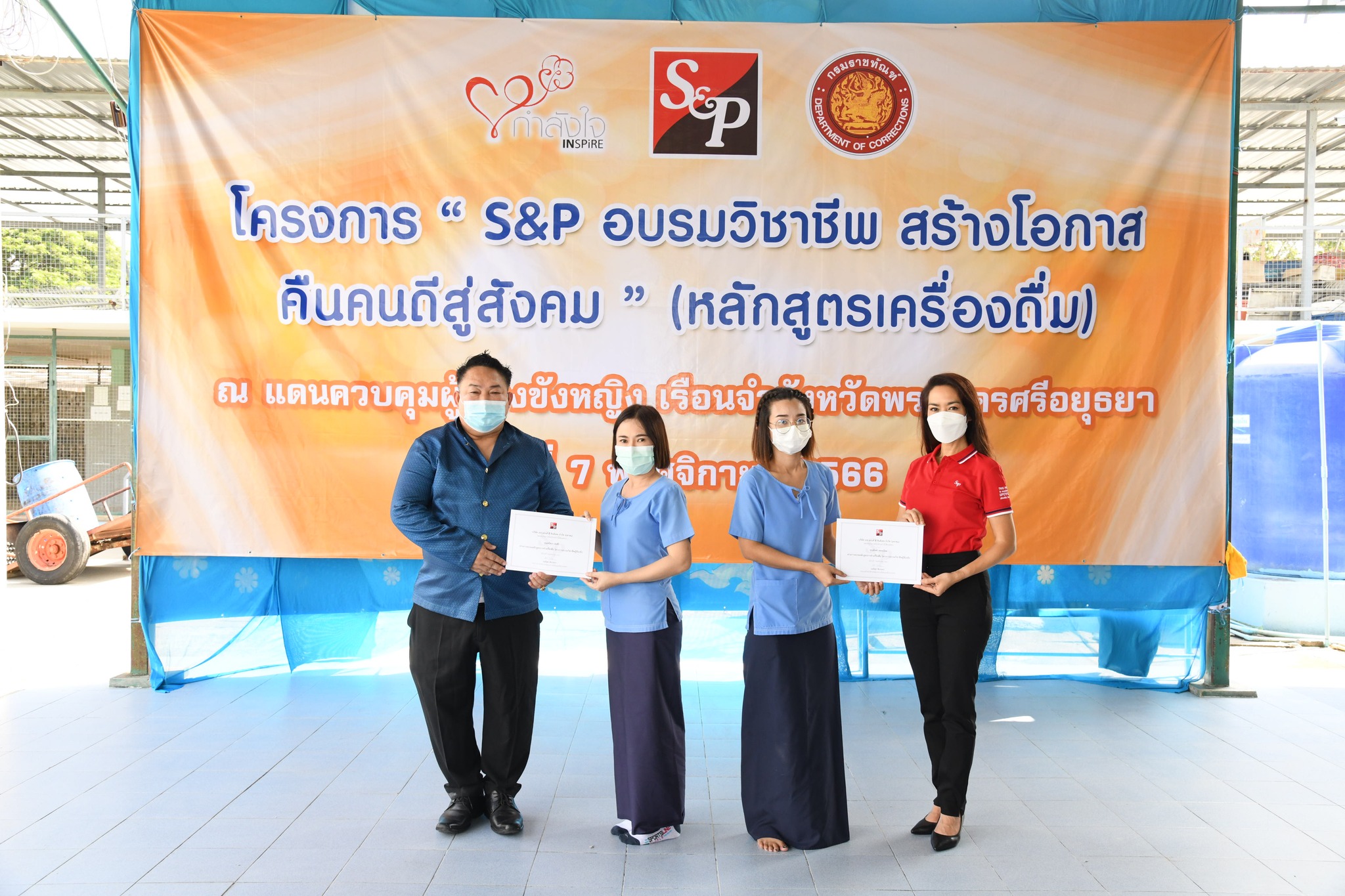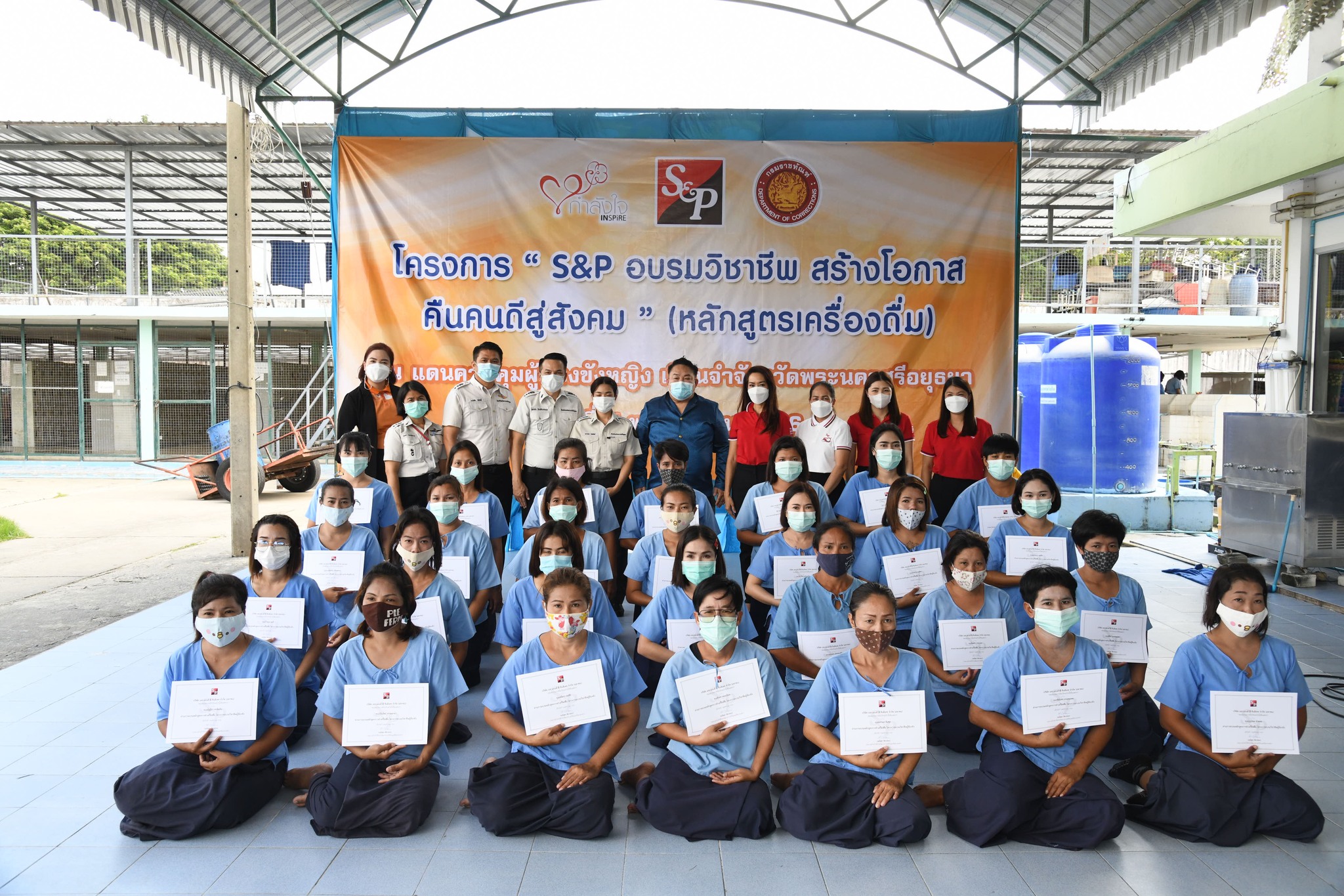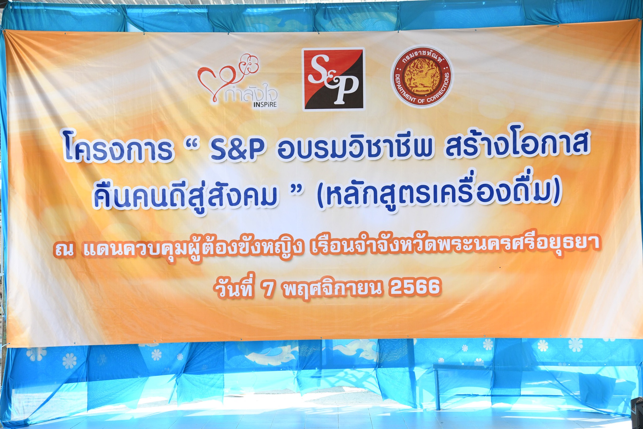 บริษัท เอส แอนด์ พี ซินดิเคท จำกัด (มหาชน) มาร่วมในพิธีเปิดโครงการฯ และมีนายเทวพงศ์พันธ์ เมืองยม ผู้บัญชาการเรือนจำจังหวัดพระนครศรีอยุธยา กล่าวต้อนรับ ซึ่งโครงการนี้ได้รับความกรุณาจากบริษัท เอส แอนด์ พี ซินดิเคท จำกัด (มหาชน) ที่ดำเนินธุรกิจด้านอาหาร เบเกอรี่ และเครื่องดื่มที่มีชื่อเสียงมาอย่างยาวนานกว่า 50 ปี มาช่วยฝึกอบรมการทำเครื่องดื่มให้แก่ผู้ต้องขังหญิงที่อยู่ในเรือนจำจังหวัดพระนครศรีอยุธยา จำนวน 30 คน เพื่อนำความรู้ที่ได้ไปประกอบอาชีพหลังพ้นโทษ โดยสอนการทำเมนูสตรอเบอรี่เจลลี่สมูทตี้ โอรีโอ้สมูทตี้ และทอฟฟี่นัทคอฟฟี่ฟรอสต์ ซึ่งวิทยากรได้สอนเทคนิคการเลือกซื้อวัตถุดิบ การตวงปริมาณและวิธีการปั่น รวมถึงการตกแต่งเครื่องดื่มให้สวยงาม โดยผู้เข้าอบรมได้เรียนรู้ในทุกขั้นตอน และได้ทดลองทำเครื่องดื่มทุกเมนู