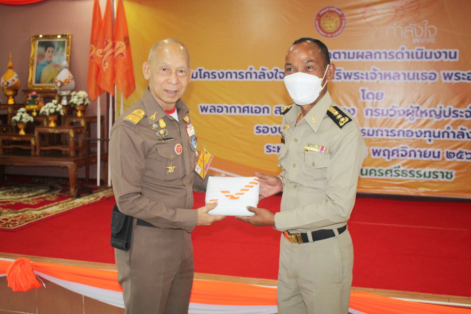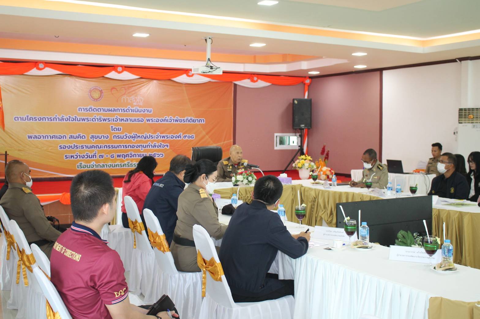 เมื่อวันที่ 7 - 8 พฤศจิกายน 2566 คณะกรรมการกองทุนกำลังใจฯ ติดตามผลการดำเนินงานตามโครงการกำลังใจฯ ณ เรือนจำกลางนครศรีธรรมราช นำโดยพลอากาศเอก สมคิด สุขบาง กรมวังผู้ใหญ่ประจำพระองค์ 908 และรองประธานคณะกรรมการกองทุนกำลังใจฯ พร้อมด้วยผู้บริหาร โดยสมเด็จพระเจ้าลูกเธอเจ้าฟ้าพัชรกิติยาภาฯ เสด็จเปิดโครงการกำลังใจฯ เมื่อวันที่ 30 พฤษภาคม 2553 เสด็จเยี่ยมและเปิดอาคารหลารวมใจเมื่อวันที่ 5 สิงหาคม 2562 และเสด็จอีกครั้งตามโครงการราชทัณฑ์ปันสุขฯ เมื่อวันที่ 2 กุมภาพันธ์ 2563 การฝึกวิชาชีพของผู้ต้องขังหญิง ได้แก่ จักสาน, ทำผ้ามัดย้อม, เสริมสวย, ถักโครเชต์, อาหารและเบเกอรี่ และศาสตร์พยากรณ์ การอบรมที่กองทุนกำลังใจฯ จัดให้เพิ่มเติม คือ การอบรมออนไลน์เรื่องเกี่ยวกับโซเชียล, กฎหมายเบื้องต้นและการอบรมการดูแลผู้สูงอายุ 18 ชั่วโมง และ 70 ชั่วโมง พลอากาศเอก สมคิด กล่าวเปิดประชุมว่า เรือนจำกลางนครศรีธรรมราช เป็นเรือนจำเป้าหมายในโครงการกำลังใจฯ โดยเห็นว่า ผู้ต้องขังหญิงควรได้รับการดูแลเรื่องอาชีพ สำนักงานพัฒนาสังคมและความมั่นคงของมนุษย์จังหวัดนครศรีธรรมราช กล่าวสนับสนุนการช่วยเหลือผู้ต้องขังเมื่อพ้นโทษแล้ว และยินดีสนับสนุนการดำเนินงานตามโครงการกำลังใจฯ จากนั้นพลอากาศเอกสมคิดฯ และคณะกรรมการฯ เยี่ยมชมภายในแดนหญิง พูดคุยกับผู้ต้องขังหญิงในฐานการฝึกอาชีพ เช่น เสริมสวย, ซักรีด, การสานตะกร้า, อาหารและขนมไทย, ผ้ามัดย้อม, ดูดวง (ไพ่ยิปซี) เยี่ยมชมมุมปลูกกฎหมายและมุมอาชีพที่เรือนจำนำมาแสดงให้ดูว่าได้ดำเนินการตามแนวทางของกองทุนกำลังใจฯ ชมการแสดง 2 ชุด คือ ดนตรีไทย ขับร้องประสานเสียงบ้านเกิดเมืองนอน และระบำบาติก และคนต้นแบบ จำนวน 3 คน ได้พูดให้กำลังใจกับผู้ต้องขัง ได้แก่ 1.นายเดชฯ ปัจจุบันเป็นเกษตรกรและได้รับทุนจากกรมราชทัณฑ์ จำนวน15,000 บาท และได้นำวิชาที่ได้อบรมจากเรือนจำไปต่อยอดในการทำอาชีพ และขอให้พวกเรามีจิตใจที่เข้มแข็ง เพราะมีหน่วยงานและเพื่อนๆ พร้อมให้โอกาส 2.น.ส.พรรณิษาฯ ประกอบอาชีพค้าขาย กล่าวว่า รู้สึกเสียดายเวลาที่จำคุกในเรือนจำเป็นเวลา 9 ปี แต่ไม่ได้เก็บเกี่ยวอาชีพต่างๆ ที่เรือนจำสอนให้ผู้ต้องขังมากเท่าที่ควร และขอบอกทุกคนว่าชีวิตภายนอกไม่ใช่เพียงการอาบน้ำ ทานข้าว ฝึกงาน แต่เป็นการต่อสู้ ดิ้นรน ดังนั้นสิ่งใดที่เรือนจำมีให้ฝึกอบรม ขอให้ทุกคนขวนขวายเพราะความรู้เป็นสิ่งที่ติดตัวเราไป 3.น.ส.ศุภนันท์ฯ ประกอบอาชีพรับจ้างทำงานในสถานประกอบการโดยทำหน้าที่เป็นผู้ประสานงาน กล่าวว่า เมื่อออกไปใช้ชีวิตภายนอก เราต้อง