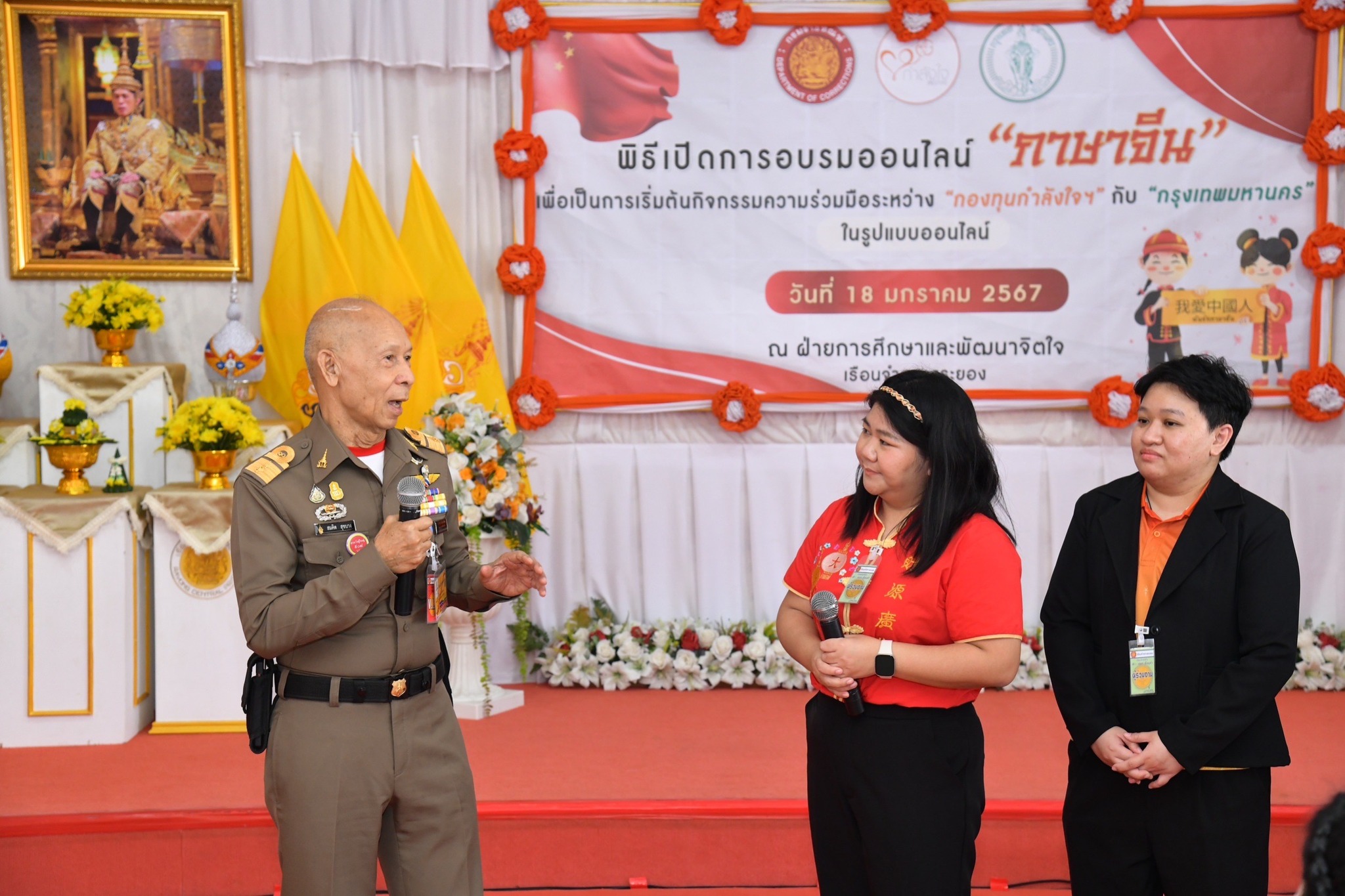 เมื่อวันที่ 17 มกราคม 2567 พลอากาศเอก สมคิด สุขบาง กรมวังผู้ใหญ่ประจำพระองค์ 908 และรองประธานกรรมการกองทุนกำลังใจในพระดำริฯ เป็นประธานในพิธีเปิดการอบรมผู้ต้องขังในหลักสูตรภาษาจีน โดยมี นางจิรภา สินธุนาวา รองปลัดกระทรวงยุติธรรม และรองประธานกรรมการกองทุนกำลังใจในพระดำริฯ นายกำจัด พ่วงสวัสดิ์ ที่ปรึกษาโครงการกำลังใจในพระดำริฯ นายเฉลิมพล โชตินุชิต รองปลัดกรุงเทพมหานคร พร้อมด้วยผู้บริหารจากสำนักพัฒนาสังคม กรุงเทพมหานคร คณะวิทยากรหลักสูตรภาษาจีน นางอาภรณ์ แก้วเวียงชัย ผู้อำนวยการกองพัฒนานวัตกรรมการยุติธรรม นายสมพงศ์ สนิทมัจโร ผู้บัญชาการเรือนจำกลางระยอง และผู้ต้องขังเข้าร่วมการอบรม 30 คน ณ แดนการศึกษาและพัฒนาจิตใจ เรือนจำกลางระยอง จากนั้นประธานในพิธี และผู้บัญชาการเรือนจำกลางระยอง ได้พาคณะศึกษาดูงานจากกรุงเทพมหานคร เยี่ยมชมแดนควบคุมความมั่นคงสูง (Supermax) ซึ่งเรือนจำกลางระยองมีผู้ต้องขังในแดนดังกล่าว จำนวน 139 คน มีการติดตามประเมินผลผู้ต้องขังในระยะ 3 เดือน และ 6 เดือน พบว่า ผู้ต้องขังที่เข้ามาอยู่ในแดน Supermax จะใช้เวลาประมาณ 6 เดือน ซึ่งมีพฤติกรรมที่พัฒนาไปในทางที่ดีขึ้น กองทุนกำลังใจฯ และกรุงเทพมหานคร เปิดโอกาสให้ผู้ต้องขังได้มีโอกาสเข้าถึงวิชาต่างๆ โดยจัดอบรมผ่านระบบออนไลน์ และในอนาคตจะจัดอบรมหลักสูตรภาษาญี่ปุ่น ภาษาอังกฤษ การออมเงิน โหราศาสตร์เลขพยากรณ์ ในรูปแบบออนไลน์ และมีแผนการจัดอบรมภาคปฏิบัติ เช่น การทำเบเกอรี่ การทำอาหาร การเสริมสวย เป็นต้น