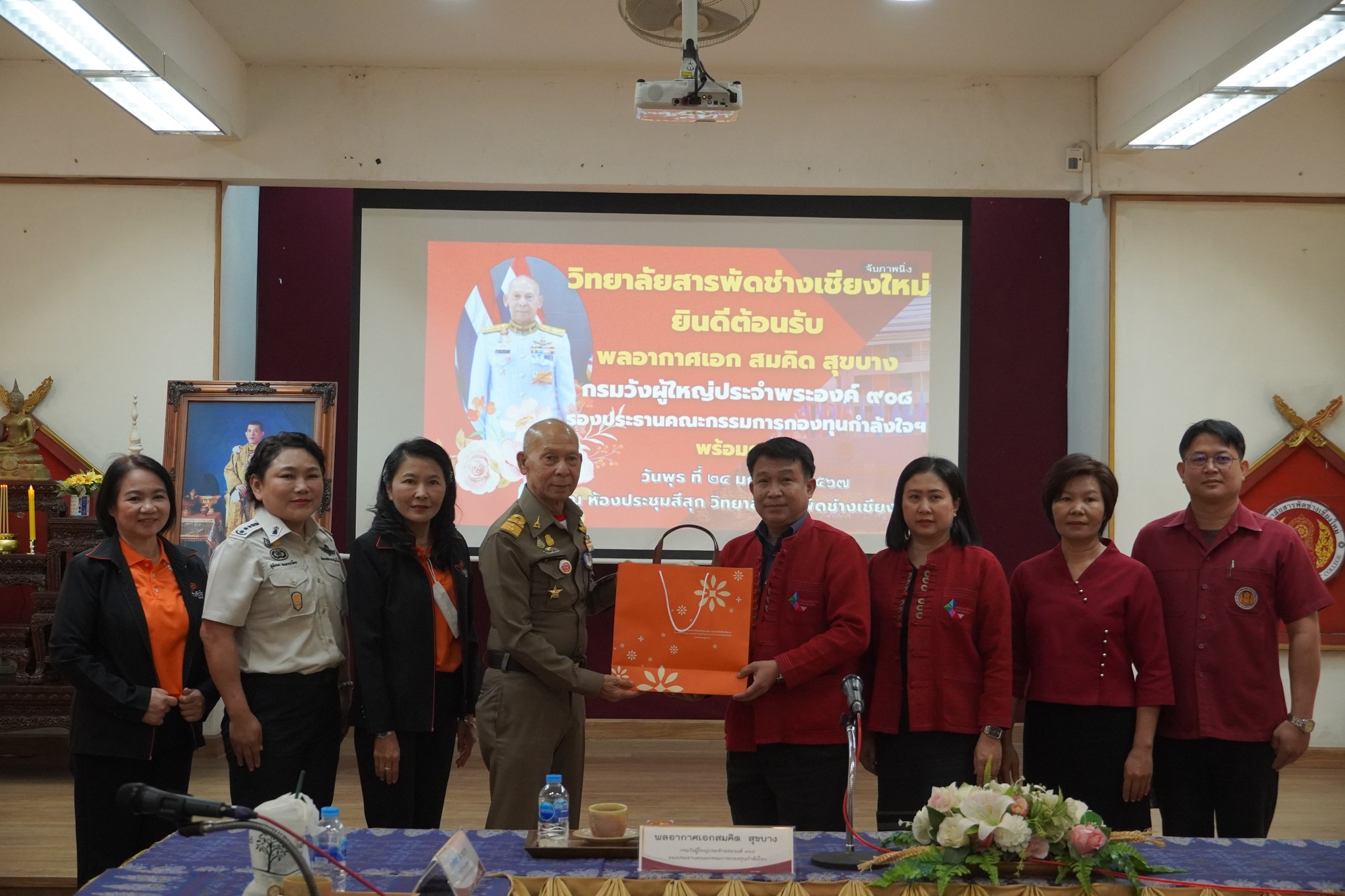 คณะกรรมการกองทุนกำลังใจฯ ติดตามการดำเนินงานโครงการกำลังใจฯ จังหวัดเชียงใหม่ เมื่อวันที่ 23 - 24 มกราคม 2567 นำโดย พลอากาศเอก สมคิด สุขบาง กรมวังผู้ใหญ่ประจำพระองค์ 908 และรองประธานคณะกรรมการกองทุนกำลังใจฯ นางจิรภา สินธุนาวา รองปลัดกระทรวงยุติธรรม ลงพื้นที่จังหวัดเชียงใหม่เพื่อติดตามการดำเนินงานตามโครงการกำลังใจในพระดำริพระเจ้าหลานเธอ พระองค์เจ้าพัชรกิติยาภา ณ ทัณฑสถานหญิงเชียงใหม่ ในการลงพื้นที่ครั้งนี้เป็นการติดตามการดำเนินงานจากที่มาประชุมกับเรือนจำ ในปี 2566 รวมทั้งจะเชิญหน่วยงานภาครัฐและเอกชนเยี่ยมชมการฝึกอาชีพในฐานต่างๆ และพูดคุยเพื่อให้ข้อมูลการเตรียมพร้อมก่อนพ้นโทษ นางสุนันทา คงพากเพียร ผู้อำนวยการทัณฑสถานหญิงเชียงใหม่ รายงานกิจกรรมที่กองทุนกำลังใจฯ จัดให้กับผู้ต้องขังในปี 2566 ได้แก่ การอบรมดูดวง (ไพ่ยิปซี) ขั้นพื้นฐานและขั้นสูง, การดูแลผู้สูงอายุ, การอบรมความรู้กฎหมาย โดยมีสำนักยุติธรรมจังหวัดและสำนักงานคุมประพฤติจังหวัดเชียงใหม่มาให้ความรู้, การทำกระเป๋าผ้าและบรรจุภัณฑ์, การนวดแผนไทย ซึ่งได้เชิญคนต้นแบบและร้านลีลานวดไท มาเป็นวิทยากร ได้ทุนประกอบอาชีพ จำนวน 20,000 บาท ซึ่งในปี 2566 มีผู้ต้องขัง ได้รับทุน จำนวน 5 ราย มีจำนวนสถานประกอบการที่รับผู้พ้นโทษเข้าทำงานมี จำนวน 5 แห่ง (ปี 65) โดยจะเห็นว่ามีสถานประกอบการเพิ่มขึ้น รวมทั้งมีความร่วมมือที่เป็นทางการมากขึ้น โดยการทำ MOU กับภาคเอกชน จำนวน 5 แห่ง และคนต้นแบบที่เปิดเผยตนเอง ในปี 2566 จำนวน 24 ราย และในปี 2567 มีเพิ่ม 6 ราย (รวม 30 ราย) จากนั้นเยี่ยมชมและชมการแสดงของผู้ต้องขังหญิงภายในแดนหญิง ได้แก่ ห้องแม่และเด็ก, การทอผ้า, การตัดเย็บเสื้อผ้า, การปักผ้า, ผลิตภัณฑ์ที่ทำจากผ้า เช่น กระเป๋า, ย่าม ซึ่งผลิตภัณฑ์ 12 ชนิด ได้นำมาจำหน่ายภายใต้แบรนด์ Inspire พลอากาศเอกสมคิดฯ กล่าวถึง ความต้องการในการอบรมของผู้ต้องขังหญิง เช่น เรื่องของภาษาเช่น ภาษาอังกฤษ ภาษาจีน ภาษาเกาหลี ซึ่งปัจจุบัน ผู้ต้องขังอบรมออนไลน์กับวิทยากรจากกรุงเทพมหานคร แต่มีข้อจำกัดในการเรียน ดังนั้นหากมหาวิทยาลัยราชภัฏเชียงใหม่ เข้ามาสอนเพิ่มเติมอาจทำให้ ผู้ต้องขังมีความรู้ที่ดีขึ้น สื่อสารในภาษาต่างๆ ได้ดีกว่าเรียนออนไลน์อย่างเดียว โดยหากมีการจัดการอบรมต่อเนื่องควรให้เป็นผู้ต้องขังกลุ่มเดิมเพื่อการต่อยอด และไม่เป็นการไปเริ่มนับหนึ่งใหม่ นายวรวิทย์ ชัยสวัสดิ์ รองผู้ว่าราชการจังหวัดเชียงใหม่ กล่าวว่า จังหวัดจะเป็นหน่วยงานกลางในการดึงสถาบันการศึกษา เช่น มหาวิทยาลัยราชภัฏเชียงใหม่, มหา