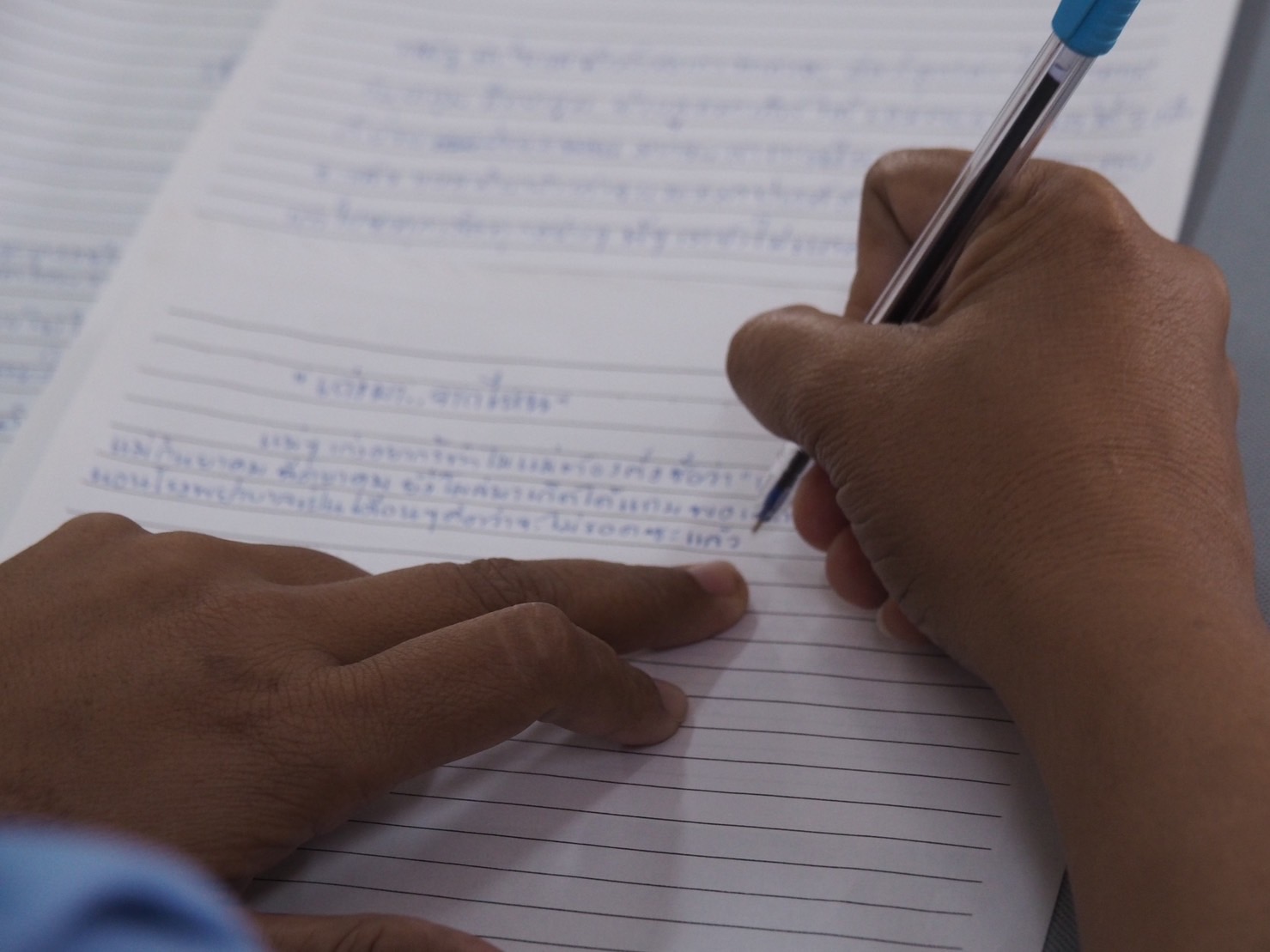 ผู้เรียนได้เริ่มต้นฝึกการเขียนด้วยการเล่าเรื่อง กำหนดเรื่องที่จะเล่า และฝึกการเขียนโดยนำหลักคิดดังกล่าวมาใช้ หลักการเขียนเรียงความ 3 ส่วน ได้แก่ คำนำ เนื้อหา และบทสรุป เมื่อผู้เรียนได้เขียนผลงานของตนแล้ววิทยากรได้อ่านงานเขียน ให้คำแนะนำ และข้อเสนอแนะ พร้อมทั้งได้ฝึกการปรับแก้ผลงานตามหลัก 5 ต (1. ติ 2. ตัด 3. เติม 4. แต่ง และ 5. ตรวจ) ซึ่งผู้เรียนจะต้องส่งผลงานที่สมบูรณ์แล้วให้โครงการกำลังใจฯ ต่อไป