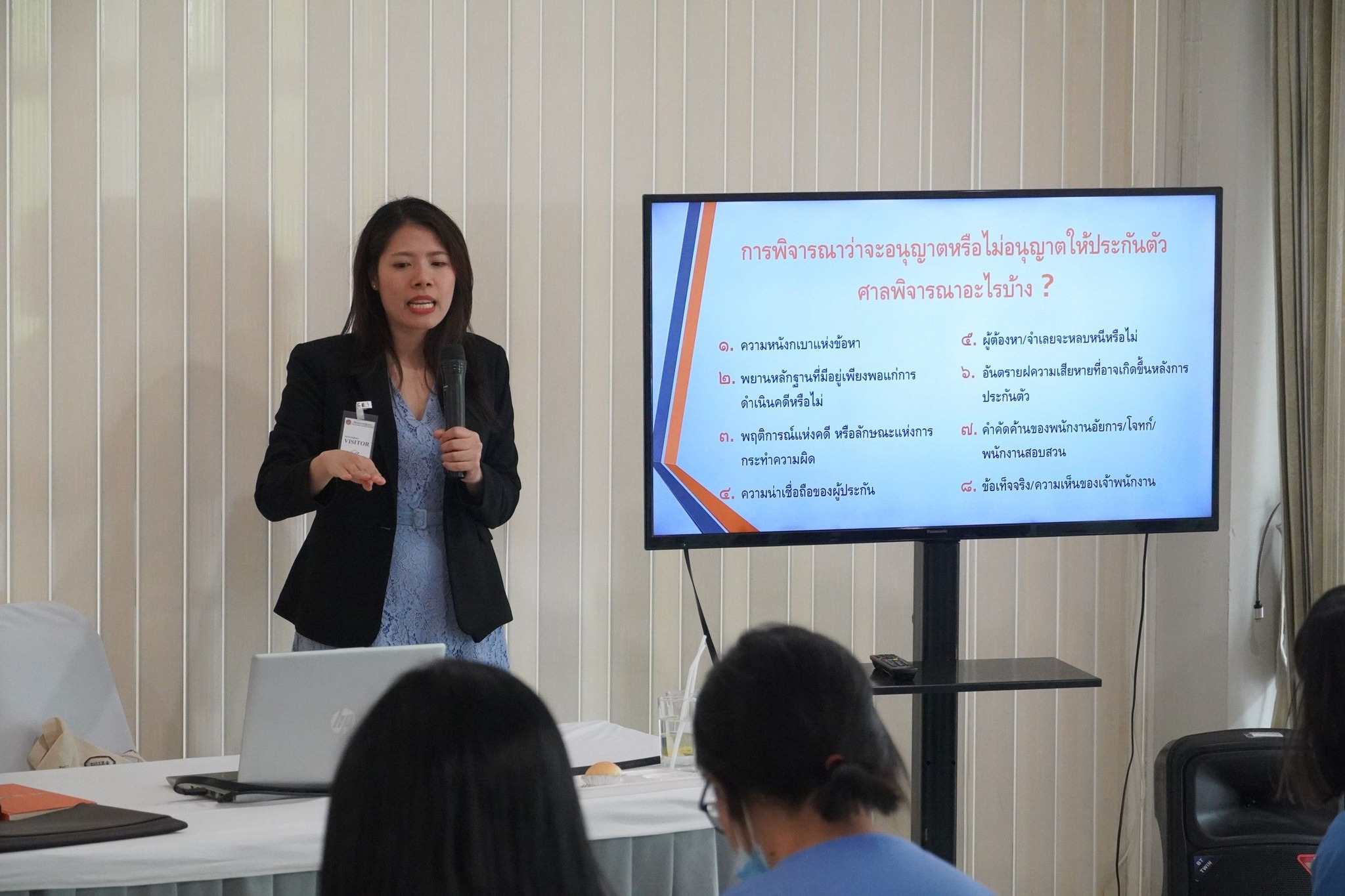 ในการอบรมครั้งนี้ วิทยากรได้ให้ความรู้เรื่องการปล่อยชั่วคราว โดยเจ้าพนักงานหรือศาลพิจารณาอนุญาตปล่อยตัว 3 ประเภท ได้แก่ 1.การปล่อยชั่วคราวโดยไม่มีประกัน 2.การปล่อยชั่วคราวโดยมีประกัน 3.การปล่อยชั่วคราวโดยมีประกันและหลักประกัน,ผู้มีสิทธิยื่นคำร้องขอปล่อยชั่วคราวผู้ถูกกล่าวหาหรือจำเลย, การกำหนดวงเงินประกัน, หลักทรัพย์ที่อาจใช้เป็นหลักประกัน ทั้งนี้ วิทยากรได้ยกตัวอย่าง เมื่อผู้ต้องหาต้องขังตามหมายศาล ระหว่างที่สอบสวนไม่เสร็จสิ้น ผู้ต้องหามีสิทธิยื่นคำร้องขอปล่อยชั่วคราวต่อศาลชั้นต้นนั้นได้ นอกจากนี้ วิทยากรได้บรรยายเรื่องเกณฑ์การพิจารณาว่าจะอนุญาตหรือไม่อนุญาตให้ประกันตัว และเหตุผลที่ศาลจะไม่อนุญาตให้ประกันตัว มาตรา 108 - 108/1 ตามป.วิ.อาญา ผู้เข้าอบรมได้ให้ความสนใจและให้ความร่วมมือเป็นอย่างดี