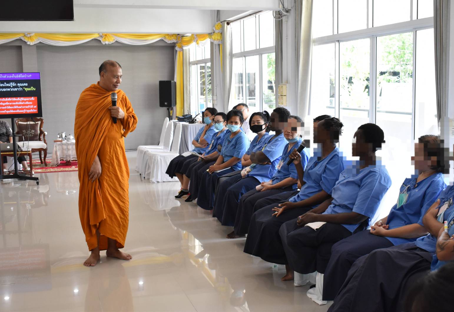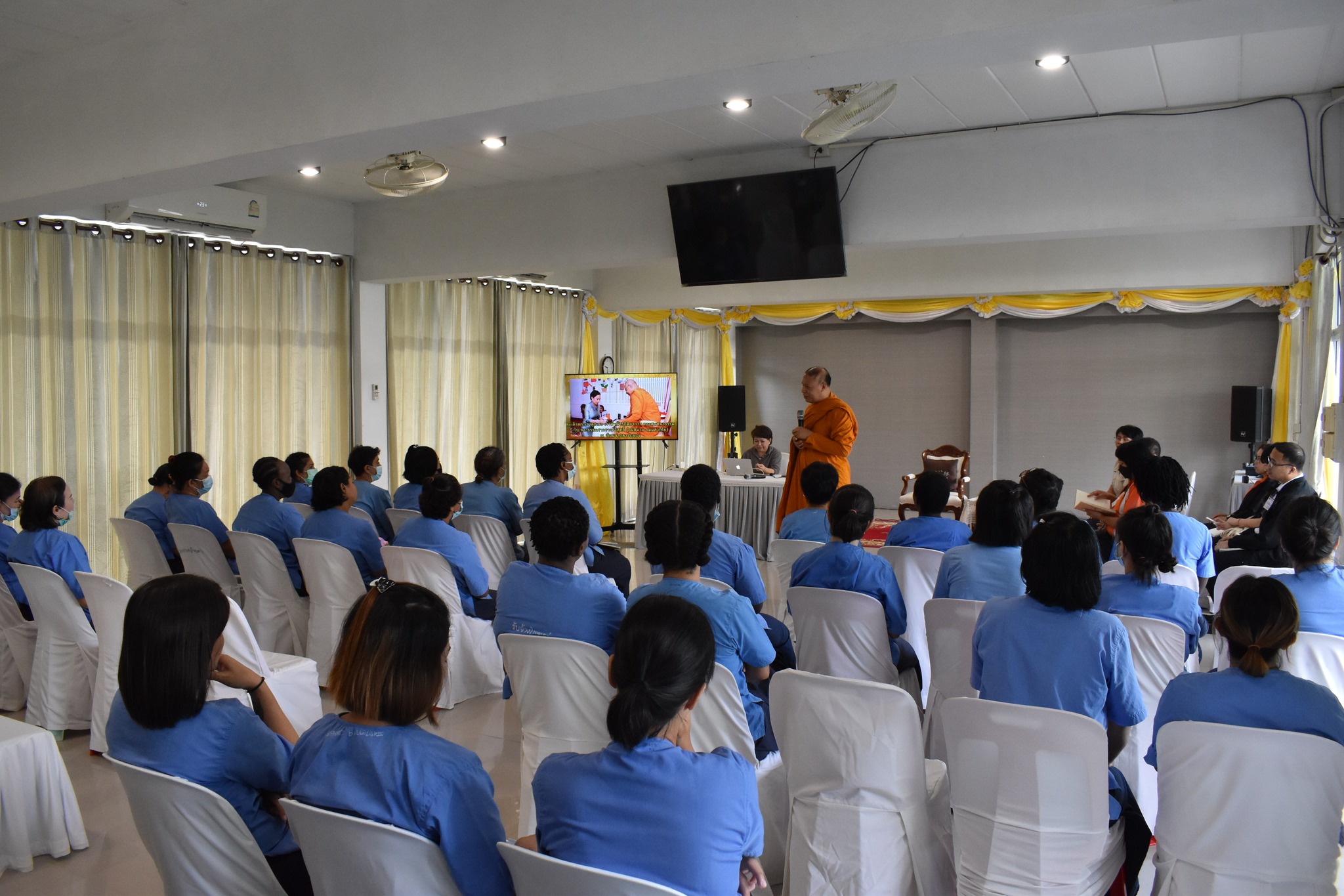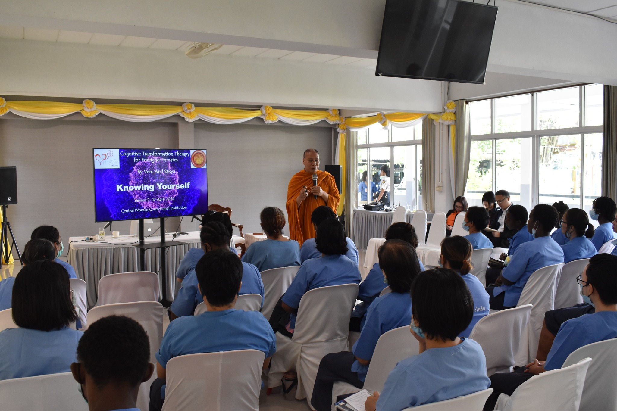 เมื่อวันที่ 17 เมษายน 2567 เวลา 09.00 - 14.30 น. พระธรรมศากยวงศ์วิสุทธิ์ (อนิลมาน ธมฺมสากิโย) ผู้ช่วยเจ้าอาวาสวัดบวรนิเวศวิหาร เป็นพระวิทยากรในโครงการปัญญาบำบัดเพื่อพัฒนาคุณภาพชีวิตผู้ต้องขัง แก่ผู้ต้องขังต่างชาติที่มารับโทษจำคุกในทัณฑสถานหญิงกลาง โดยกิจกรรมในวันนี้มีผู้ต้องขังเข้าร่วมจำนวน 41 ราย ณ ห้องประชุม 1 อาคารโรงเรียน ทัณฑสถานหญิงกลาง กรุงเทพมหานคร