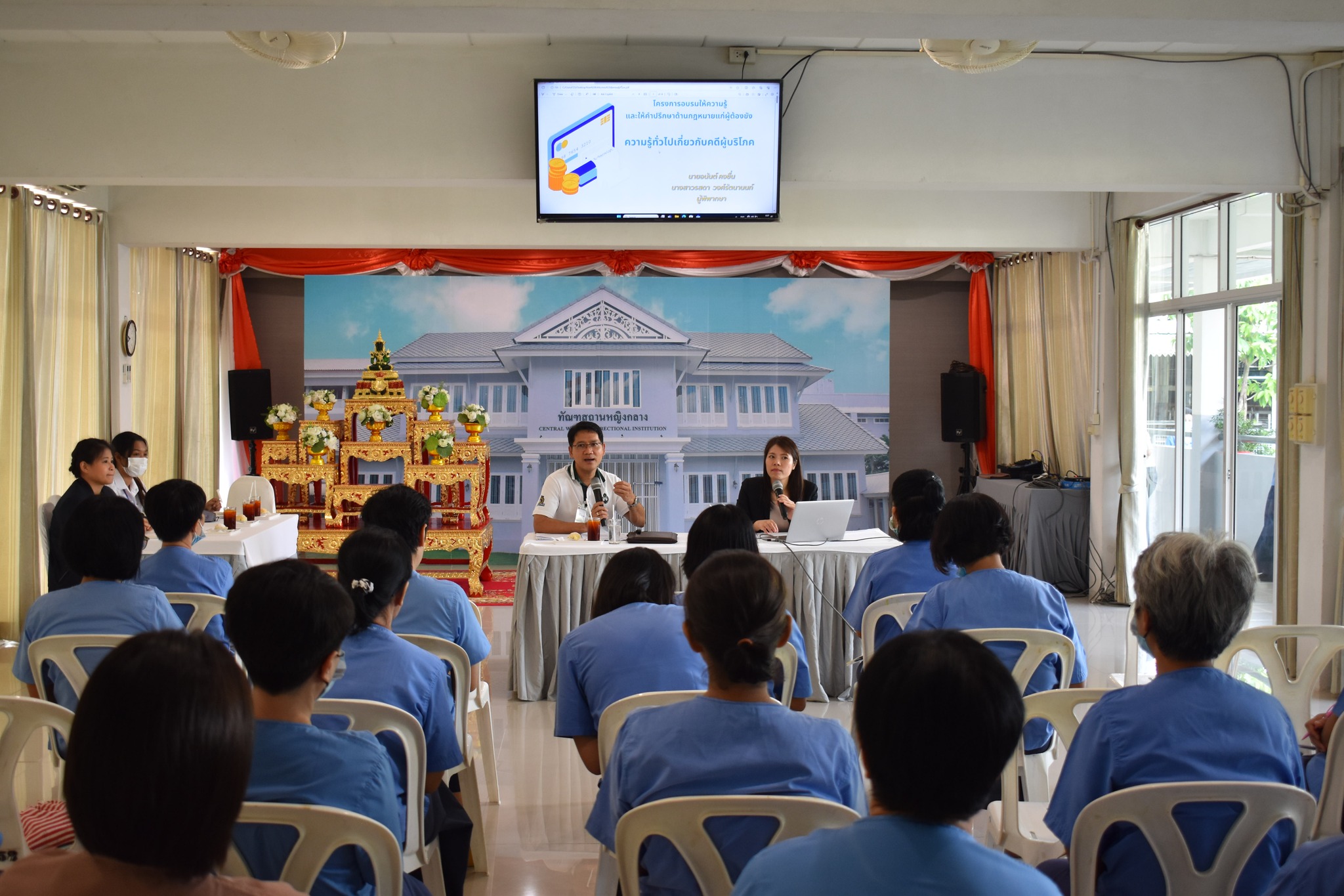 กองพัฒนานวัตกรรมการยุติธรรมดำเนินการจัดโครงการอบรมให้ความรู้และให้คำปรึกษาด้านกฎหมายแก่ผู้ต้องขัง ในวันที่ 15 พฤษภาคม 2567 ณ ทัณฑสถานหญิงกลาง โดยมีนางสาวรสดา วงศ์รัตนานนท์ ผู้พิพากษาศาลชั้นต้นประจำกองผู้ช่วยผู้พิพากษาศาลอุทธรณ์ และนายอนันต์ คงชื่น ผู้ช่วยผู้พิพากษาศาลอุทธรณ์ ทำหน้าที่ในตำแหน่งเลขานุการแผนกคดียาเสพติดในศาลอุทธรณ์ เป็นวิทยากร มีผู้ต้องขังที่เข้าร่วมกิจกรรม จำนวน 18 คน เป็นผู้ต้องขังที่อยู่ระหว่างพิจารณาคดี ผู้ต้องขังใกล้พ้นโทษ และผู้ต้องขังผู้ช่วยงานที่ตั้งโต๊ะปรึกษาคดีภายในเรือนจำ