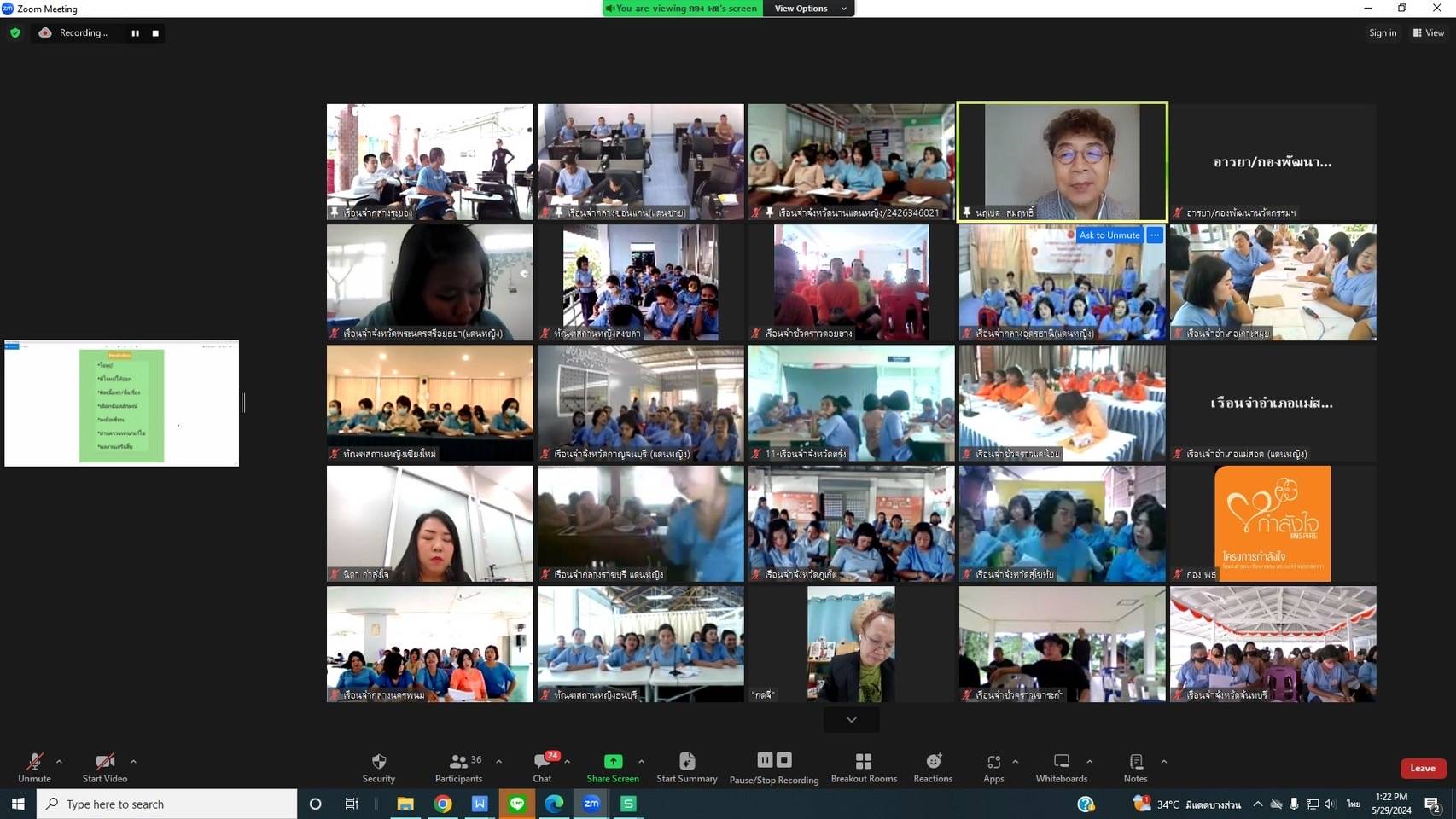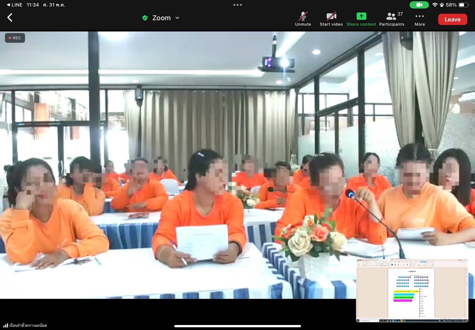 การจัดโครงการอบรม "เรียงถ้อยเป็นร้อยกรอง เพื่อพัฒนาคุณภาพชีวิตผู้ต้องขัง ในรูปแบบออนไลน์" ซึ่งจัดขึ้นระหว่างวันที่ 27 - 31 พฤษภาคม 2567 โดยได้รับเกียรติจากวิทยากร 2 ท่าน ได้แก่ อ.กุดจี่ นายพรชัย แสนยะมูล และ อ.เบศ นายนฤเบศ สมฤทธิ์ วัตถุประสงค์ของการจัดอบรมเพื่อให้ผู้เข้าร่วมการอบรมได้ฝึกการถ่ายทอดความคิด ความรู้สึกในรูปแบบร้อยกรอง ส่งเสริมให้เป็นคนรักการเขียน การอ่าน และลดความเครียดจากการอยู่ภายในเรือนจำ ซึ่งเนื้อหาการอบรมวิทยากรได้มีการอธิบายความหมายของกลอนประเภทต่างๆสร้างความเข้าใจด้วยแผนผังคำสัมผัส ยกตัวอย่างบทกลอนจากนั้นได้มีการฝึกปฏิบัติให้ผู้เข้าร่วมโครงการได้ลองเขียนกลอนทั้งแบบจำกัดหัวข้อ และไม่จำกัด พร้อมทั้งให้นำเสนอเพื่อให้วิทยากรชี้แนะติชม การเขียนบทกวีและร้อยกรองประเภทต่างๆ ได้แก่ แคนโต้ กลอนเปล่าอิสระ กลอนหัวเดียว กลอนสี่ กาพย์ยานี 11 กลอนสุภาพ หรือกลอนแปด ระยะเวลาการอบรมรวมทั้งสิ้น 5 วัน โดยจัดขึ้นระหว่างวันที่ 27 - 31 พฤษภาคม 2567 ทั้งนี้ ผู้เข้าร่วมการอบรมให้ความสนใจและชื่นชอบเป็นอย่างมาก และขอให้จัดการอบรมอีก เนื่องจากได้รับความรู้ ได้ใช้ความคิดสร้างสรรค์ และได้พบปะเพื่อนต่างเรือนจำ ได้แลกเปลี่ยนความคิดเห็นกันระหว่างเรือนจำ นอกจากนี้ยังได้แต่งกลอนขอบคุณวิทยากรและโครงการกำลังใจฯ อีกด้วย