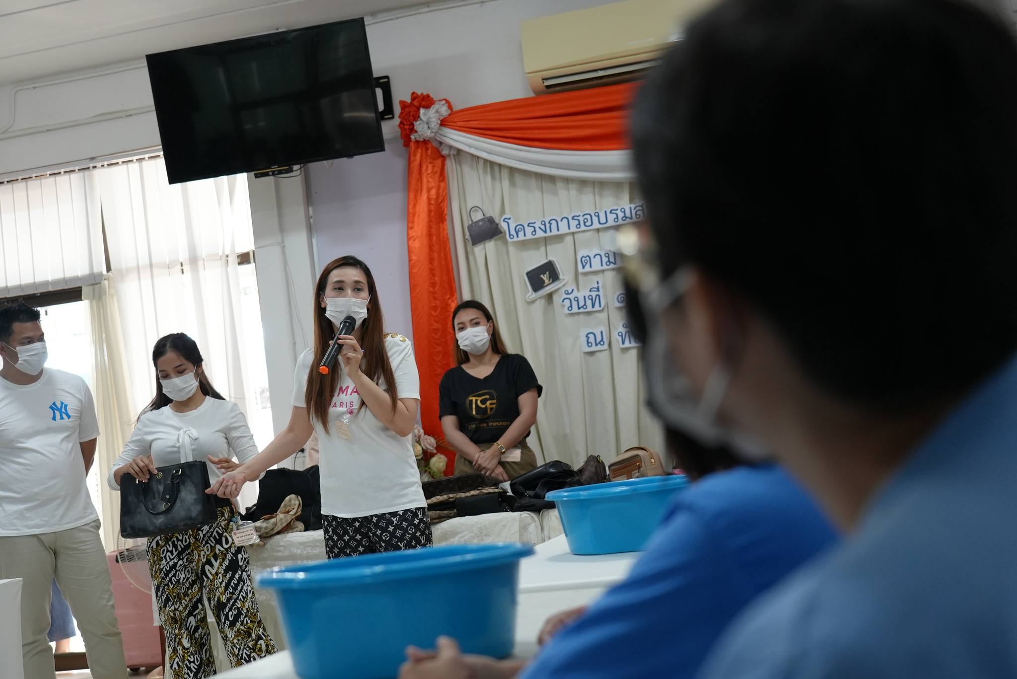 โรงเรียนเดอะแคทช์เฟคแบรนด์เนม เปิดหลักสูตรสปากระเป๋าและสอนดูกระเป๋าแบรนด์เนมแท้-ปลอม ให้แก่ประชาชนผู้สนใจทั่วไป และรับเป็นที่ปรึกษาให้แก่หน่วยงานภาครัฐในการตรวจสอบกระเป๋าแบรนด์เนมแท้-ปลอม ตั้งแต่ปี พ.ศ. 2561 โดยมีครูที่มีความเชี่ยวชาญด้านกระเป๋าแบรนด์เนมมากกว่า 10 ปี จึงได้เชิญชวนลูกศิษย์ร่วมมาเป็นวิทยากรในครั้งนี้อีกหลายท่าน เพื่อให้การฝึกปฏิบัติในครั้งนี้ของผู้ต้องขังได้รับคำแนะนำอย่างใกล้ชิด เนื้อหาการอบรม เริ่มต้นด้วยการแนะนำให้รู้จักประเภทของวัสดุที่ใช้ทำกระเป๋า เช่น ผ้า แคนวาส หนังวัว และอุปกรณ์ทำความสะอาดกระเป๋าชนิดต่างๆ เช่น น้ำยาซัก ครีมลบรอย ยางลบปากกา จากนั้นเป็นการอบรมเรื่องความต้องการของตลาดธุรกิจสปากระเป๋าแบรนด์เนม วิธีคิดอัตราค่าบริการ และลงมือฝึกปฏิบัติทำความสะอาดกระเป๋าประเภทงานซัก การลบรอยปากกาบนกระเป๋าด้วยยางลบปากกา Ink cleaner บนกระเป๋า Longchamp วิธีการทำความสะอาดกระเป๋าประเภทแคนวาส เช่น LV โดยใช้ครีมลบรอย Delicate Gel การกำจัดเชื้อราบนกระเป๋า การบำรุงรักษากระเป๋าหนังวัวด้วย Whale Wax การขัดอะไหล่ทองเหลือง การพ่นเคลือบกันน้ำให้กระเป๋า การทำยาแนวแบบไม่นูน ช่วงท้าย มีการจำลองสถานการณ์บทสนทนาในการให้บริการลูกค้า และการประเมินการอบรมโดยทดสอบความรู้รายกลุ่ม (3 คน) เกี่ยวกับอุปกรณ์และวิธีการทำความสะอาดแล้วจึงมอบเกียรติบัตรให้แก่ผู้เข้าร่วมการอบรมทั้ง 27 คน และถ่ายภาพหมู่ร่วมกัน ผู้ต้องขัง 3 คน ที่กำลังจะพ้นโทษใน 4 เดือนบอกว่าตนเองสามารถจดจำวัสดุอุปกรณ์และวิธีการได้อย่างแม่นยำ