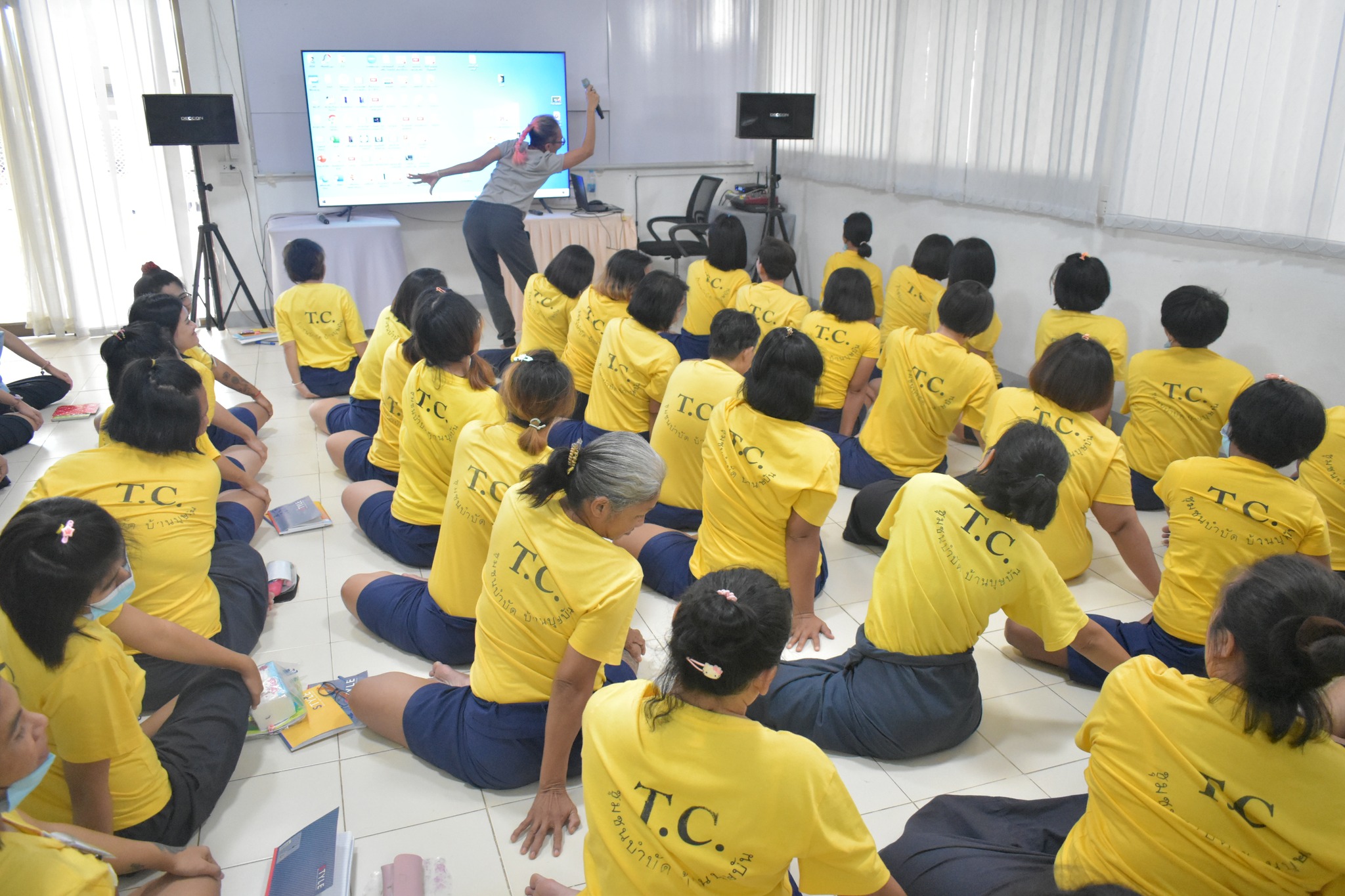 เมื่อวันที่ 11 กรกฎาคม 2567 กองพัฒนานวัตกรรมการยุติธรรม ได้จัดโครงการฝึกอบรม โยคะ พัฒนากาย พัฒนาจิต พัฒนาคุณภาพชีวิตผู้ต้องขัง ณ ทัณฑสถานหญิงธนบุรี โดยมีนางสาวศิริวรรณ โสภารัตน์ เป็นวิทยากรให้ความรู้แก่ผู้ต้องขัง เข้าอบรม จำนวน 50 คน เพื่อช่วยเหลือและพัฒนาคุณภาพชีวิตผู้ต้องขังในรูปแบบต่างๆ ให้ความรู้ด้านโครงสร้างร่างกายและอวัยวะภายในร่างกาย เพื่อให้ผู้ต้องขังได้เข้าใจถึงประโยชน์ที่จะได้รับทางด้านร่างกายหลังจากการฝึกโยคะ ฝึกให้เกิดสมาธิ มีสติสัมปชัญญะ ฝึกด้านการปรับสมดุลของร่างกายขั้นพื้นฐานให้กับผู้ต้องขัง ความรู้เกี่ยวกับระบบการทำงานภายในร่างกาย รวมถึงการพัฒนาบุคลิกภาพที่ดี เป็นต้น