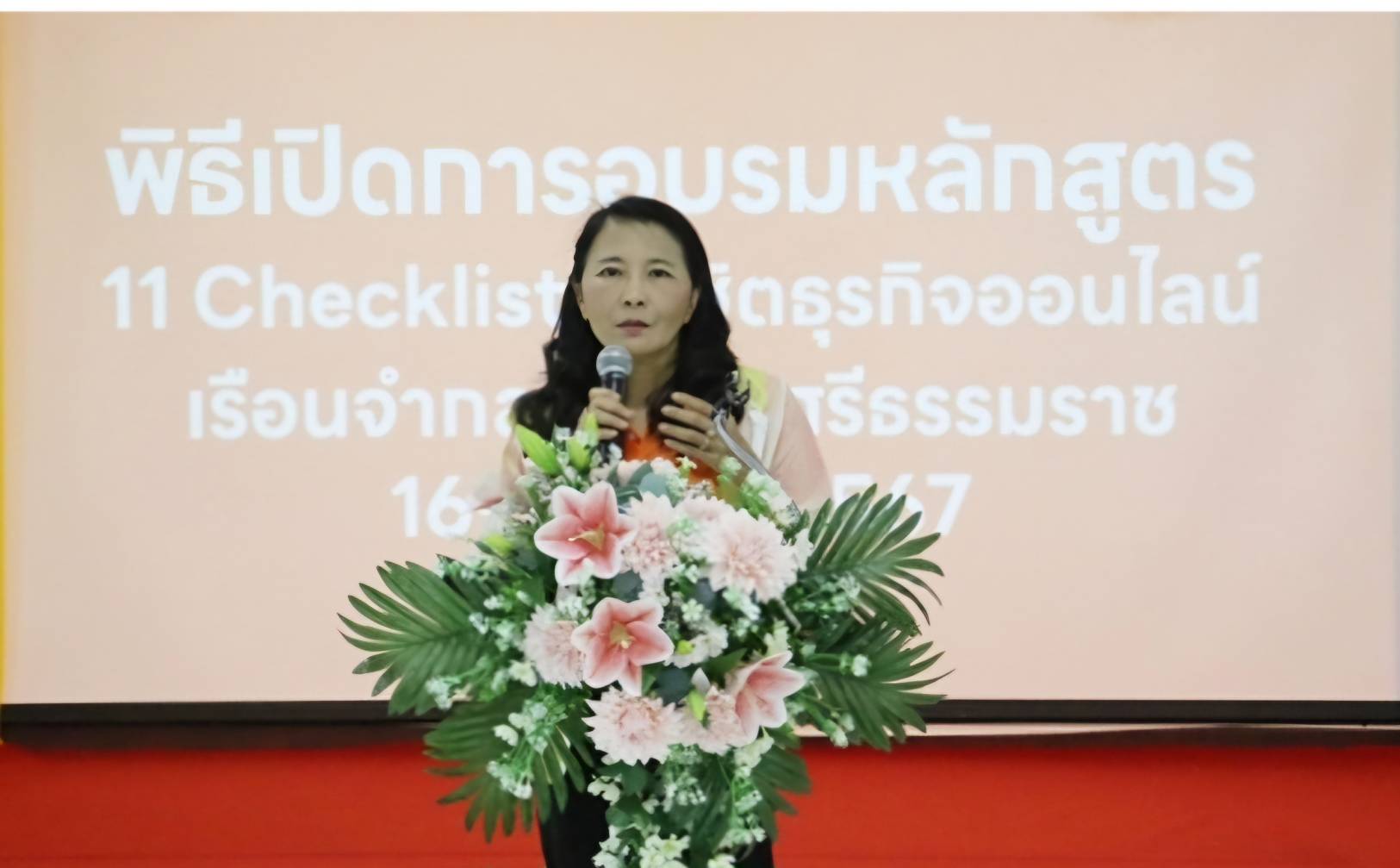 วิทยากรได้ให้ความรู้เรื่องการเริ่มต้นขายสินค้าสินค้าออนไลน์ การวางแผนและการตรียมตัวก่อนขายสินค้าออนไลน์ เทคนิคการขายสินค้าออนไลน์ การขายสินค้าออนไลน์ทาง Social Commerce ที่สามารถซื้อขายสินค้าผ่านแพลตฟอร์ม Facebook, Instagram, Tiktok หรือ Line OA เป็นต้น การสร้างสื่อโฆษณา (Content) ให้น่าสนใจ การจัดส่งสินค้าและช่องทางการชำระเงิน รวมถึงการจดทะเบียนพาณิชย์อิเล็กทรอนิกส์ (DBD Registered) การโพสต์ขายของออนไลน์ที่สามารถทำได้และไม่ผิดกฎหมาย โดยมีหลักสูตร 11 Checklists พิชิตธุรกิจออนไลน์ นอกจากนี้ นายปริญญา สุวรรณชินกุล เจ้าหน้าที่บริหารอาวุโส ให้ความรู้ด้านกฎหมายธุรกรรมทางอิเล็กทรอนิกส์ การเสียภาษีเงินได้ การจดทะเบียนพาณิชย์และกฎหมายที่เกี่ยวข้องกับตัวสินค้าและการโฆษณา รวมถึงสินค้าต้องห้ามจำหน่ายทางออนไลน์ ภายหลังเสร็จสิ้นการอบรม มีการทดสอบ 2 ชุด โดยชุดแรกเป็นแบบทดสอบของสำนักงานพัฒนาธุรกรรมทางอิเล็กทรอนิกส์ (ETDA) จำนวน 20 ข้อ ผู้ต้องขังสอบผ่านเกณฑ์ทุกคนและได้คะแนนสูงสุด 19 คะแนน จำนวน 1 คน คะแนนเฉลี่ยรวมได้ 16 คะแนน และแบบทดสอบชุดสองเป็นแบบทดสอบของกรมพัฒนาฝีมือแรงงาน จำนวน 55 ข้อ ซึ่งต้องส่งตรวจคำตอบและจะประกาศผลภายใน 10 วัน เมื่อผู้อบรมสอบผ่านร้อยละ 70 จะได้ใบประกาศจากกรมพัฒนาฝีมือแรงงาน กระทรวงแรงงาน