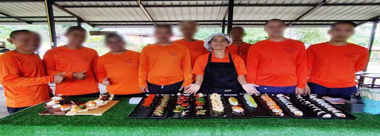 จัดโครงการฝึกวิชาชีพจากพี่สู่น้อง หัวข้อฝึกวิช าชีพการการทำซูชิ ณ เรือนจำชั่วคราวเขาระกำ จังหวัดตราด