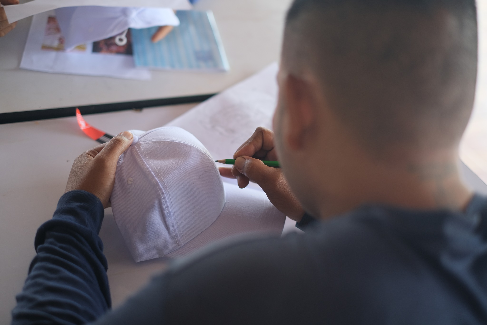 ในครั้งนี้วิทยากรได้เตรียมชิ้นงานเป็นหมวกให้ผู้เข้าร่วมโครงการได้ออกแบบลวดลายงานศิลปะลงบนกระเป๋าผ้าและลงสี สอนวิธีการเคลือบภาพชิ้นงาน