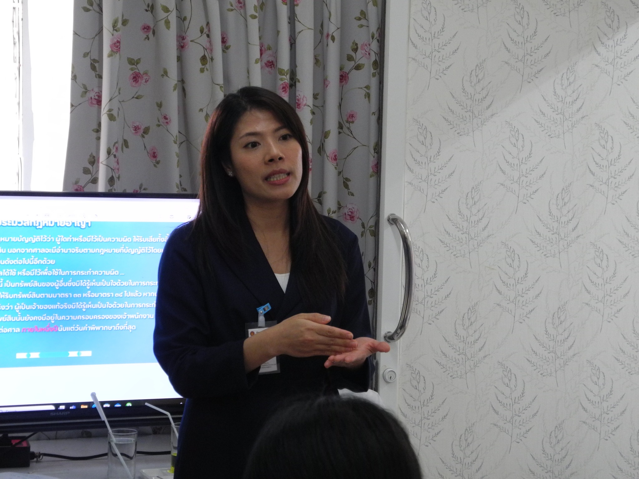 ในการอบรมครั้งนี้ วิทยากรได้ให้ความรู้เรื่องการริบทรัพย์ในคดียาเสพติด กฎหมายฉบับนี้มีวัตถุประสงค์เพื่อปราบปรามนายทุน หรือตัวการสำคัญที่อยู่เบื้องหลังการลักลอบค้ายาเสพติด โดยแบ่งเป็น 2 ส่วน ได้แก่ 1) ประมวลกฎหมายยาเสพติด มาตรการริบทรัพย์ที่เกี่ยวเนื่องกับการกระทำความผิดร้ายแรงเกี่ยวกับยาเสพติด 2) ประมวลกฎหมายอาญา การริบทรัพย์สินที่มีไว้เป็นความผิด หรือได้ใช้ในการกระทำความผิด มีกฎหมายโต้แย้งให้ศาลไม่ริบทรัพย์ ไม่ว่าจะเป็นได้มาจากการถูกสลากกินแบ่งรัฐบาลรางวัลที่ 1 ได้มาจากเงินเดือน ศาลจะไต่สวนที่มาที่ไปของสิ่งของที่จะริบทรัพย์ ทรัพย์สินที่มีไว้เหมาะสมกับฐานะ ทรัพย์สินที่ริบได้หรือไม่ได้ รวมทั้งยกตัวอย่างทรัพย์ที่ถูกริบจะถูกขายทอดตลาด สิ่งแรกที่ต้องริบคือ ทรัพย์สินที่ทำหรือมีไว้เป็นความผิด เช่น ยาเสพติด ปืนเถื่อนที่ไม่มีใบอนุญาต ธนบัตรปลอม เป็นต้น ผู้เข้าอบรมได้ให้ความสนใจและให้ความร่วมมือเป็นอย่างดี ผู้เข้าอบรมสอบถามเรื่องทรัพย์สินที่ติดการเช่าซื้อจะถูกริบทรัพย์หรือไม่ และทรัพย์สินที่ถูกริบทรัพย์ไปจะถูกขายทอดตลาดที่ไหน
