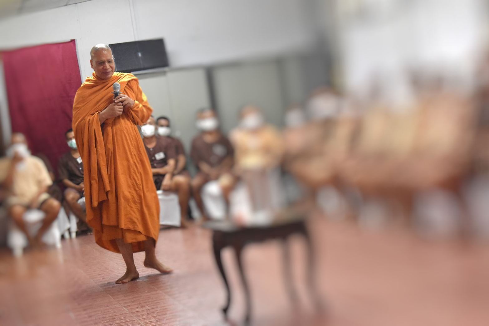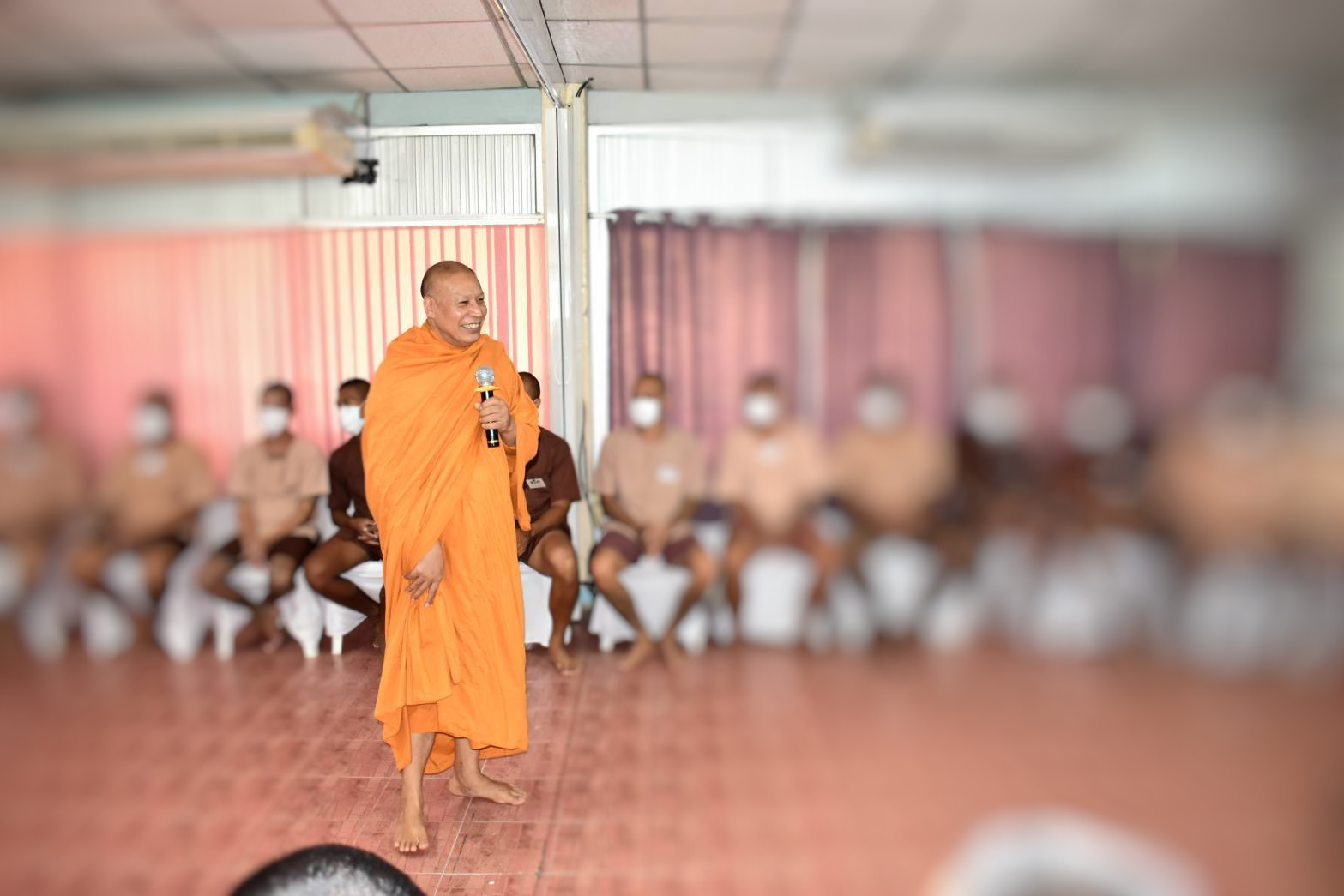 โดยใช้บทเพลงในการบำบัด ให้แง่คิดแก่ผู้ต้องขัง นำแสงแห่งธรรมส่องนำทางชีวิต เริ่มต้นชีวิตใหม่โดยใช้สติ ปัญญา และมีจิตสำนึกในการนำทาง ให้ใช้ชีวิตอย่างมีเป้าหมาย กำหนดคุณค่าในตนเอง พระวิทยากรยังบรรยายให้ผู้ต้องขังได้เข้าใจถึงความหมายของชีวิตของมนุษย์ ที่มีความแตกต่างกับสัตว์ทั้งทางด้านภาษา และการฝึกฝน ซึ่งมนุษย์จะไม่มีข้อจำกัดในการฝึกฝน ทุกสิ่งทุกอย่างเราสามารถสร้างมันขึ้นมาได้ด้วยตนเอง จากการควบคุมและรู้เท่าทันจิตใจของตนเองได้ “โยนิโสมนสิการ” การพิจารณาอย่างรอบคอบถี่ถ้วน ไม่ตกเป็นเหยื่อของกิเลส ให้ได้มาซึ่งเงิน ทรัพย์สิน ยศ ตำแหน่ง และพระวิทยากรยังได้ยกตัวอย่าง โดยนำน้ำใส่กระบอกใส แล้วเติมผงแป้งลงไป พบว่าจากน้ำที่ใสกลายเป็นน้ำสีขุ่นขึ้น เปรียบเสมือนใจของคนที่ขุ่นหมอง มีกิเลส ความอยากได้ อยากมี ความโลภ ความโกรธ ความหลง มองไม่เห็น ถึงสิ่งที่ถูกต้อง ดังนั้นเราควรฝึกใจให้นิ่ง ใช้ปัญญาก่อนที่จะทำสิ่งใดเพื่อฆ่ากิเลส ซึ่งเป็นกระบวนการที่จะทำให้ปัญหาต่างๆ ที่เราเจอนั้น คลี่คลายลง เบาบางลง และสำเร็จได้ ทั้งนี้ ผู้เข้าร่วมอบรมได้มีส่วนร่วมในการแสดงความคิดเห็น และให้ความร่วมมือในการอบรมครั้งนี้ได้เป็นอย่างดี