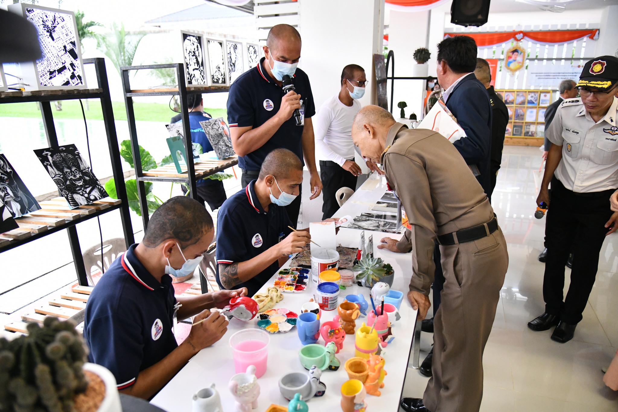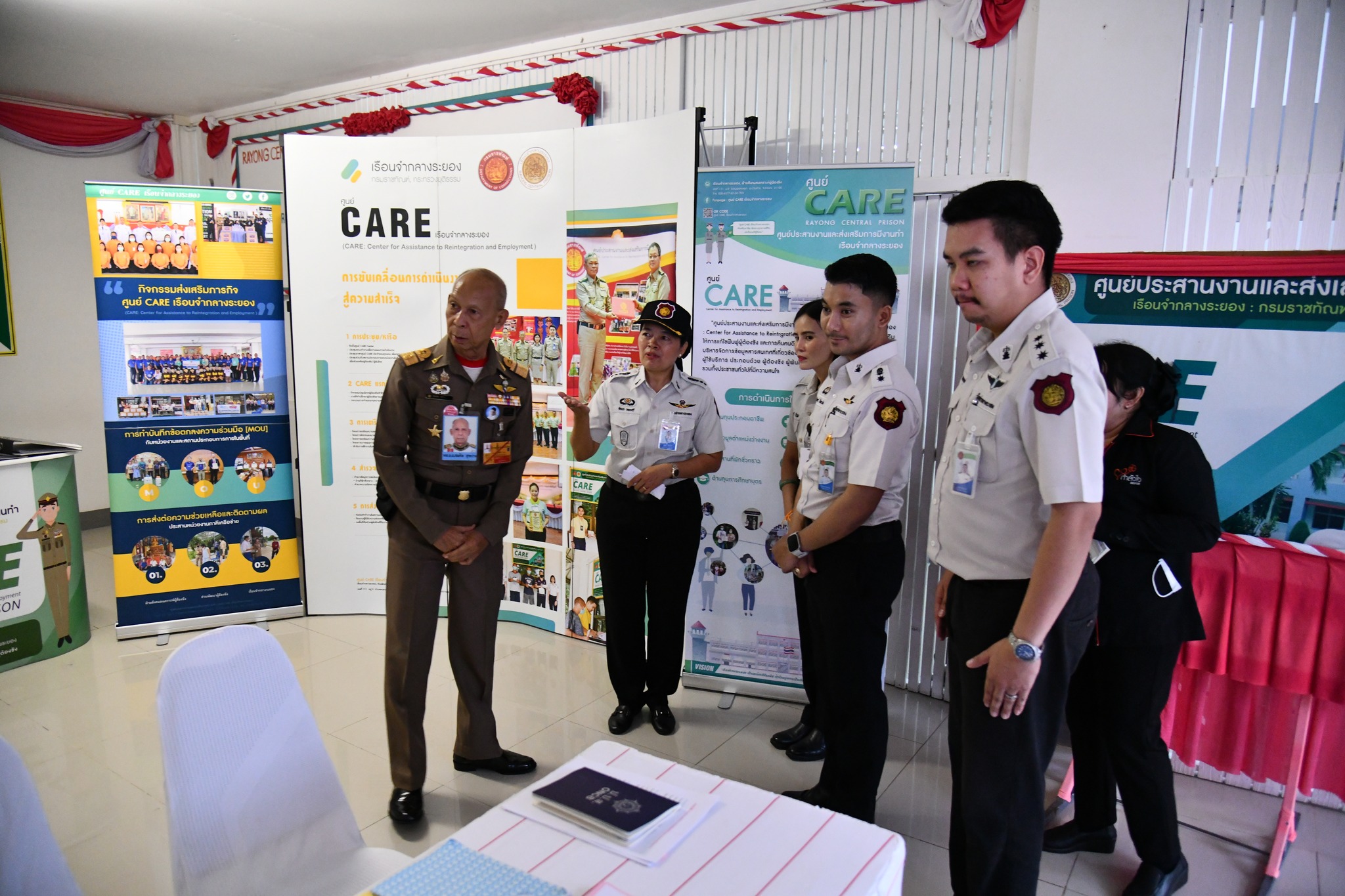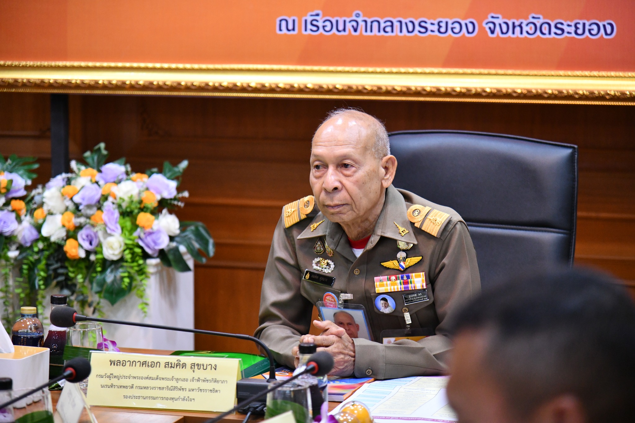 รองประธานกองทุนกำลังใจฯ ติดตามงาน ณ เรือนจำกลางระยอง เมื่อวันที่ 16 ตุลาคม 2567 เวลา 10.00 น. พลอากาศเอก สมคิด สุขบาง กรมวังผู้ใหญ่ประจำพระองค์สมเด็จพระเจ้าลูกเธอ เจ้าฟ้าพัชรกิติยาภา นเรนทิราเทพยวดี กรมหลวงราชสาริณีสิริพัชร มหาวัชรราชธิดา และรองประธานคณะกรรมการกองทุนกำลังใจฯ เป็นประธานการประชุมติดตามการดำเนินงานโครงการกำลังใจฯ โดยมีนายกำธร เวหน รองผู้ว่าราชการจังหวัดระยอง นายชาญ วชิรเดช รองอธิบดีกรมราชทัณฑ์ นายไพรัตน์ ขมินทกูล ผู้ตรวจราชการกรม รักษาราชการแทน ผู้บัญชาการเรือนจำกลางระยอง หัวหน้าส่วนราชการในสังกัดกระทรวงแรงงาน กระทรวงยุติธรรมในพื้นที่ พมจ. สถานประกอบการ จำนวน 2 แห่ง และคนต้นแบบ จำนวน 2 ราย เข้าร่วมการประชุม ณ เรือนกลางระยอง การประชุมร่วมกันระหว่างหน่วยงานต่างๆ ในกระทรวงยุติธรรม กระทรวงแรงงาน และหน่วยงานอื่นๆ เพื่อติดตามประเด็นที่เคยให้ข้อเสนอแนะแก่เรือนจำ และมอบข้อเสนอแนะให้ขับเคลื่อนเพิ่มเติมแก่เรือนจำ จากนั้น นายไพรัตน์ ขมินทกูล ผู้ตรวจราชการกรม รักษาราชการแทน ผู้บัญชาการเรือนจำกลางระยอง สรุปผลการดำเนินงานโครงการกำลังใจฯ เช่น ในปี 2566-2567 ผู้ต้องขังได้รับการอบรมในวิชาต่างๆ จากโครงการกำลังใจฯ อาทิเช่น การอบรมหลักสูตรภาษาญี่ปุ่น, ภาษาอังกฤษ, ภาษาจีน, การให้ความรู้และให้คำปรึกษาด้านกฎหมาย, ยกระดับทักษาะดิจิทัลเพื่ออาชีพวิถีใหม่, โคคงการอบรมเรียงถ้อยเป็นร้อยกรอง, อบรมหลักสูตรโหราศาสตร์ (ตัวเลข), โครงการอบรมทักษะสีเขียว, หลักสูตรการดูแลผู้สูงอายุ 18 ชั่วโมง เป็นต้น การส่งเสริมการมีงานทำ ได้ดำเนินกิจกรรม ดังต่อไปนี้ จัดทำมุมราชทัณฑ์ ปันโอกาส สร้างอาชีพ การลงนาม (MOA) ระหว่างสำนักงานอาชีวศึกษาจังหวัดระยอง และสำนักงานส่งเสริมการเรียนรู้จังหวัดระยอง ร่วมกับเรือนจำกลางระยอง เพื่อเป็นการส่งเสริมกิจกรรมภายได้โครงการกำลังใจในพระดำริพระเจ้าหลานเธอ พระองค์เจ้าพัชรกิติยาภา เปิดโอกาสทางการศึกษาด้านทักษะอาชีพ และด้านทักษะชีวิตให้แก่ผู้ต้องขัง ส่งเสริมความรู้ความสามารถด้านวิชาชีพ เพื่อนำไปใช้ในการประกอบอาชีพและพัฒนาตนเองในอนาคต จัดการศึกษาสายอาชีพให้กับผู้ต้องขังในหลักสูตรวิชาชีพระยะสั้น พร้อมรับประกาศนียบัตรเฉพาะเมื่อสำเร็จการศึกษา และเพื่อให้ความช่วยเหลือและเป็นกำลังใจให้กับผู้ต้องขังที่ใกล้พ้นโทษ ให้สามารถประกอบอาชีพและตำรงชีวิตเป็นคนดีของสังคมได้อย่างปกติสุข มีผลิตภัณฑ์ผ่านมาตรฐานโอท็อป 3 ชนิด ถัดมา พลอากาศเอก สมคิดฯ นำผู้เข้าร่วมประชุมเข้าแดนหญิง ชมการแสดงขอ