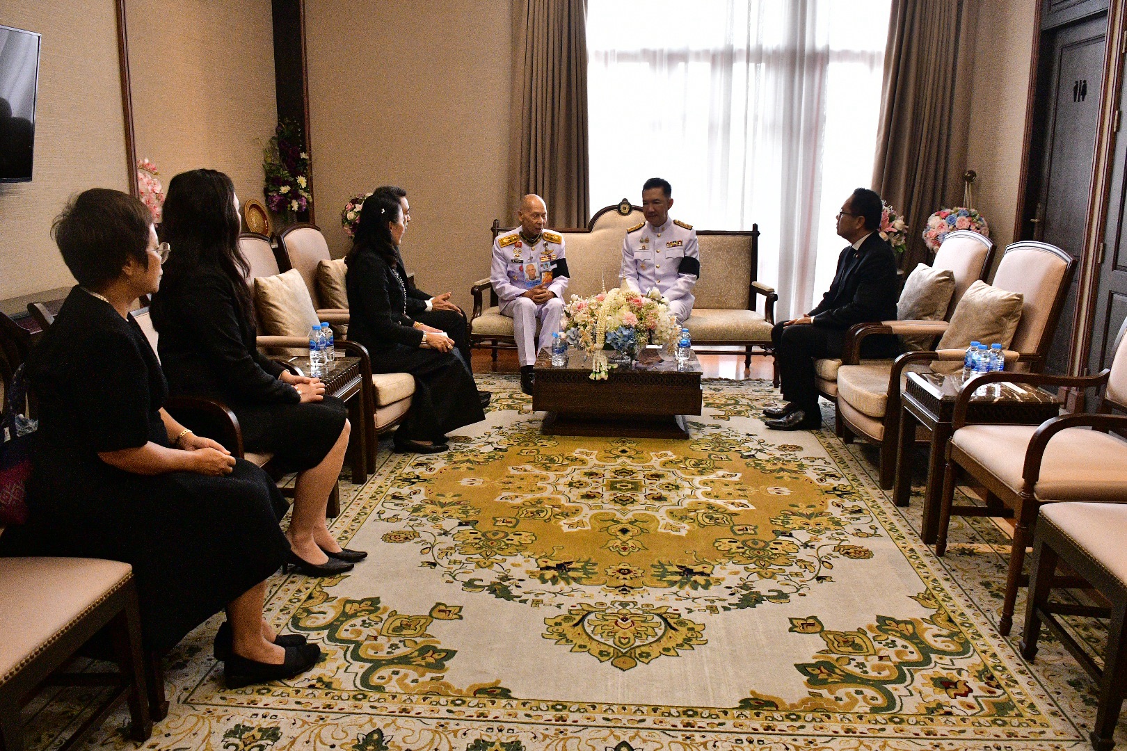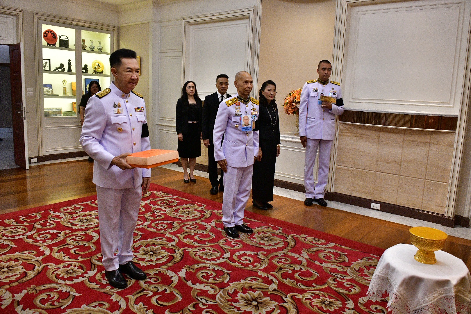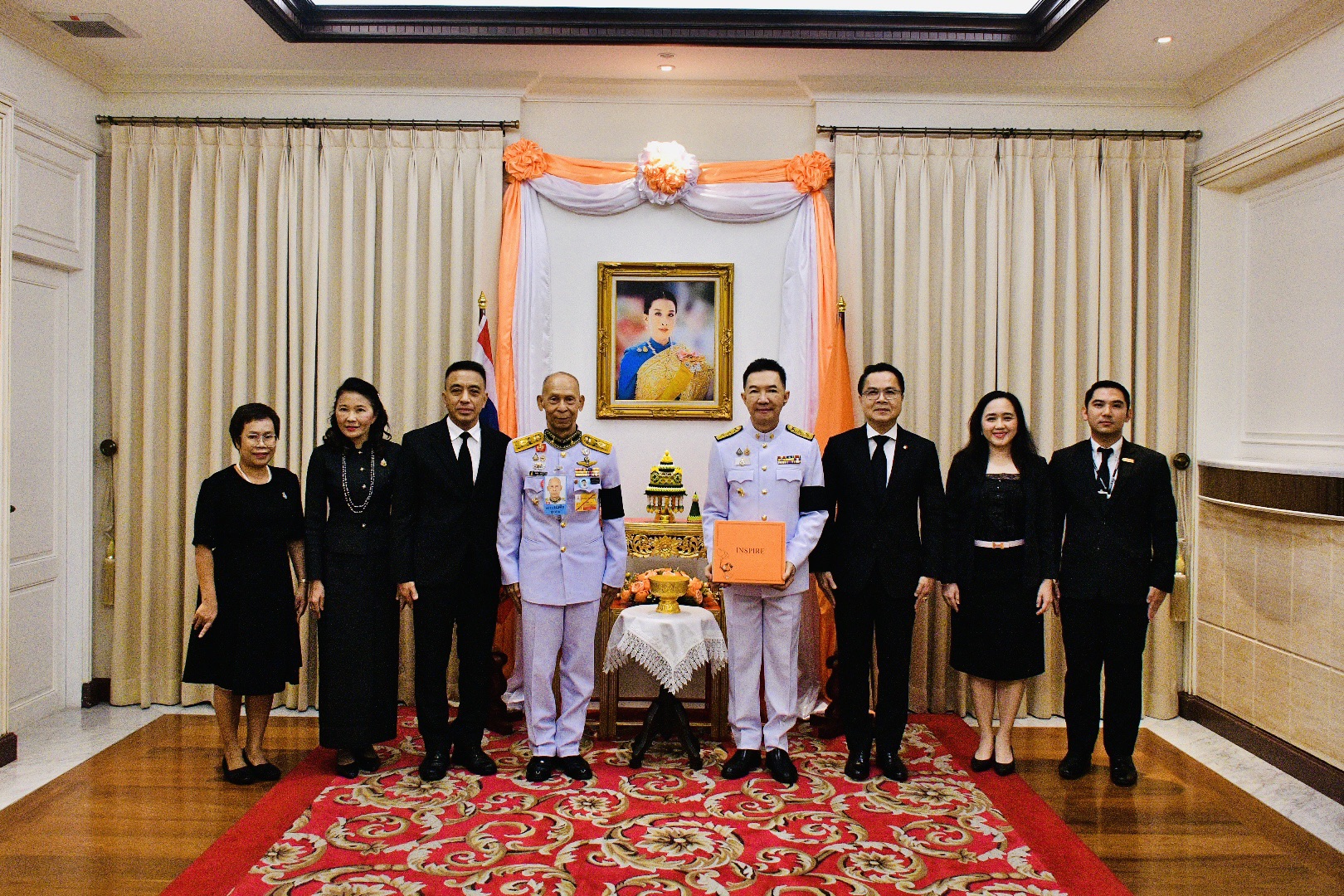 กรมวังผู้ใหญ่ประจำพระองค์ สมเด็จพระเจ้าลูกเธอ เจ้าฟ้าพัชรกิติยาภา ฯ และรองประธานคณะกรรมการกองทุนกำลังใจมอบของที่ระลึกโครงการกำลังใจให้กับประธานศาลฎีกา