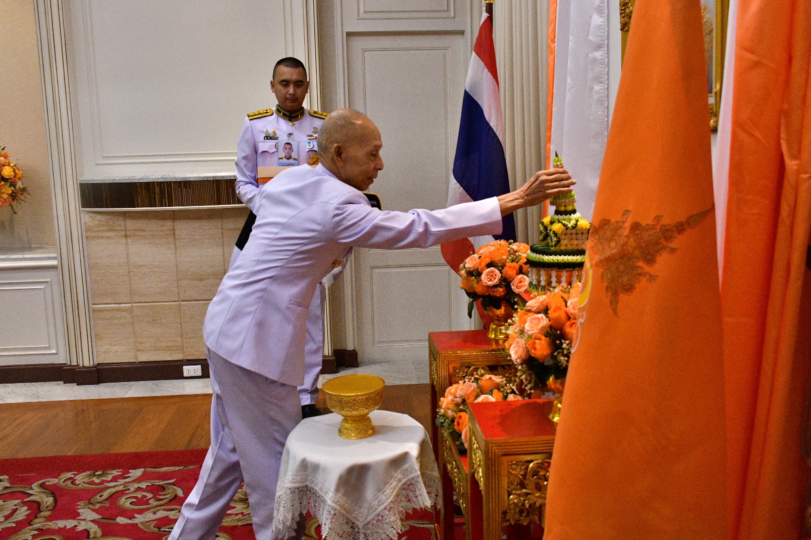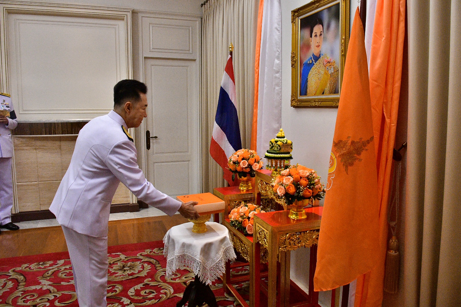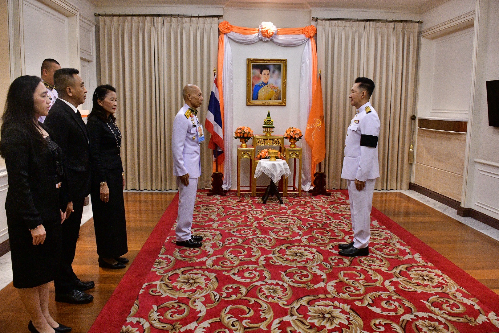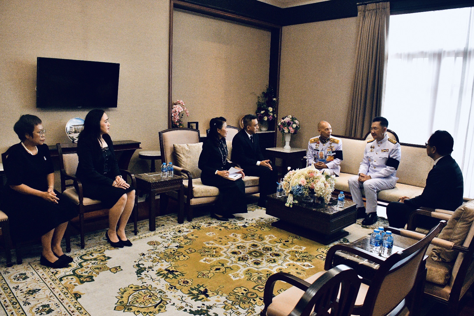 กรมวังผู้ใหญ่ประจำพระองค์ สมเด็จพระเจ้าลูกเธอ เจ้าฟ้าพัชรกิติยาภา ฯ และรองประธานคณะกรรมการกองทุนกำลังใจมอบของที่ระลึกโครงการกำลังใจให้กับประธานศาลฎีกา
