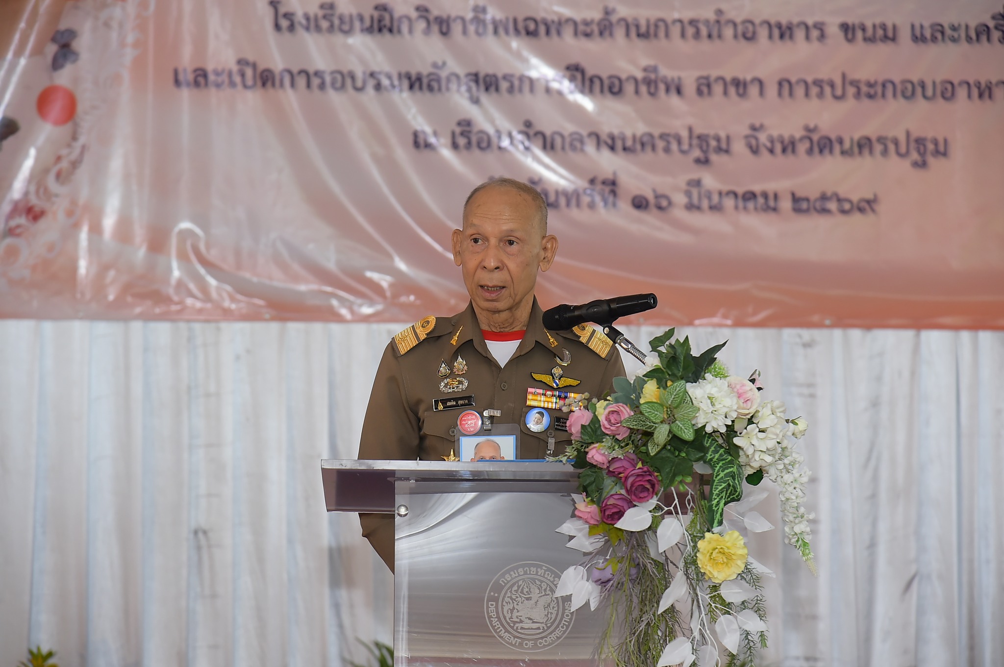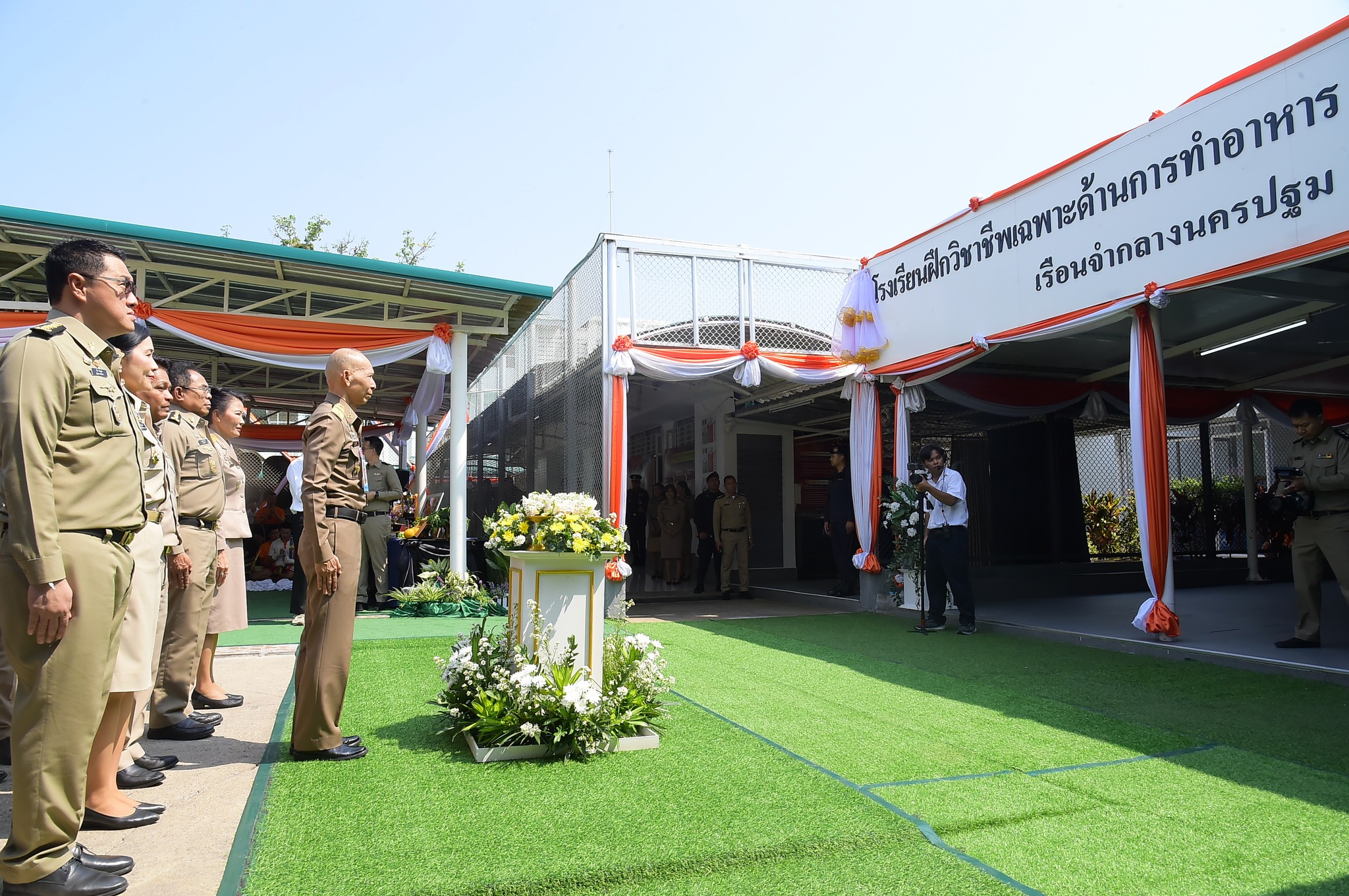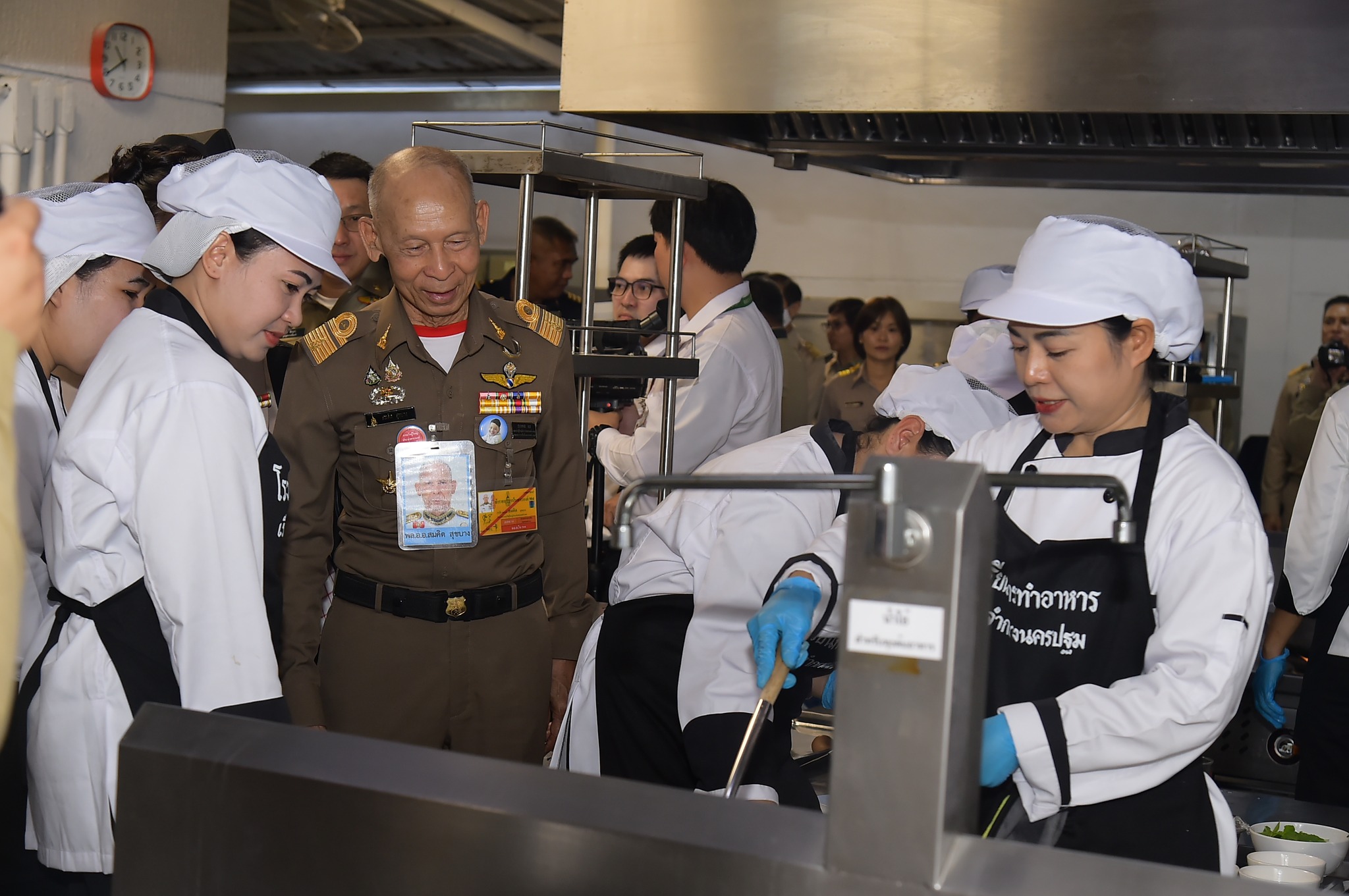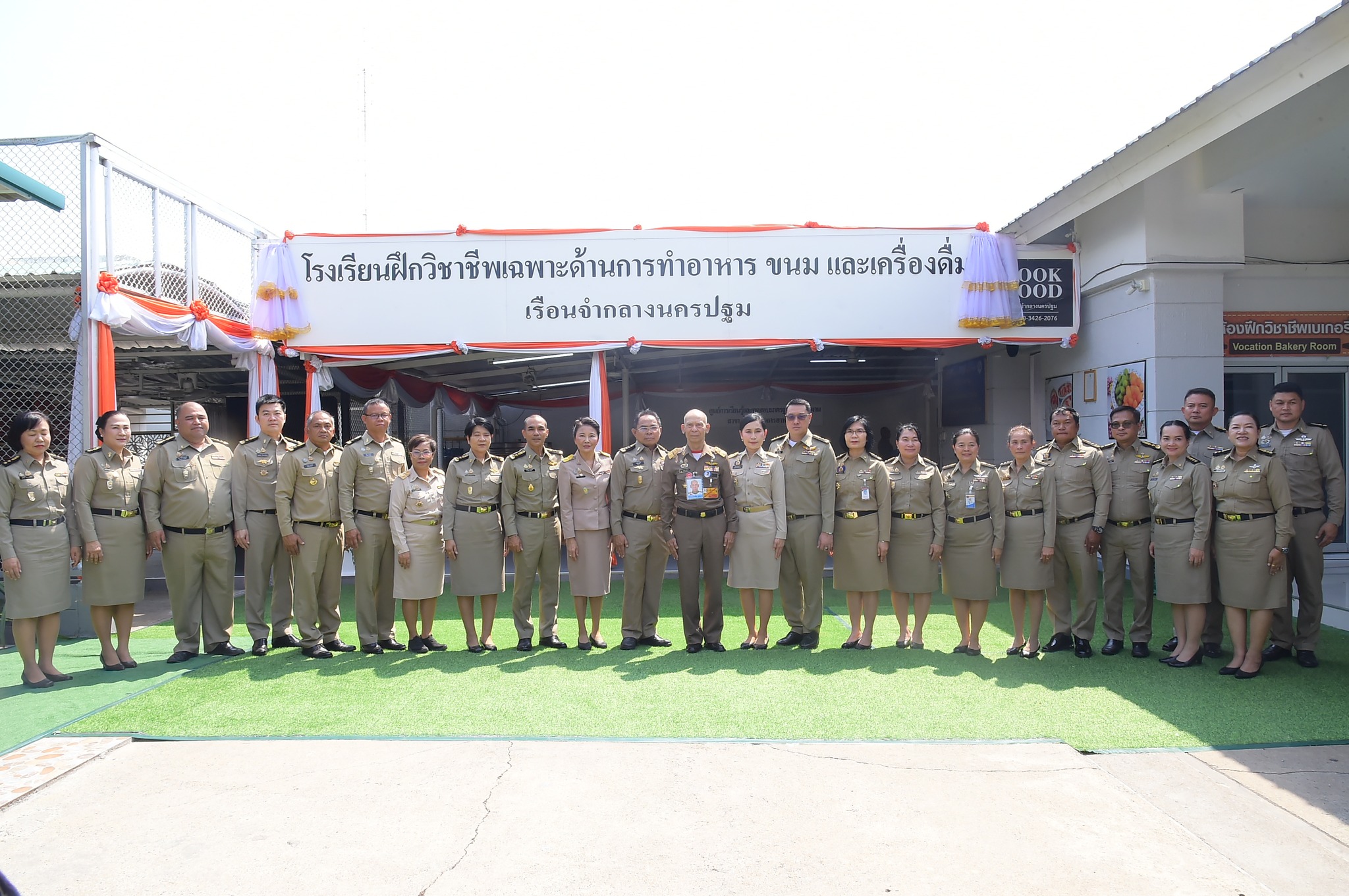 ในวันนี้ พลอากาศเอก สมคิด สุขบาง ได้เป็นประธานในพิธีเปิดป้ายโรงเรียนฝึกวิชาชีพ เฉพาะด้านการทำอาหาร ขนม และเครื่องดื่ม เรือนจำกลางนครปฐม และเปิดการอบรมหลักสูตรการฝึกอาชีพ สาขา การประกอบอาหารไทย รุ่นที่ 1 ซึ่งมีวัตถุประสงค์เพื่อเป็นสถานที่สำหรับการฝึกทักษะการประกอบอาหารตามมาตรฐานสากลให้แก่ผู้ต้องขัง เพื่อเตรียมความพร้อมสู่การมีอาชีพที่มั่นคงหลังพ้นโทษ เป็นการเพิ่มพูนความรู้และเทคนิคด้านการประกอบอาหารอย่างถูกต้องและปลอดภัย รวมถึงเป็นการขยายโอกาสในการสร้างรายได้และประกอบอาชีพภายหลังพ้นโทษ จากนั้น เยี่ยมชมนิทรรศการที่เรือนจำกลางนครปฐมได้รับรางวัลด้านอาหารต่าง ๆ อาทิเช่น รางวัลออสการ์อาหารโลก Gourmand Awards 2025 และรางวัลชนะเลิศการประกวดกิจกรรมการประกวดอาหาร ของหวาน และเครื่องดื่มในเรือนจำ/ทัณฑสถาน ภายใต้และเครือข่ายของโครงการกำลังใจฯ ประจำปี 2568 พร้อมเยี่ยมชมการอบรมหลักสูตรการฝึกอาชีพ สาขาการประกอบอาหารไทย รุ่นที่ 1 โดย วิทยากรจากสถาบันพัฒนาฝีมือแรงงาน 16 นครปฐม