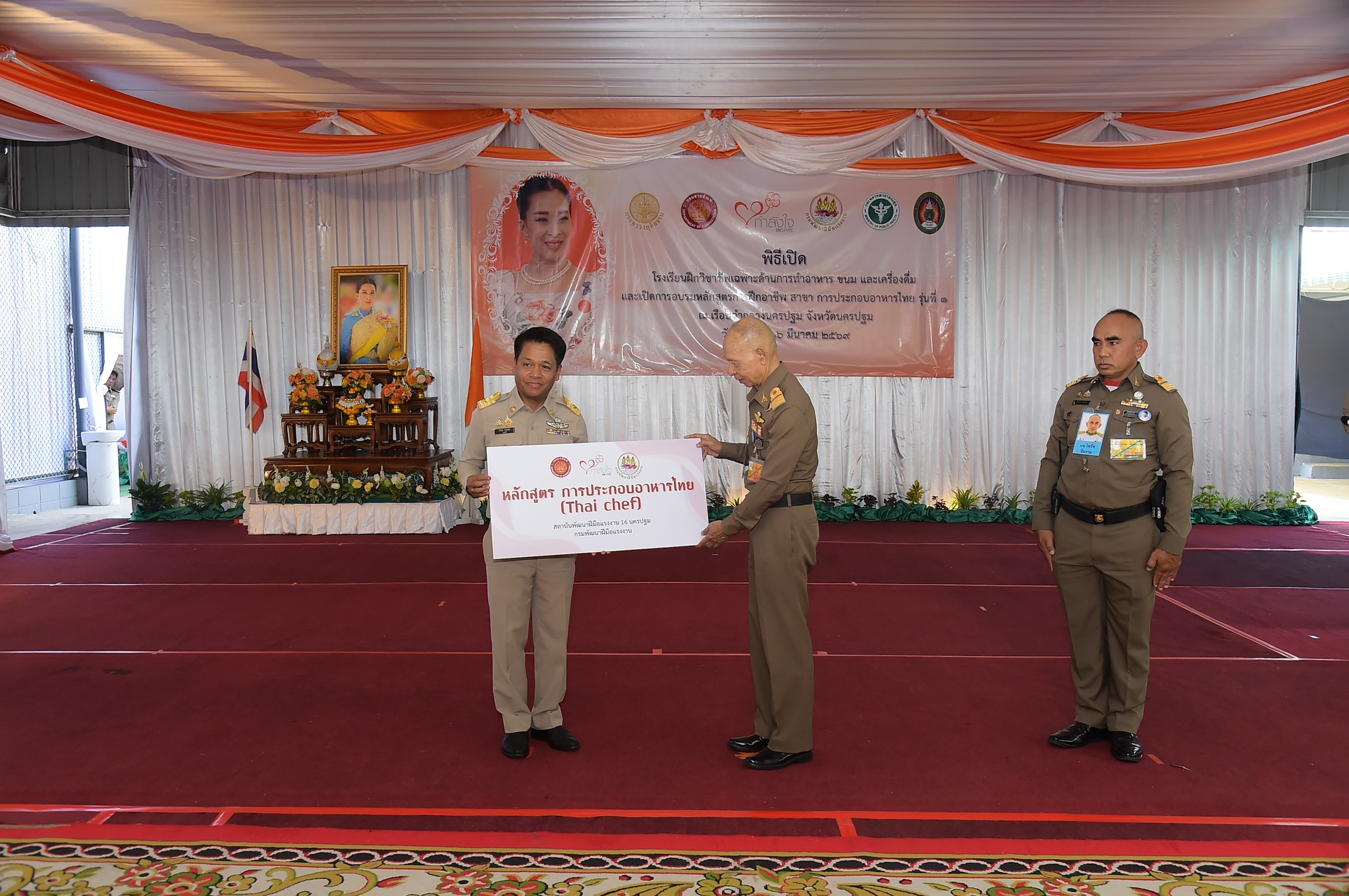 พลอากาศเอก สมคิด สุขบาง กรมวังผู้ใหญ่ประจำพระองค์ สมเด็จพระเจ้าลูกเธอ เจ้าฟ้าพัชรกิติยาภา นเรนทิราเทพยวดี กรมหลวงราชสาริณีสิริพัชร มหาวัชรราชธิดา รองประธานคณะกรรมการกองทุนกำลังใจในพระดำริพระเจ้าหลานเธอ พระองค์เจ้าพัชรกิติยาภา เป็นประธานในพิธีเปิดโรงเรียนฝึกวิชาชีพ เฉพาะด้านการทำอาหาร ขนม และเครื่องดื่ม และเปิดการอบรมหลักสูตรการฝึกอาชีพ สาขา การประกอบอาหารไทย รุ่นที่ 1 ณ เรือนจำกลางนครปฐม จังหวัดนครปฐม วันจันทร์ที่ 16 มีนาคม 2569