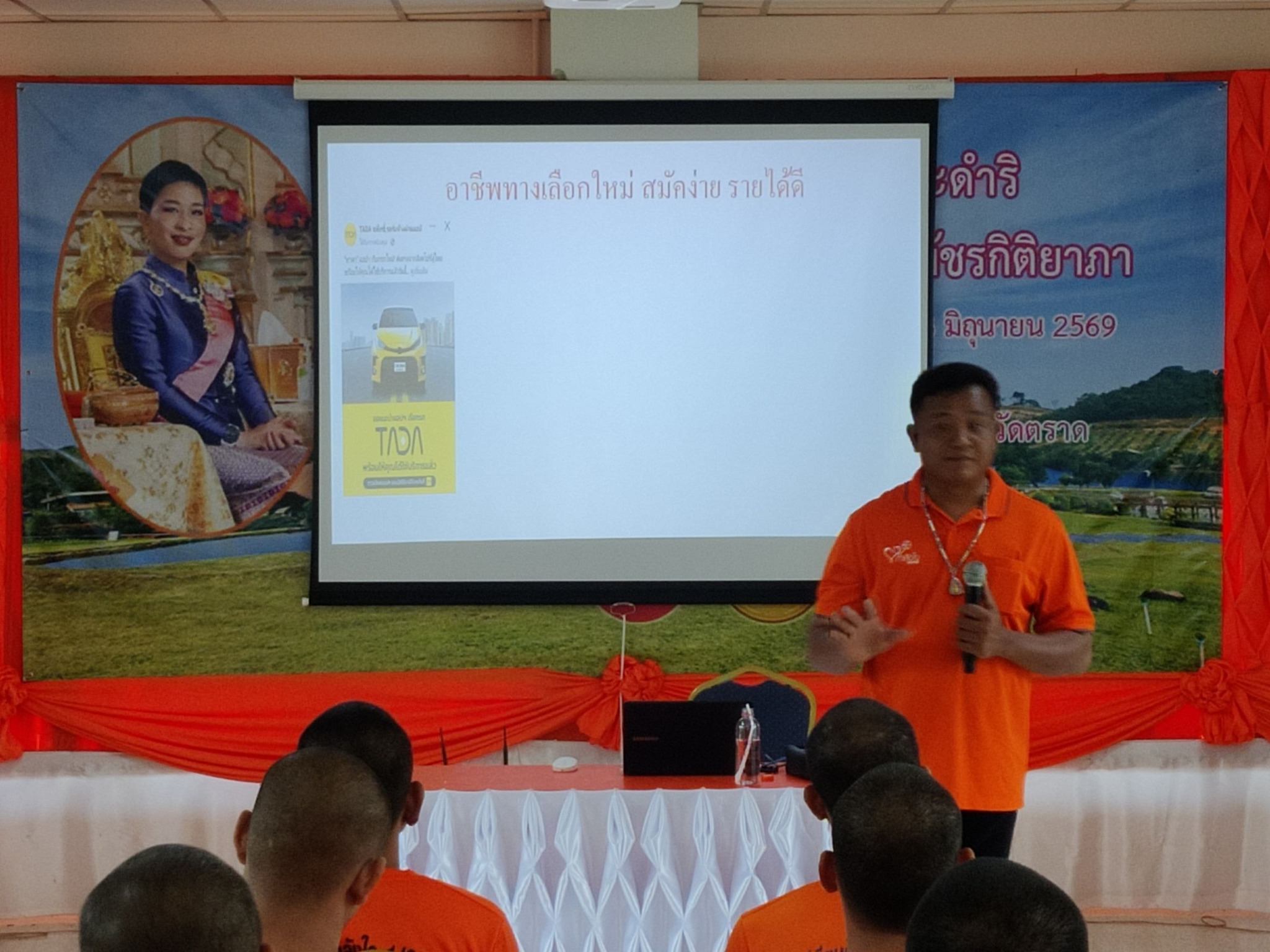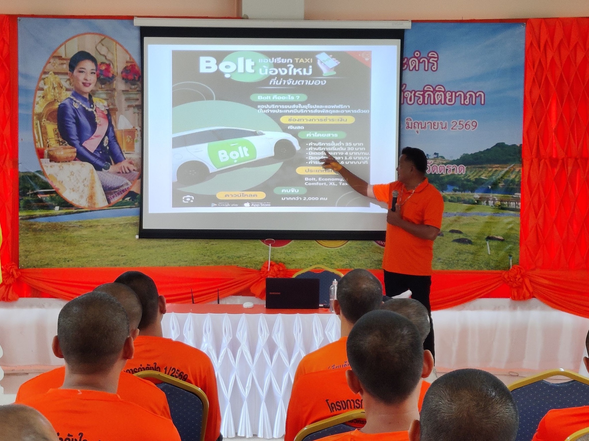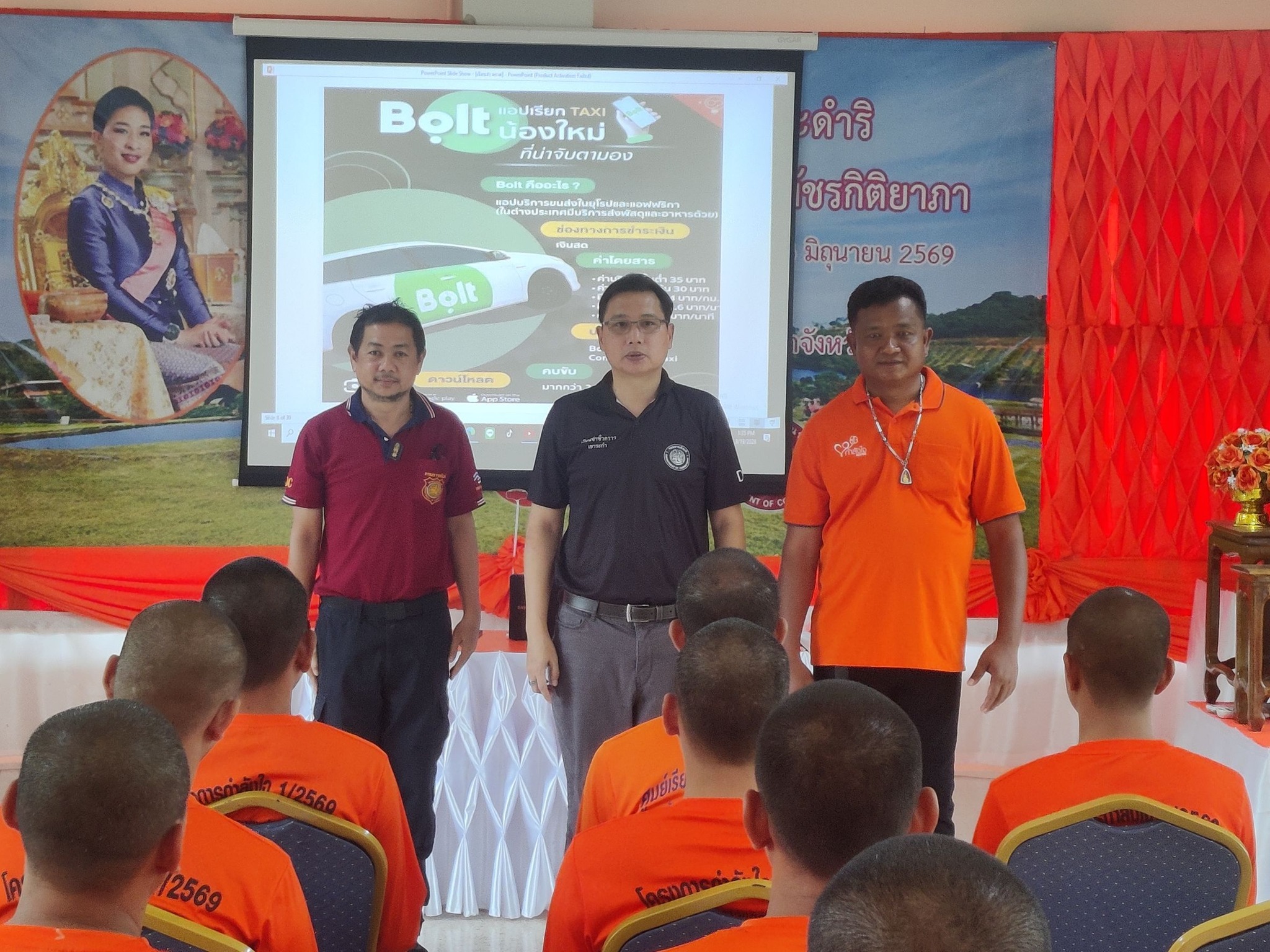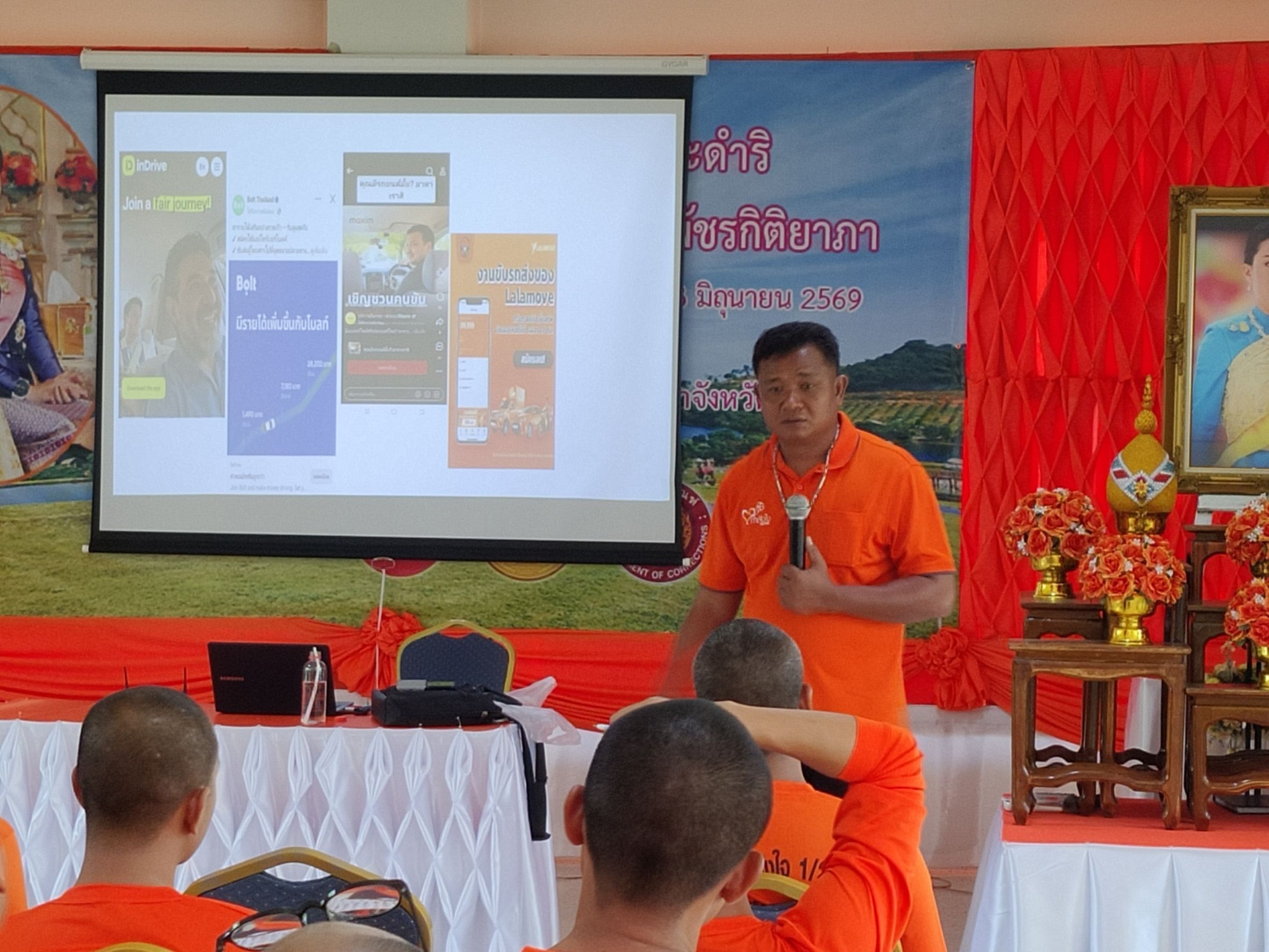 วิทยากรได้ให้กำลังใจกับผู้เข้ารับการอบรม และเล่าประสบการณ์เมื่อพ้นโทษ ถึงแนวคิดการดำเนินชีวิต ความตั้งใจประกอบอาชีพสุจริต ความอดทนตั้งมั่น การฝ่าฟันอุปสรรคต่าง ๆ จนได้เป็นคนต้นแบบในโครงการกำลังใจฯ ในวันนี้ จากนั้นวิทยากรได้ให้ความรู้เกี่ยวกับแนวทางการประกอบอาชีพ ไรเดอร์ โดยการแนะนำแพลตฟอร์มแอปพลิเคชั่นต่าง ๆ ในการประกอบอาชีพไรเดอร์ เช่น Grab Car, LINEMAN Taxi, MAXIM, BOLT เป็นต้น โดยอธิบายถึงข้อดี และข้อเสียของแต่ละแพลตฟอร์ม ค่าใช้จ่ายในการสมัคร ซึ่งแต่ละระบบมีค่าใช้จ่ายที่ต่างกันรวมถึงรายได้ที่ต่างกัน โดยแอปพลิเคชั่นที่น่าจับตามองและเป็นที่นิยมในขณะนี้คือ แอปพลิเคชั่นโบลท์ (BOLT) การเตรียมข้อมูลและเอกสารการสมัคร การกรอกข้อมูล คุณสมบัติ และข้อกำหนดการใช้งานประเภทรถที่จะนำมาใช้ในการขับรถไรเดอร์ รวมไปถึงมารยาทในการให้บริการ ซึ่งการให้บริการไม่ได้จำกัดแค่การให้บริการบุคคล แต่ยังรวมถึงการจัดส่งสินค้าและเอกสาร ทั้งนี้ วิทยากรยังแนะนำวิธีการคำนวณต้นทุน รายรับ - รายจ่าย รวมถึงแนะนำอุปกรณ์ที่ใช้ในการประกอบอาชีพขับรถไรเดอร์ ข้อดีและข้อเสียในการวิ่งงาน รายได้อื่น ๆ ที่ได้นอกเหนือจากค่าบริการ เช่น เงินทิปพิเศษ ที่ได้รับนอกเหนือจากค่าโดยสาร ค่าผู้โดยสารที่เกินกว่ากำหนด เป็นต้น และวิทยากรยังแนะนำเทคนิคสิ่งที่ควรศึกษาเพิ่มเติม อาทิ การใช้งานแผนที่ Google Map จุดที่น่าสนใจ (Landmark) ภาษาที่ต้องใช้ในการสื่อสาร (ภาษาอังกฤษ) ซึ่งเป็นประโยชน์ต่อการประกอบอาชีพในอนาคต ผู้เข้ารับการอบรมให้ความสนใจการประกอบอาชีพไรเดอร์เป็นอย่างมากเมื่อพ้นโทษ และวิทยากรได้แจ้งกับผู้เข้ารับการอบรมว่าหากพ้นโทษแล้วอยากประกอบอาชีพไรเดอร์สามารถติดต่อ หรือปรึกษา ขอคำแนะนำ จากวิทยากรได้